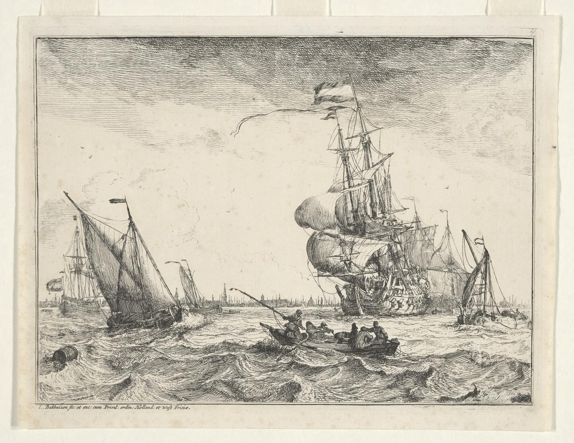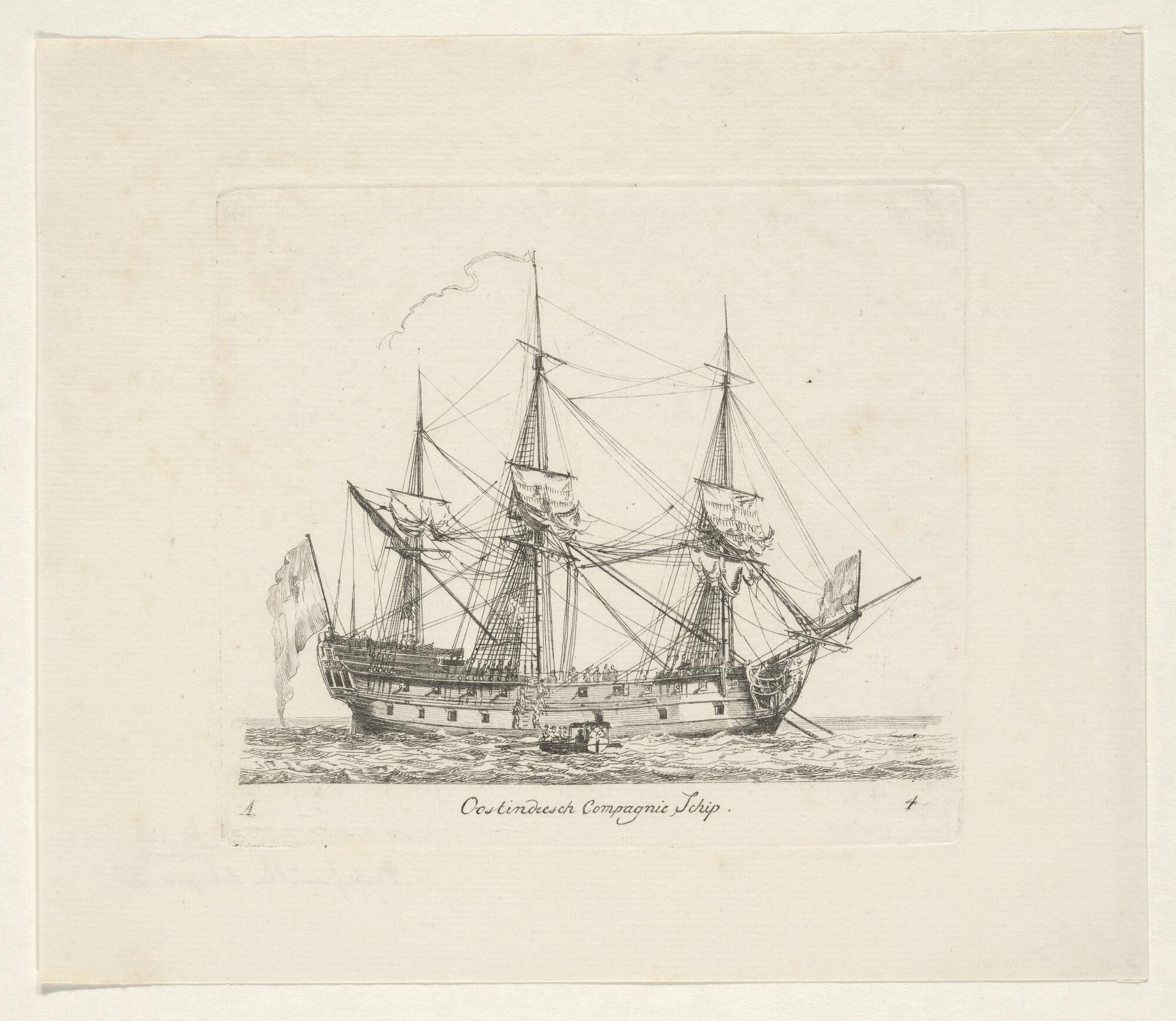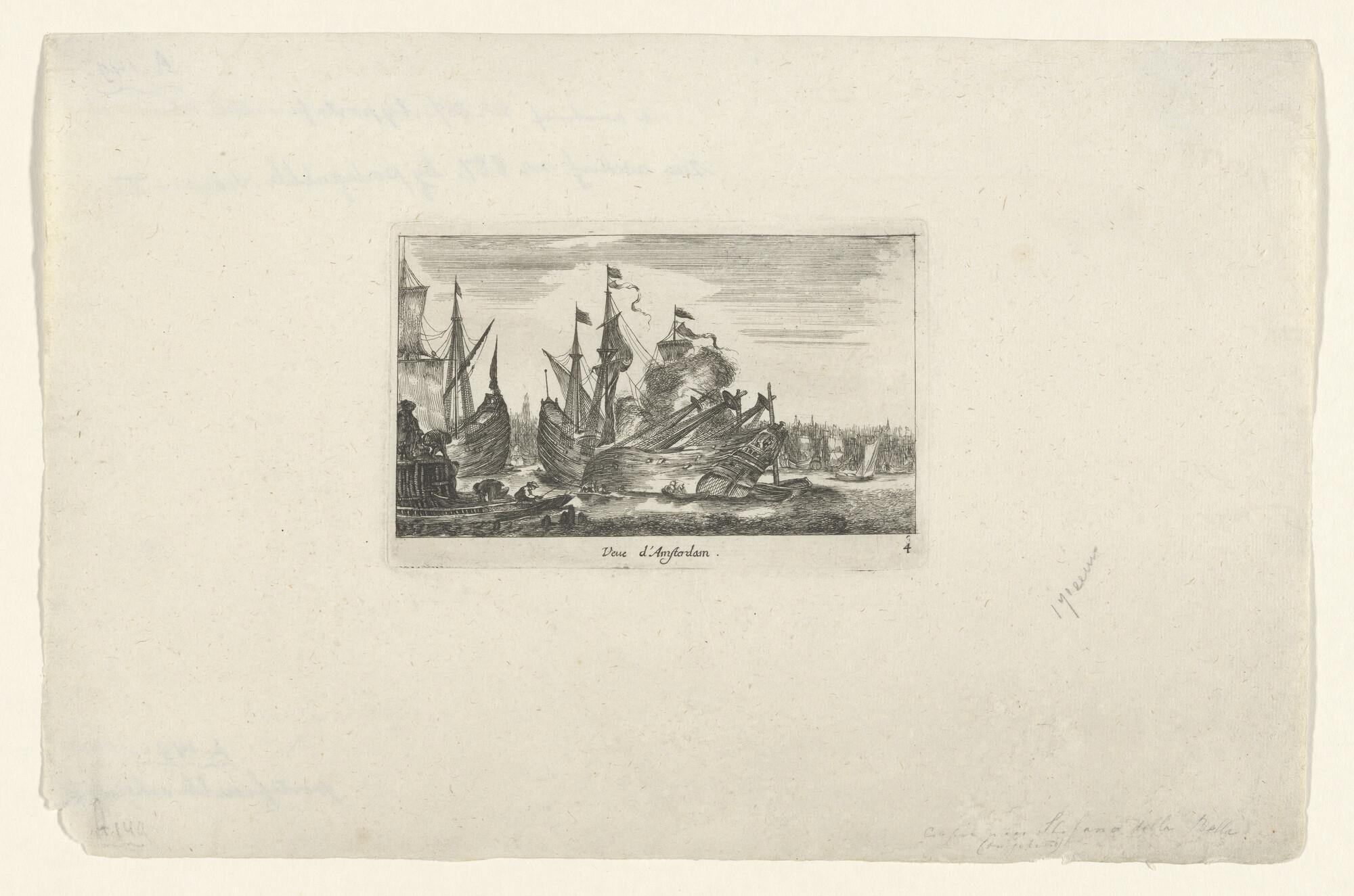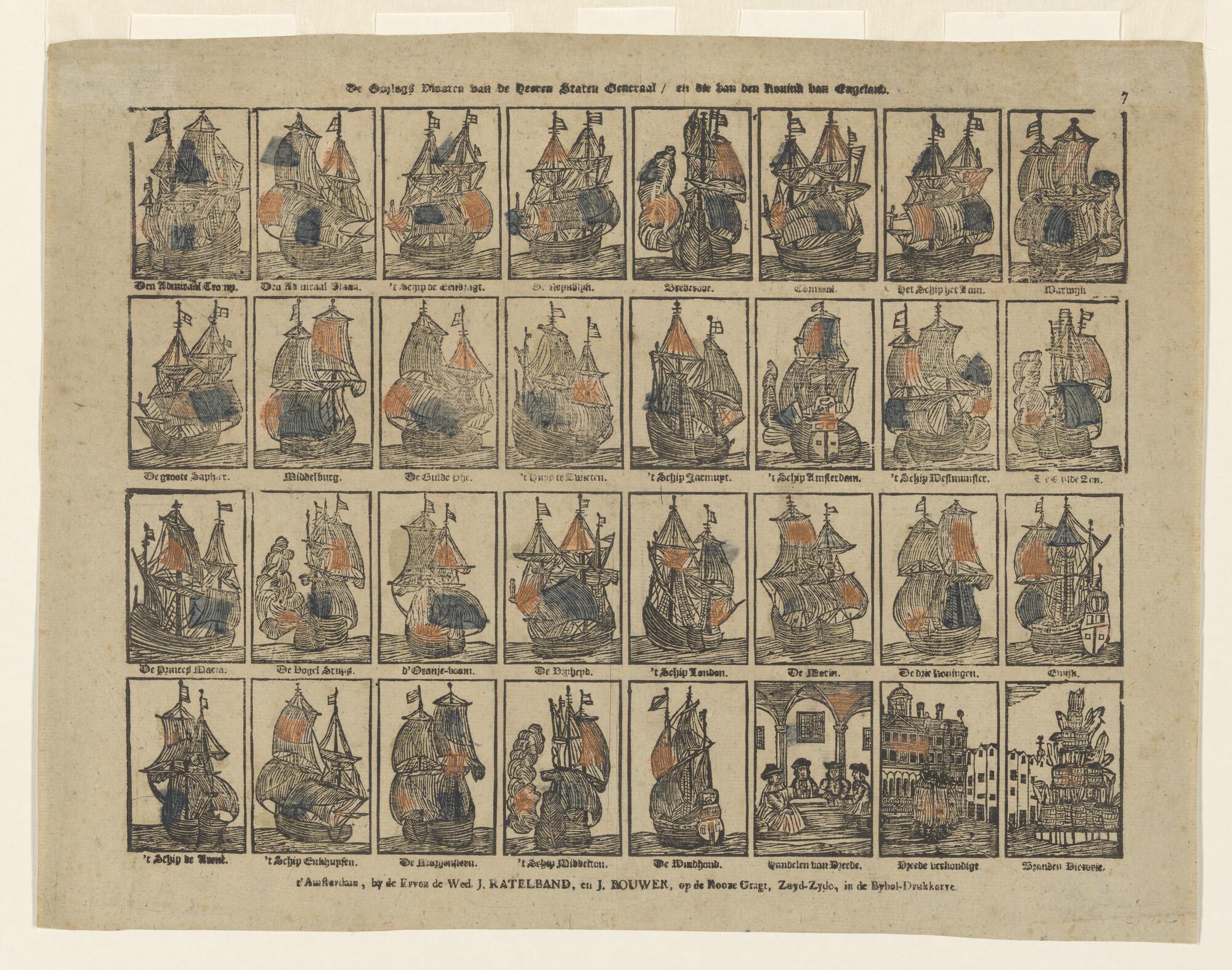 Prent oorlogsschip onder Amsterdamse vlag