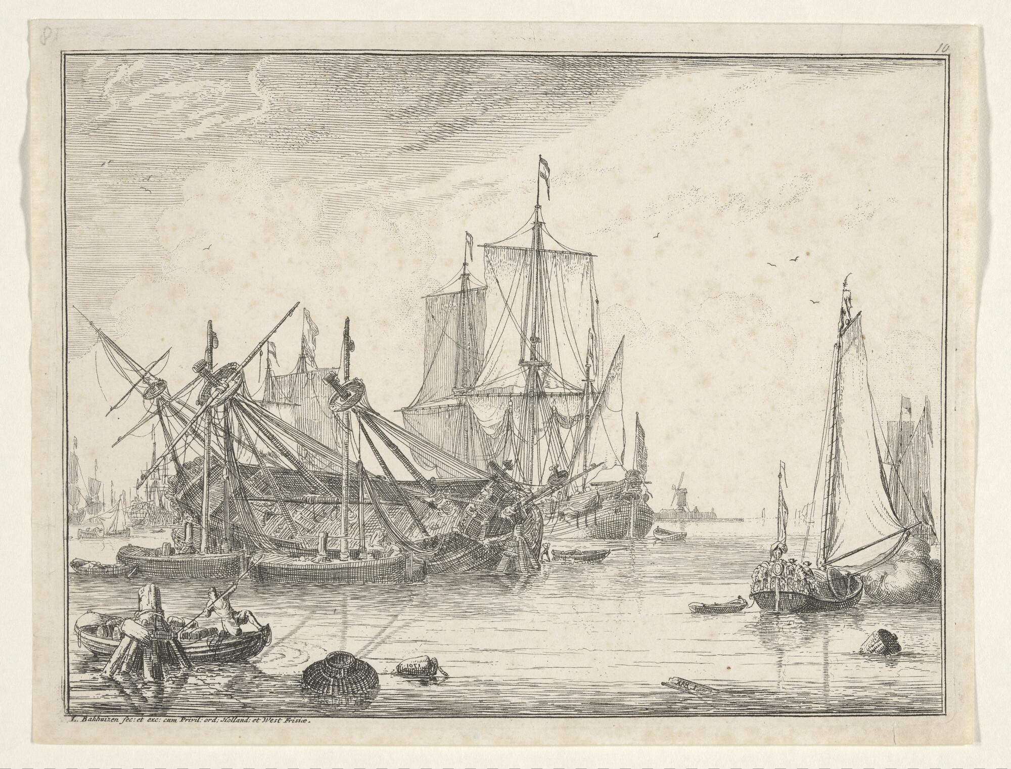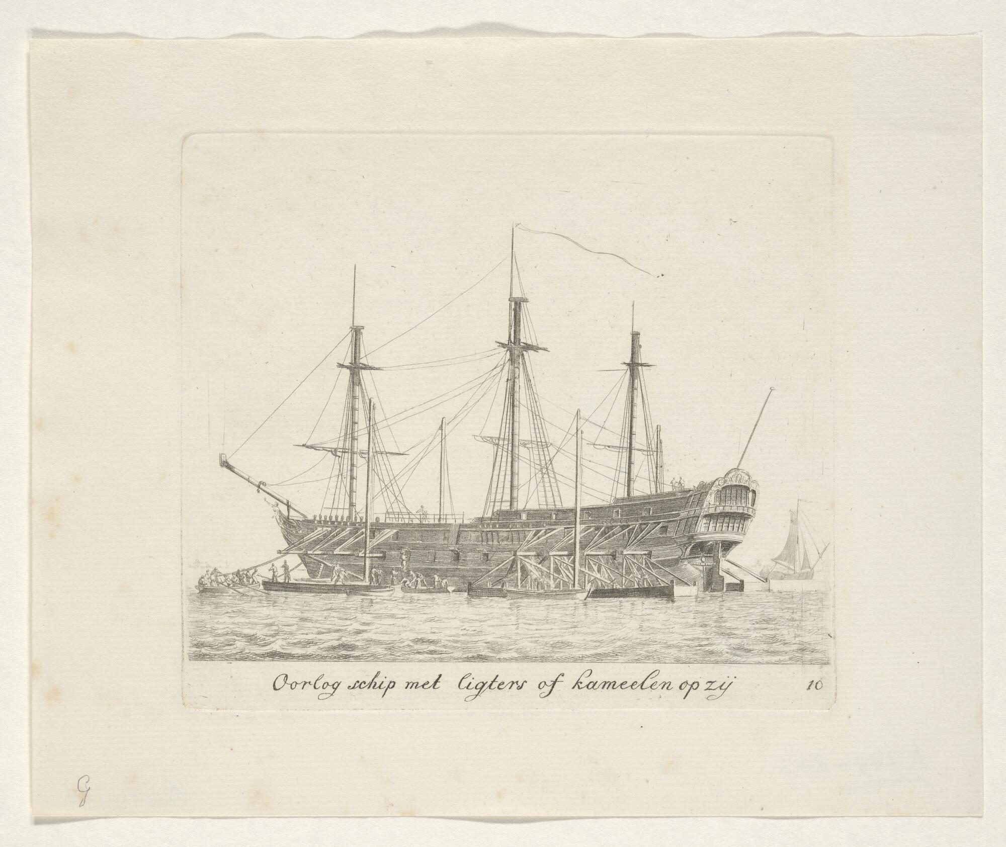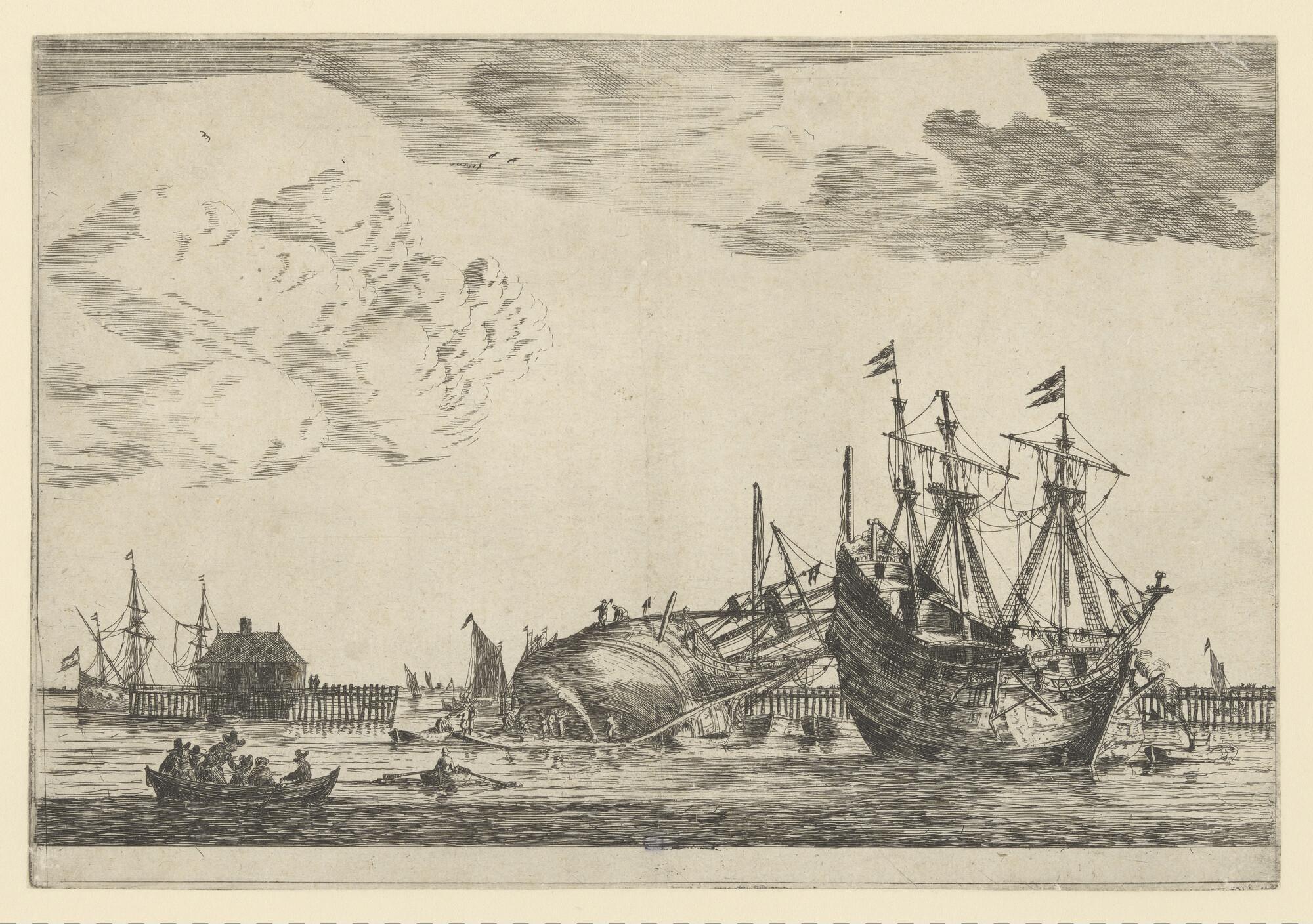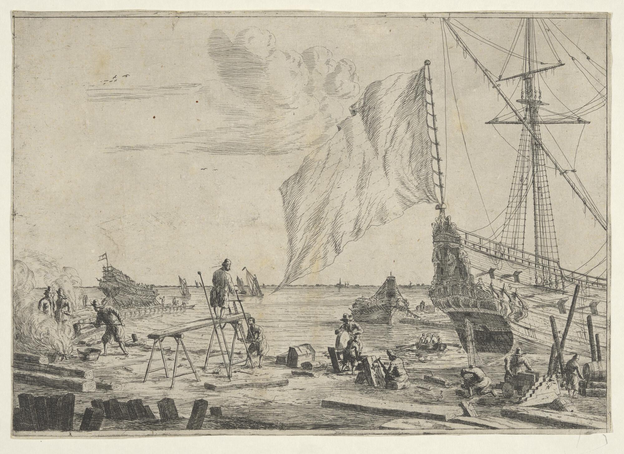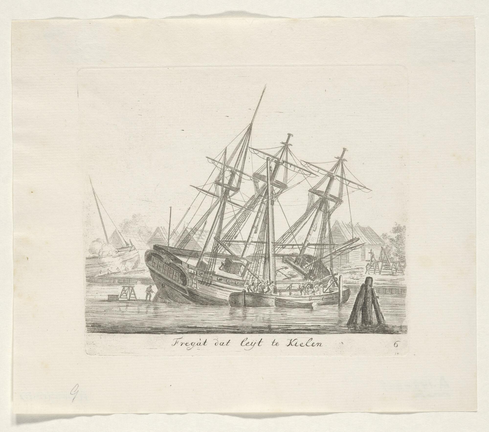 Prent van een scheepswerf