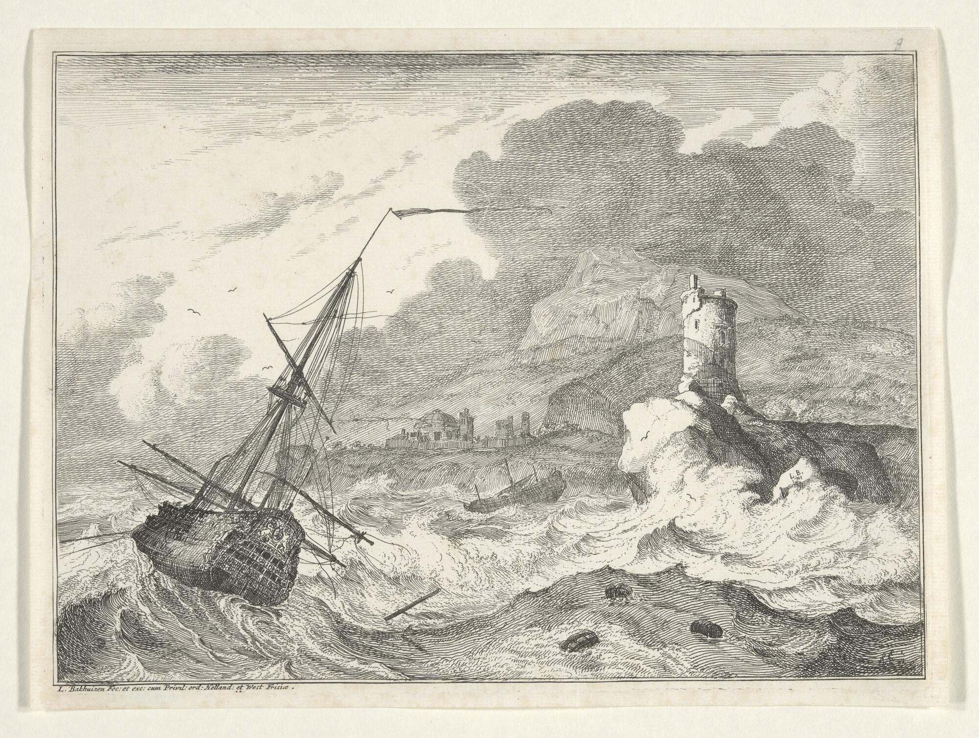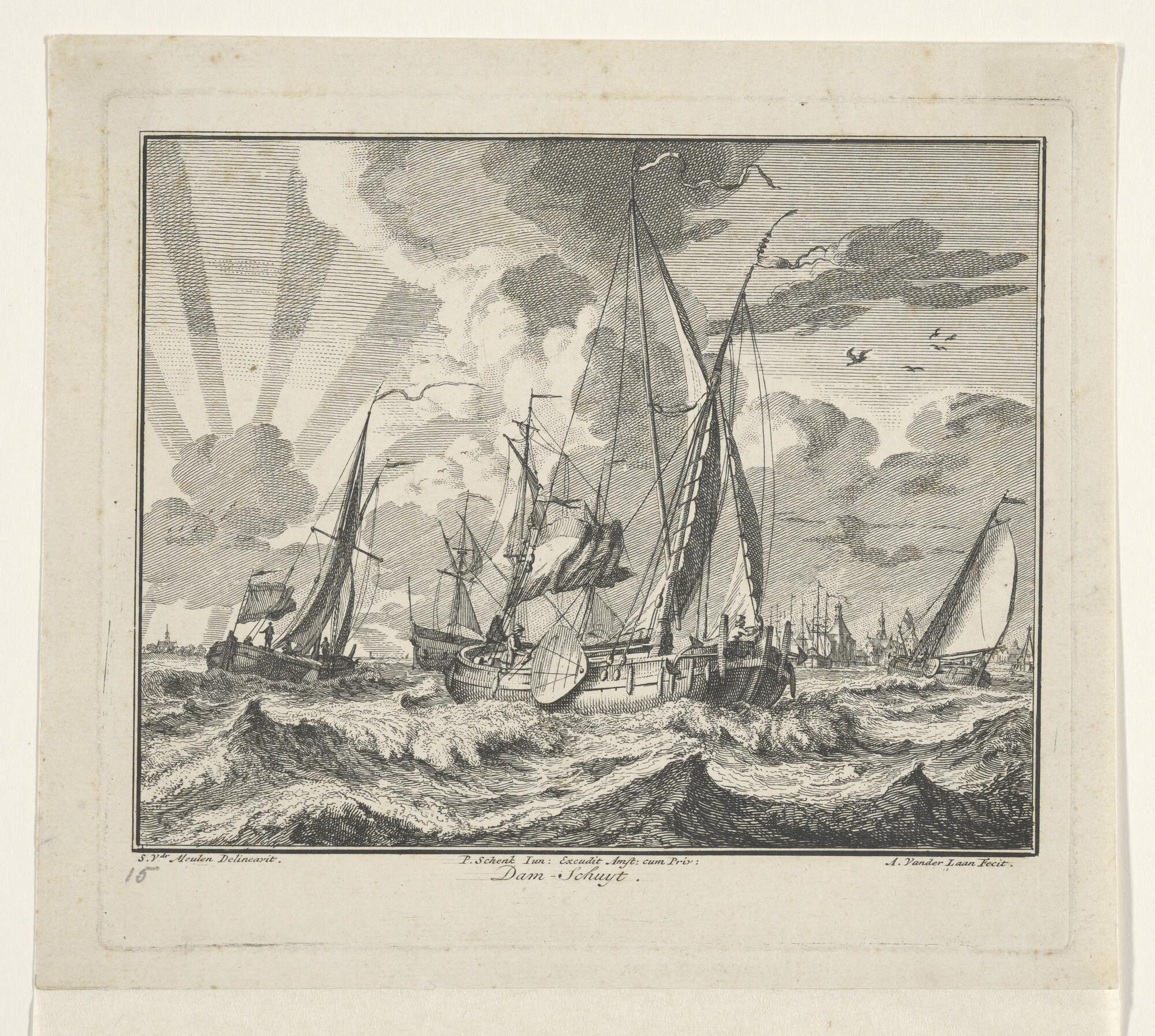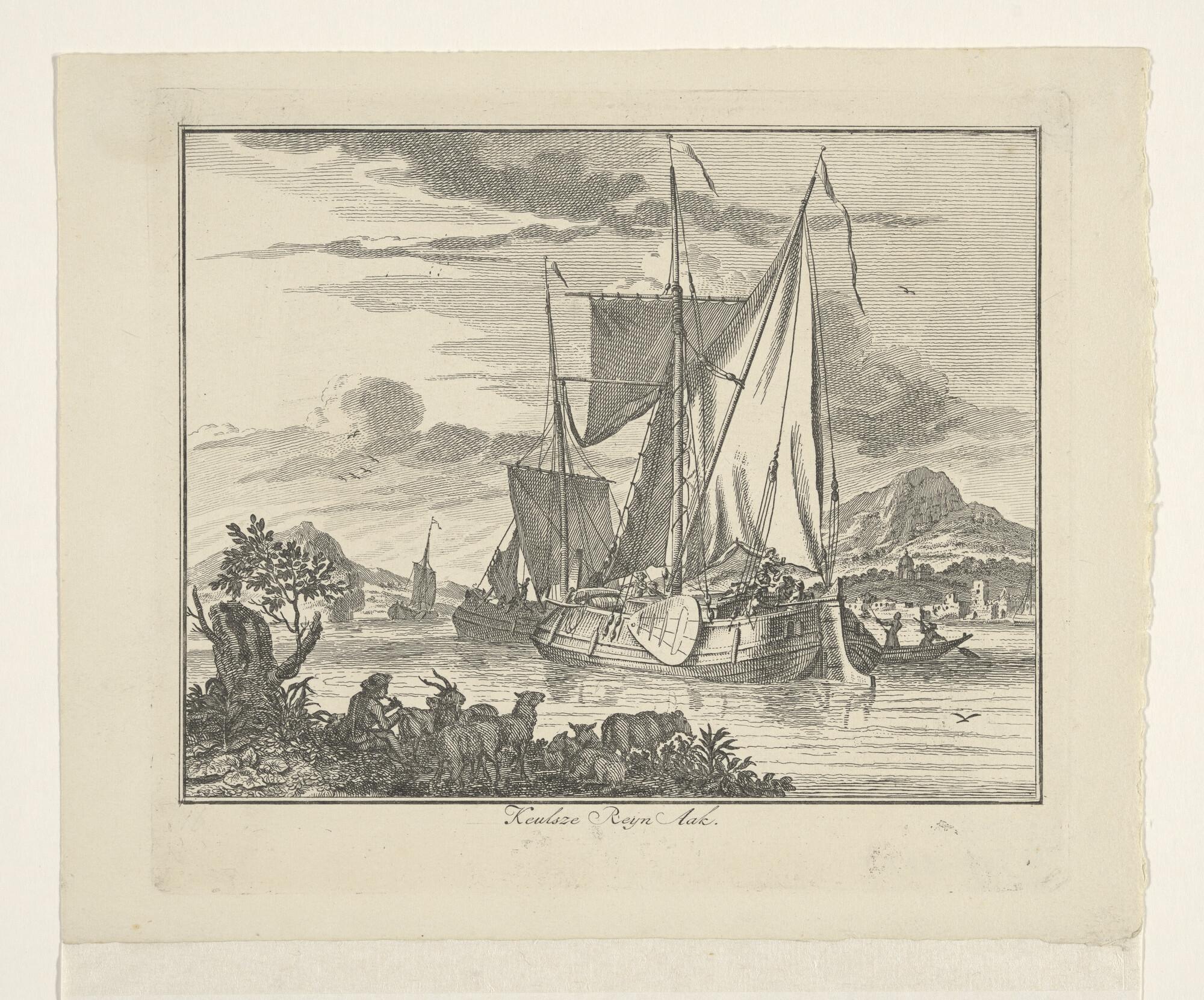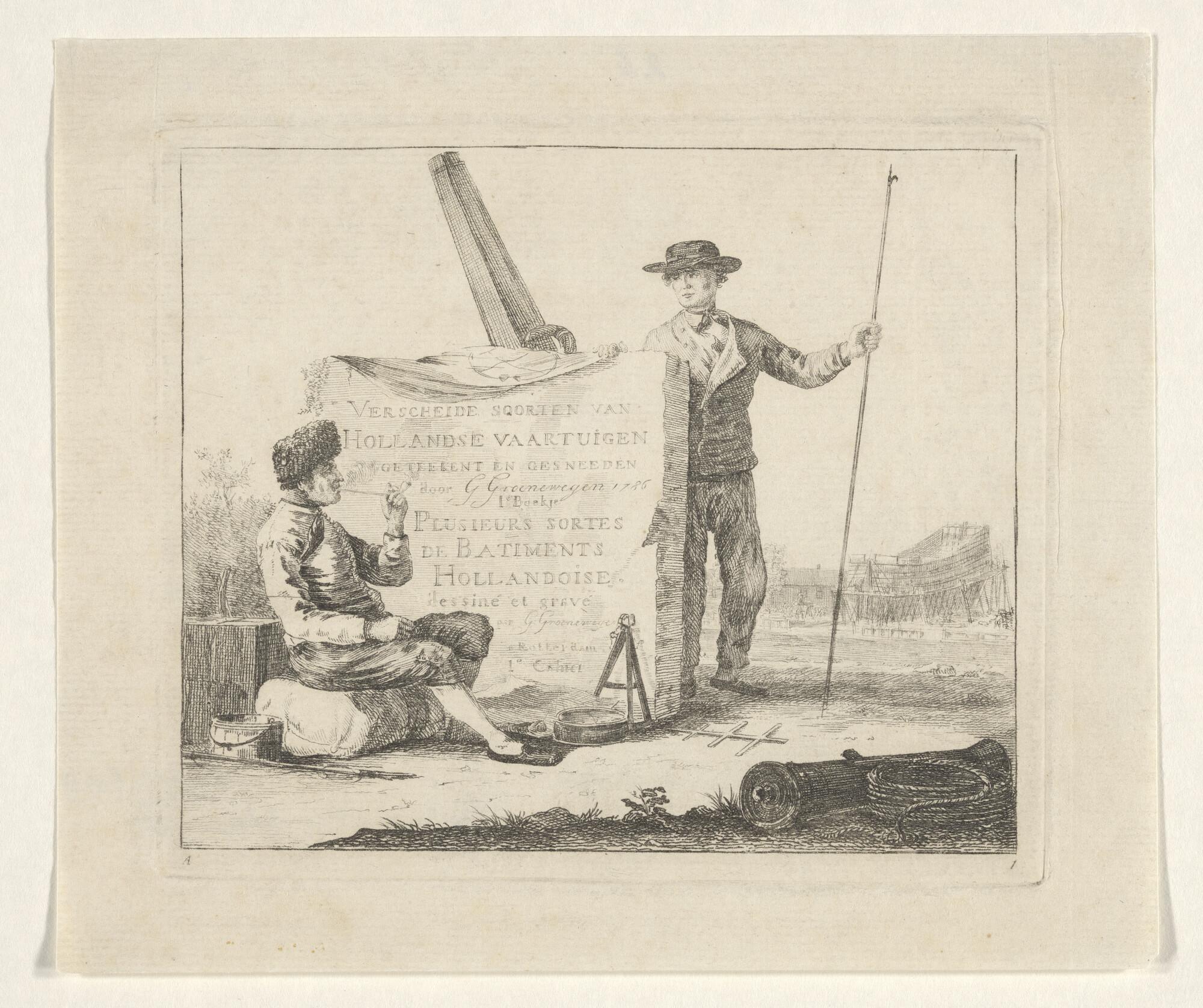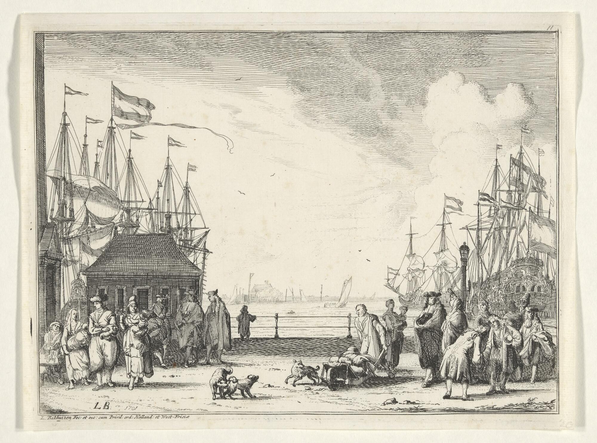 Prent van een scheepswerf