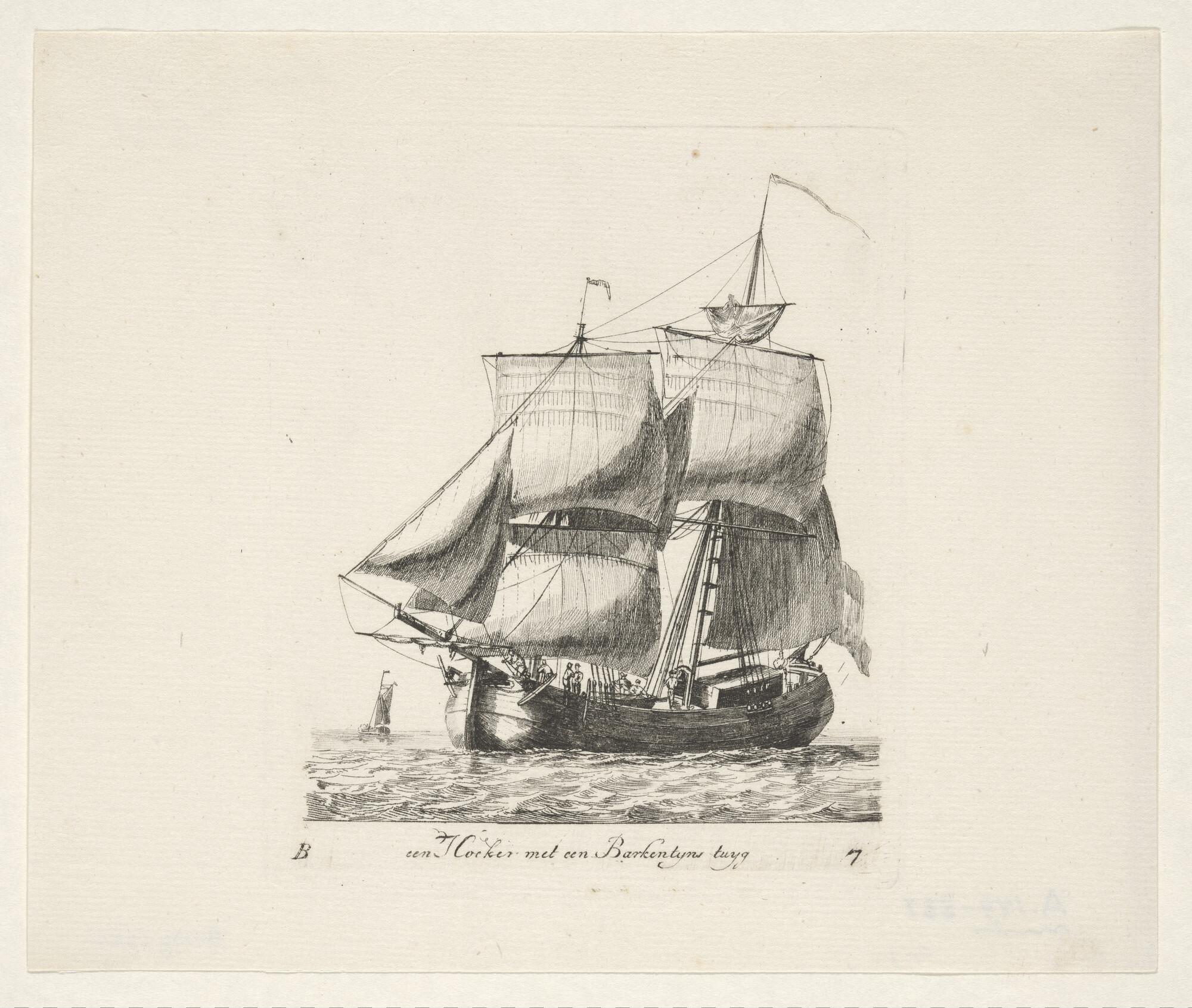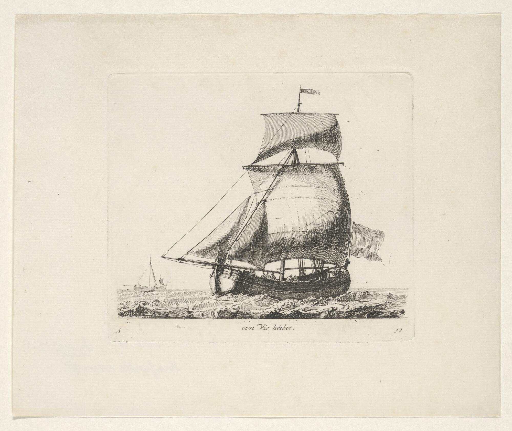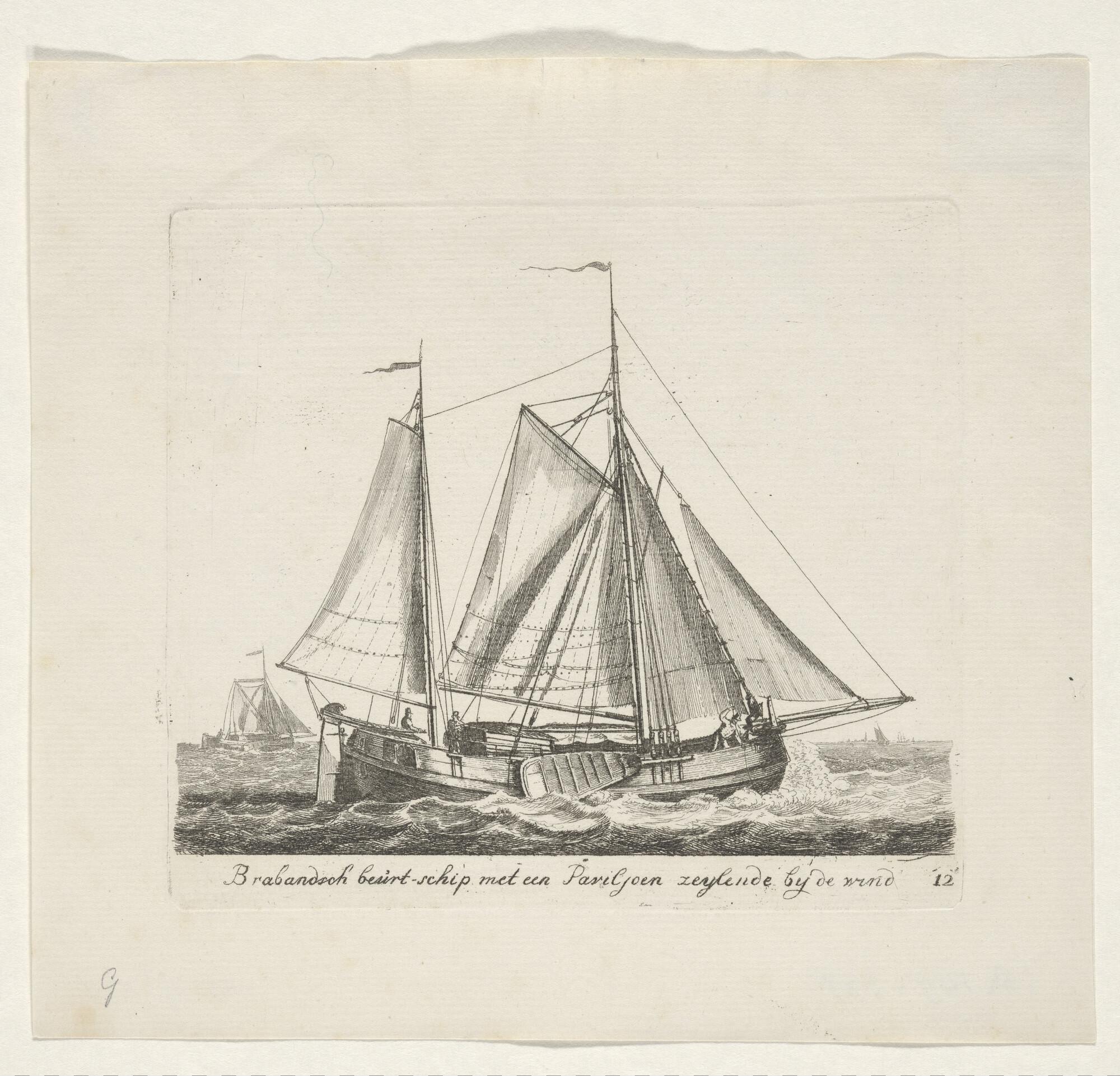 Twee fluitschepen in open water, waarvan een oversta...