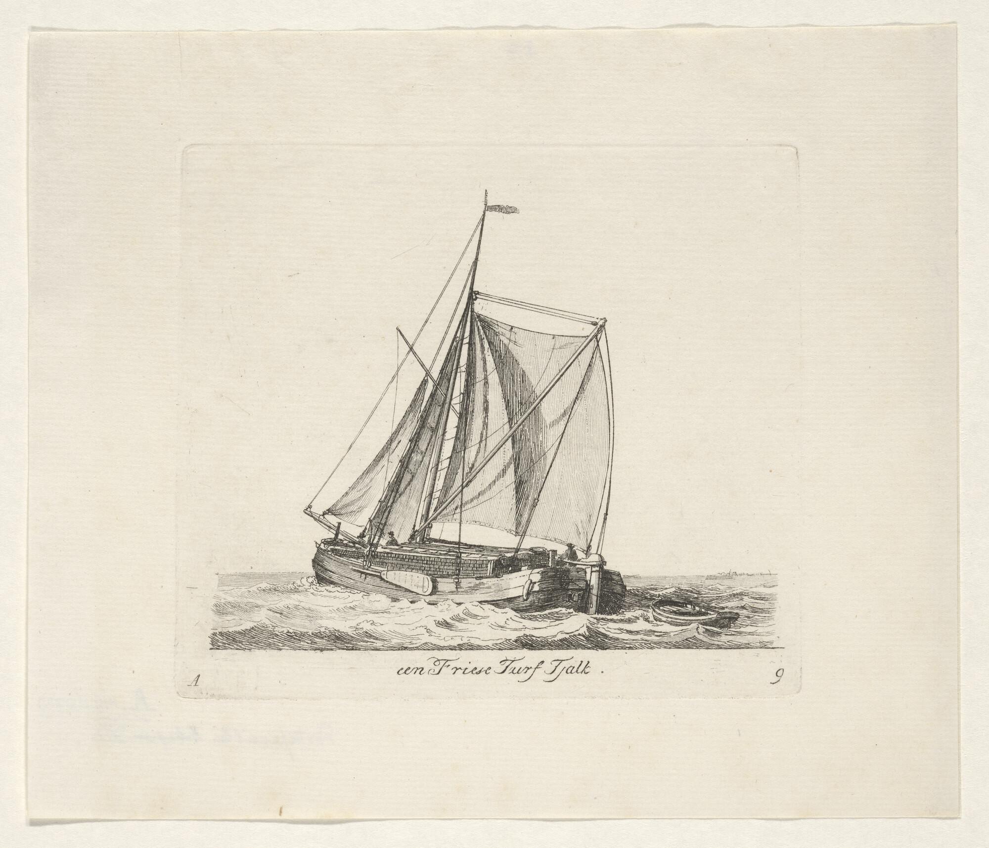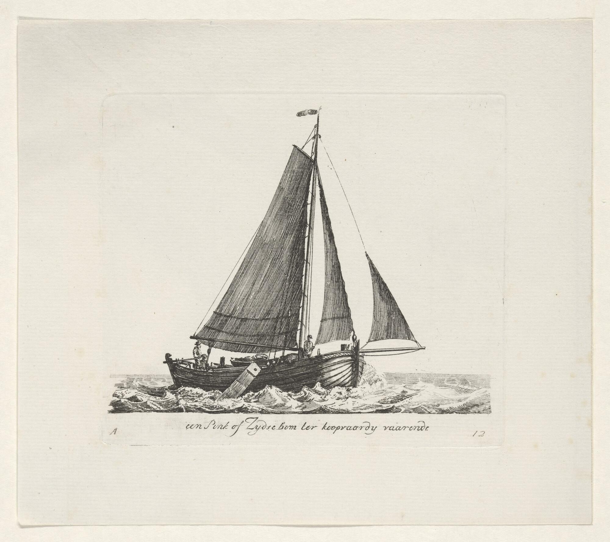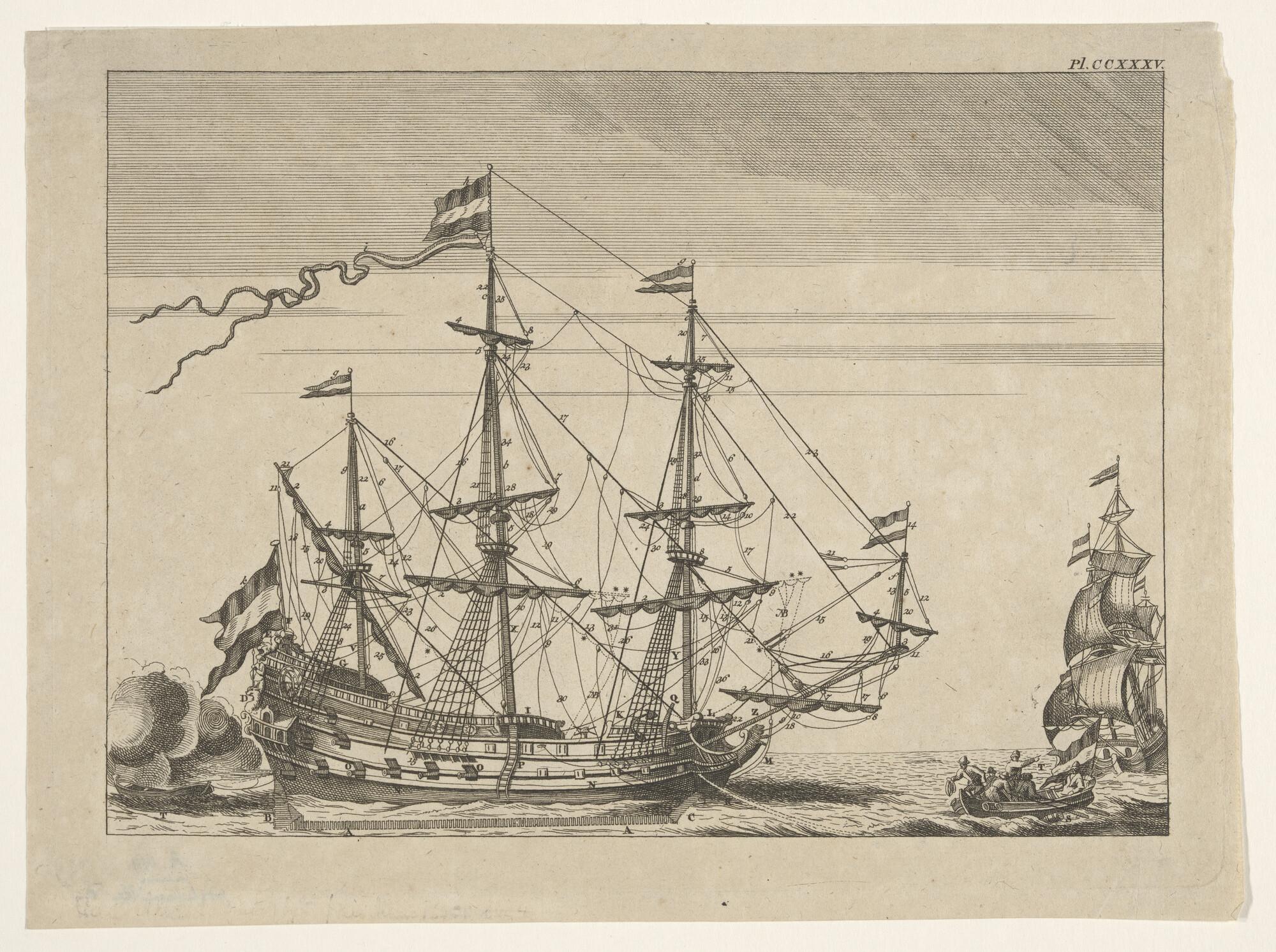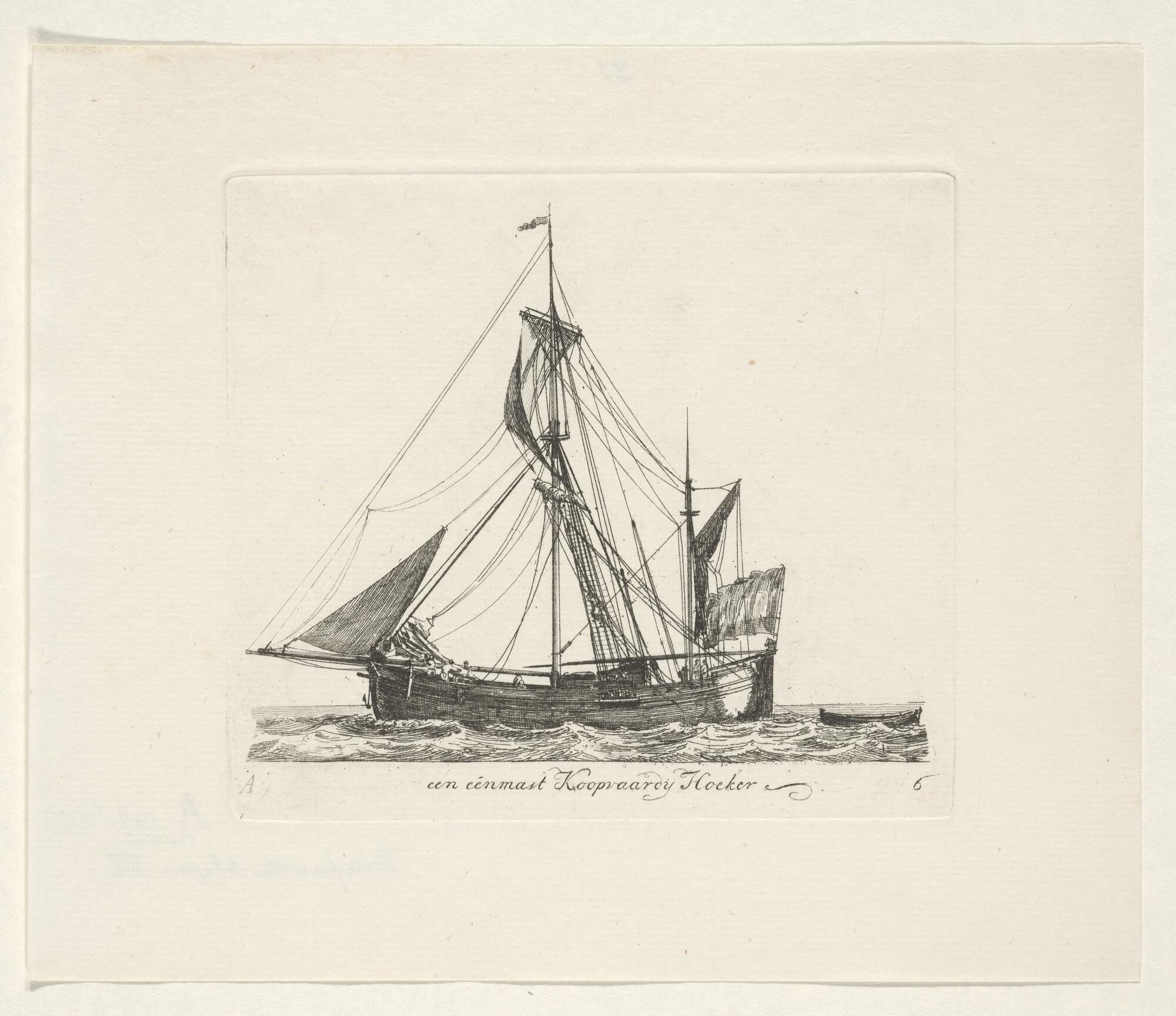 Twee fluitschepen in open water, waarvan een oversta...