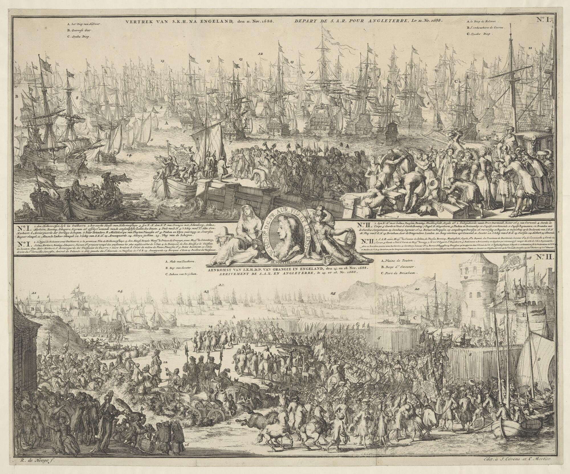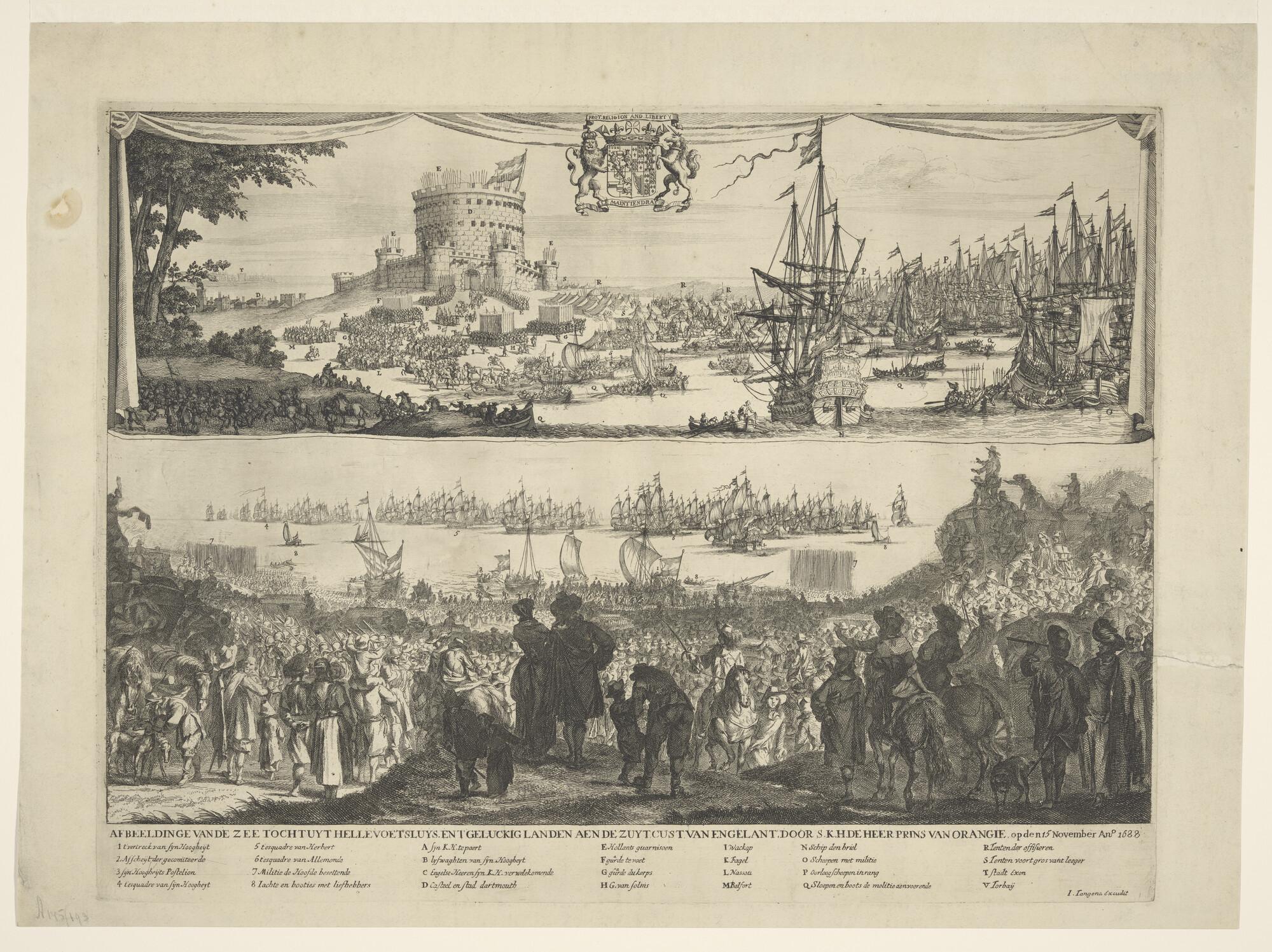 Tekst bij de prent: De overtocht van stadhouder prin...
