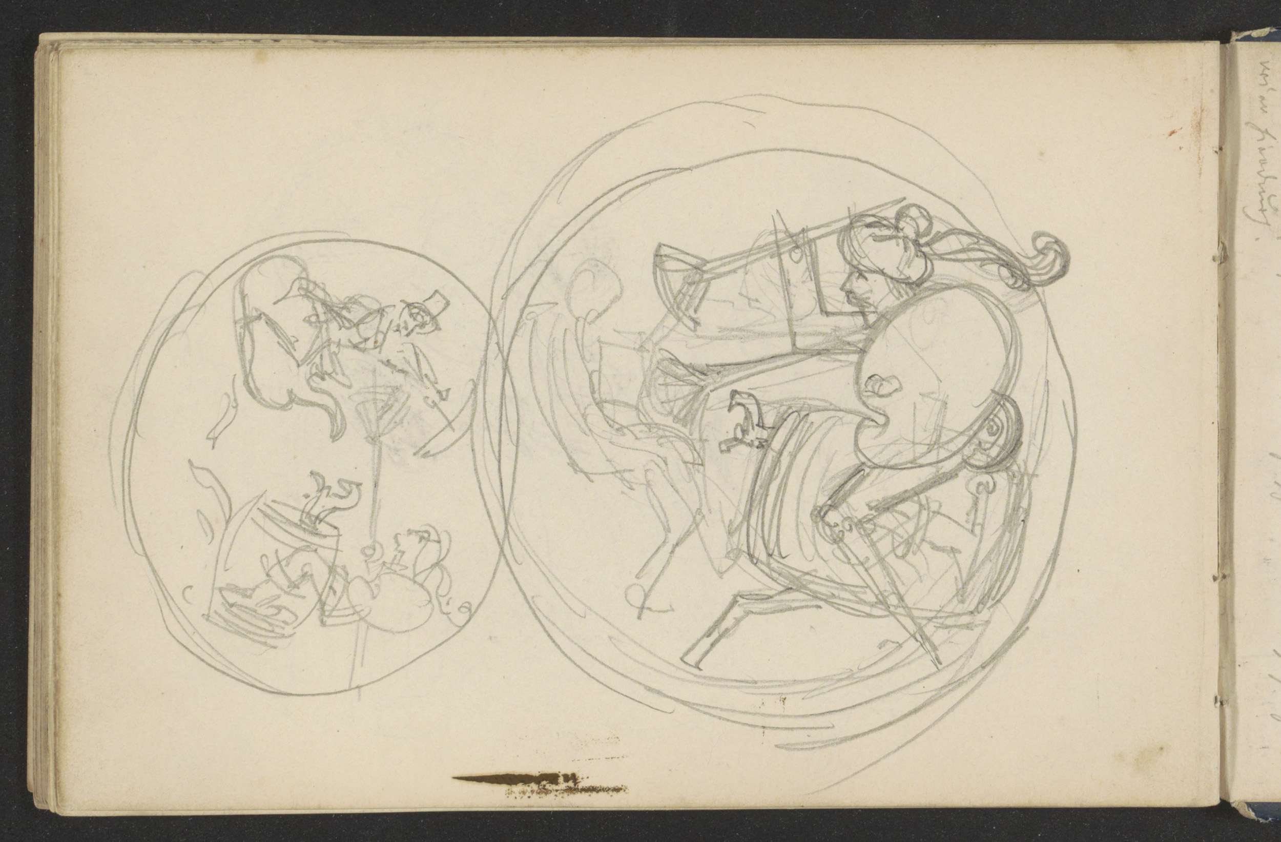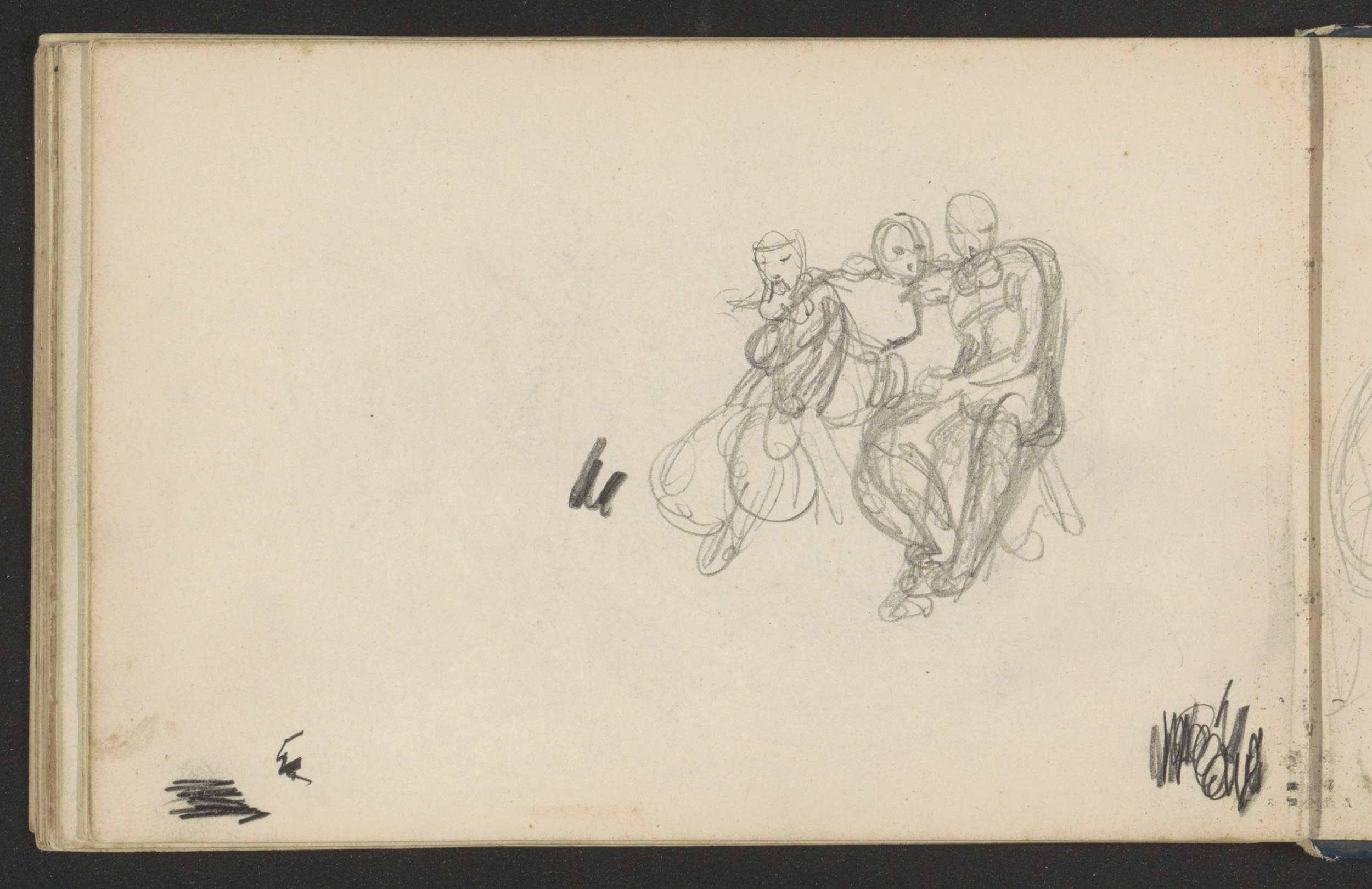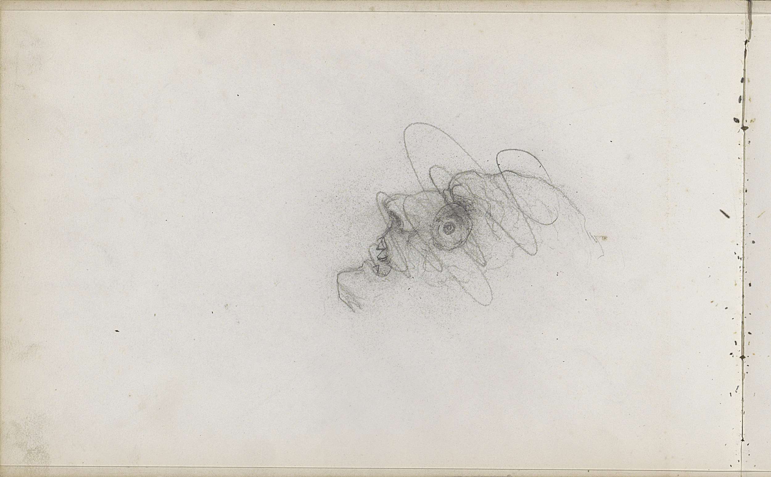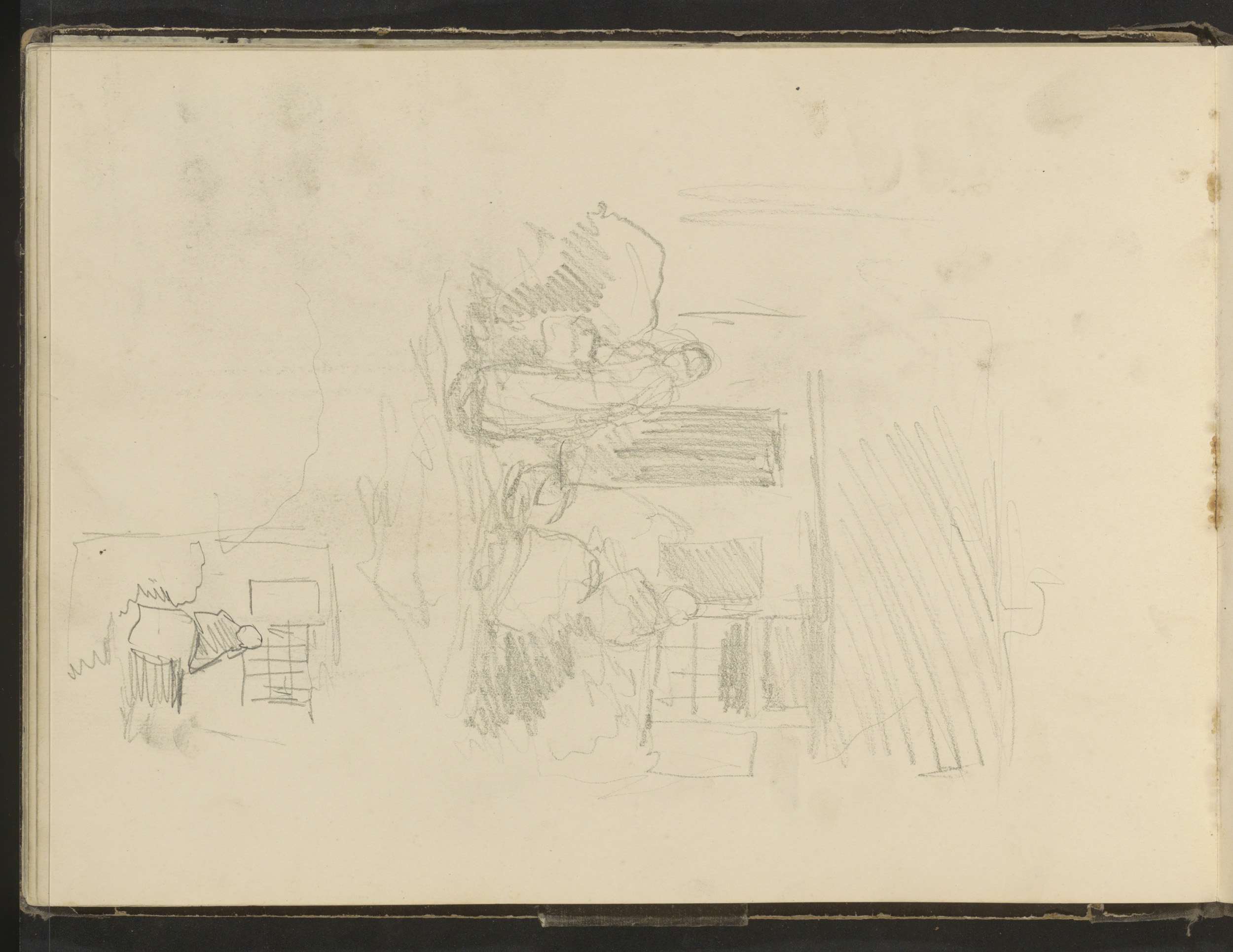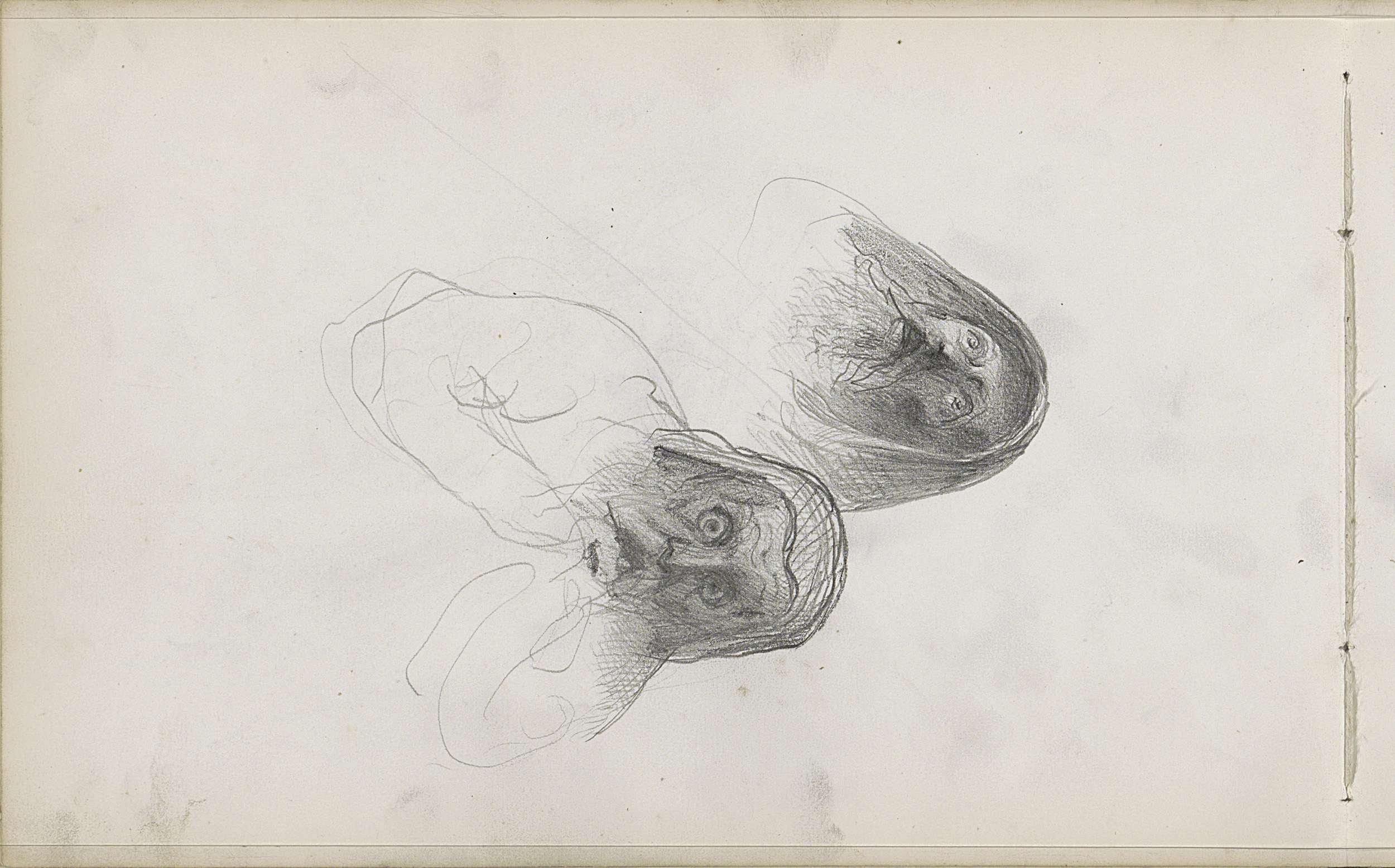 Vrouw, mogelijk een engel, buigend over twee ineenge...