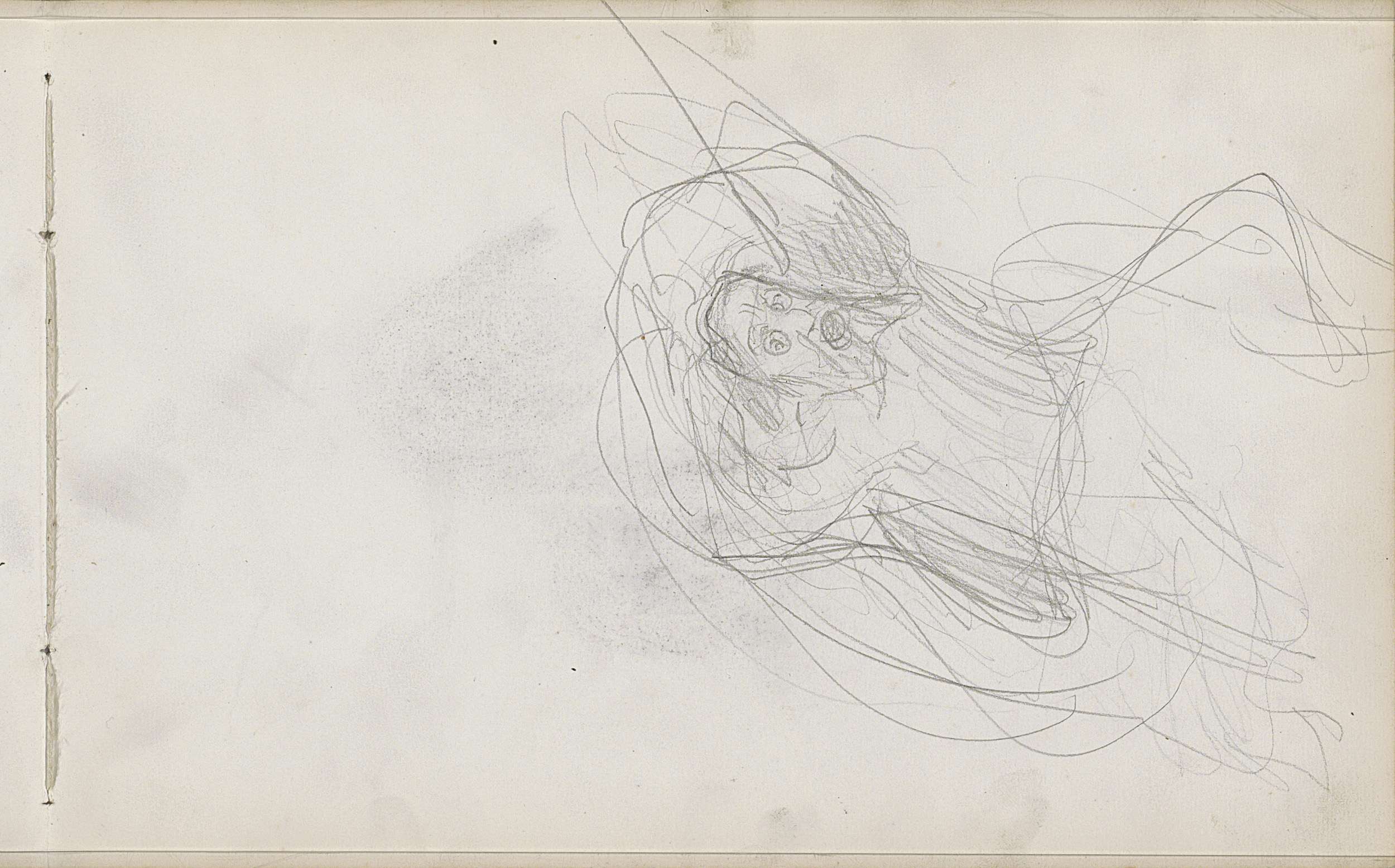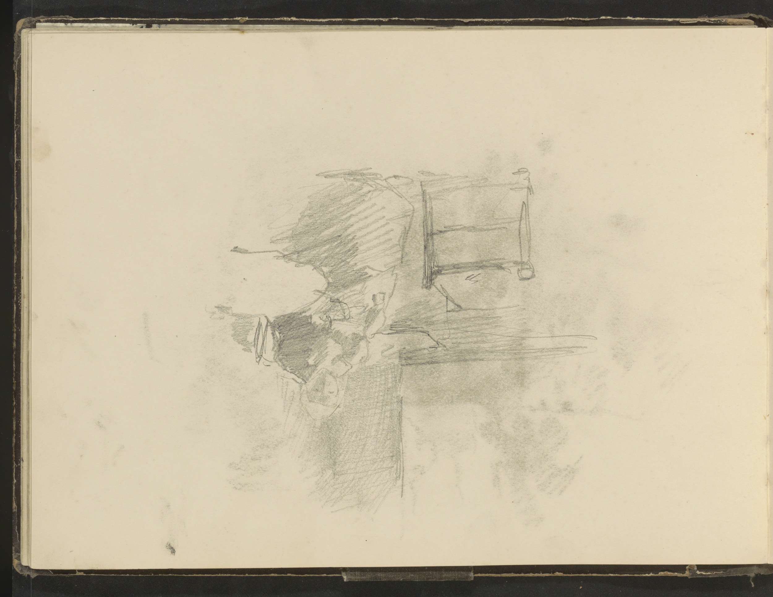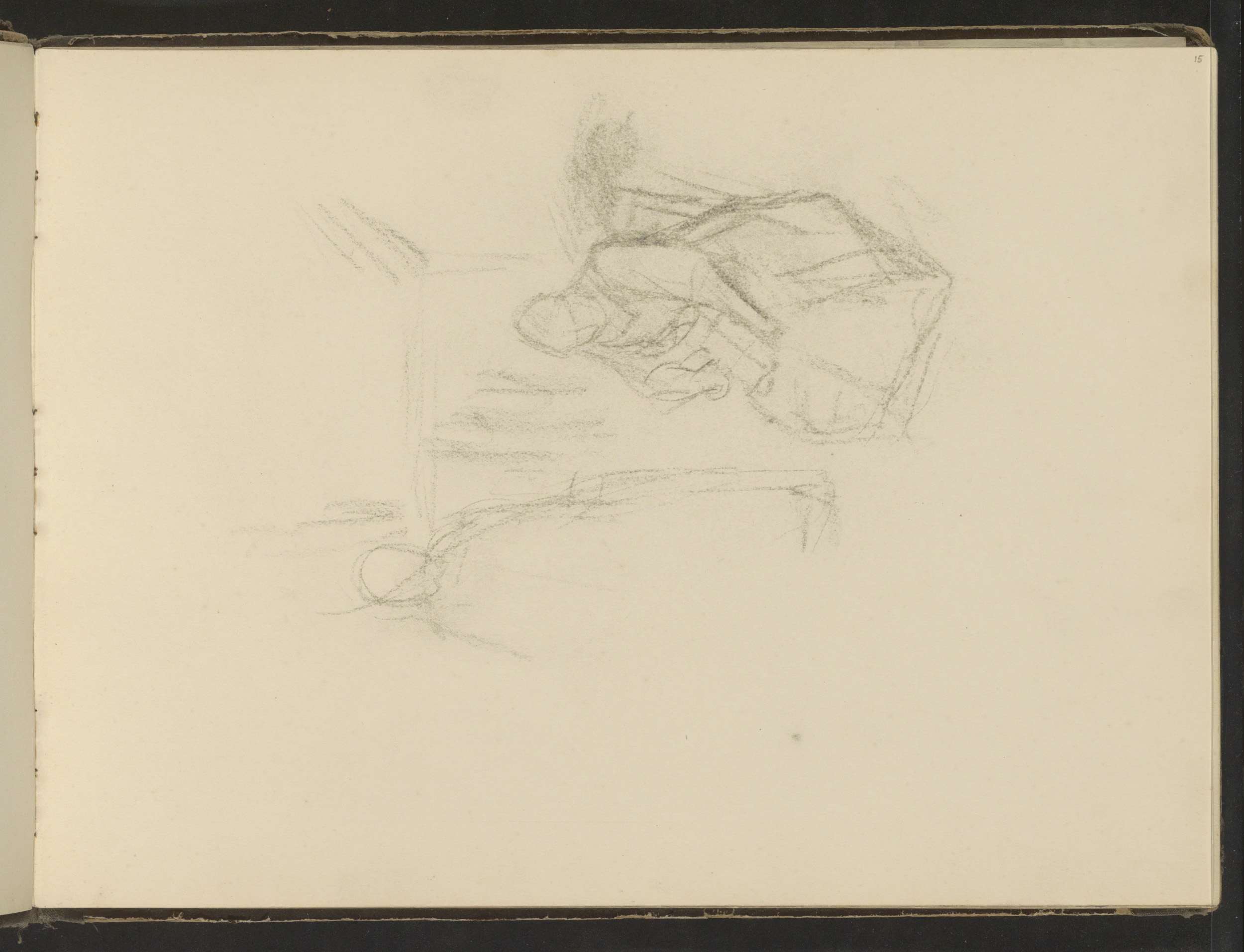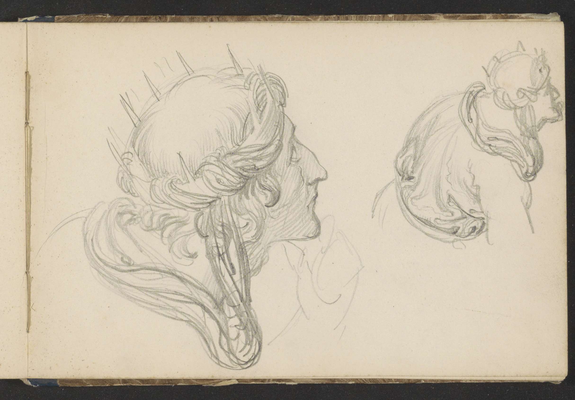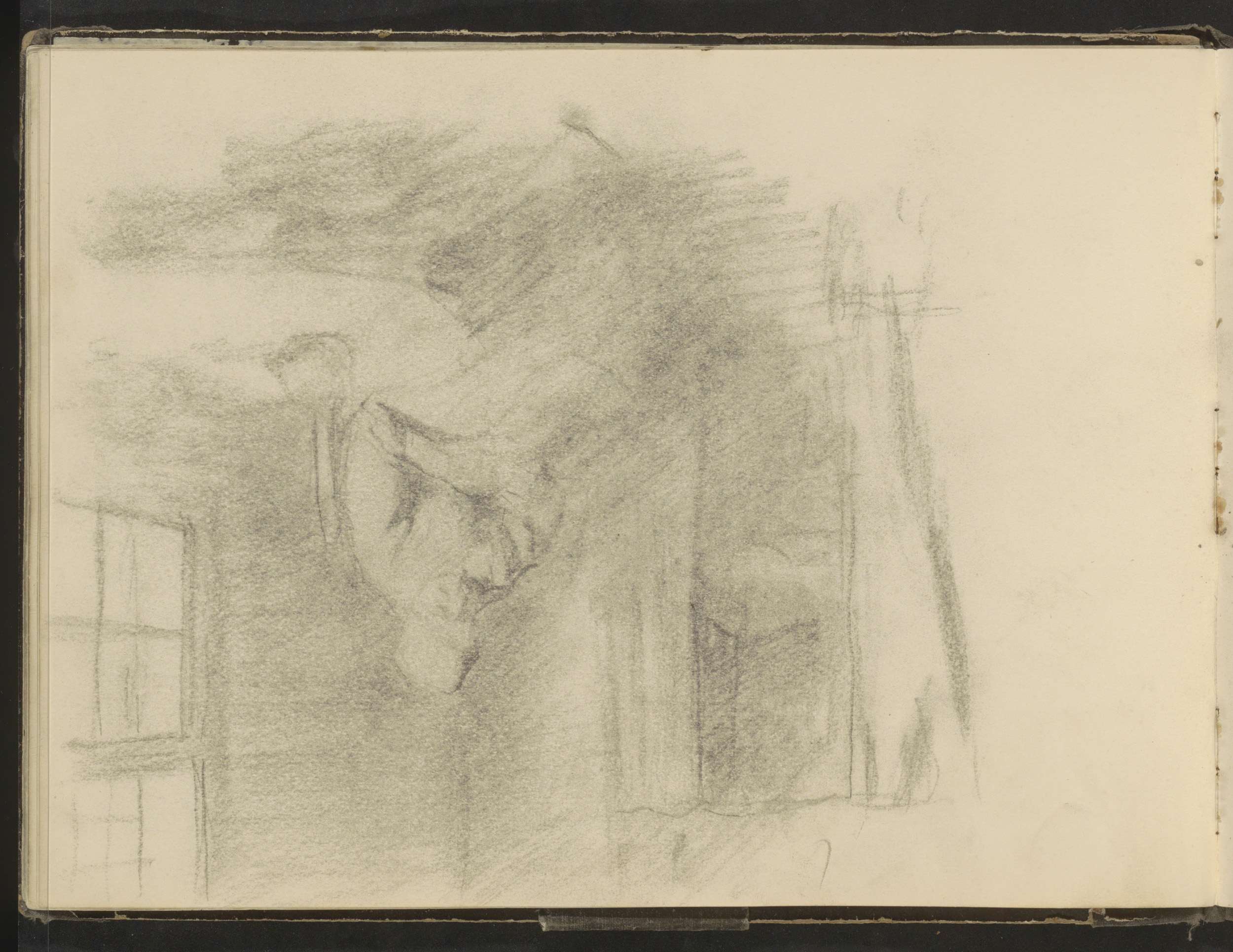 Vrouw, mogelijk een engel, buigend over twee ineenge...