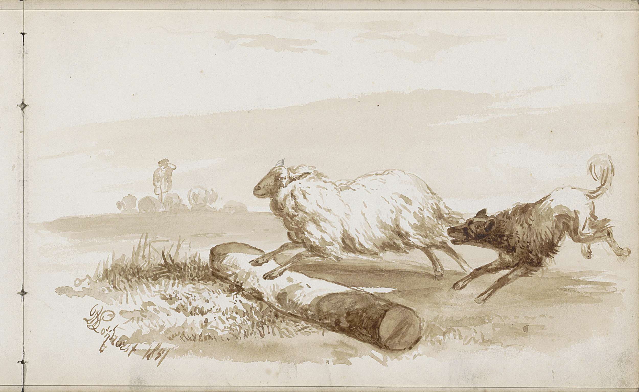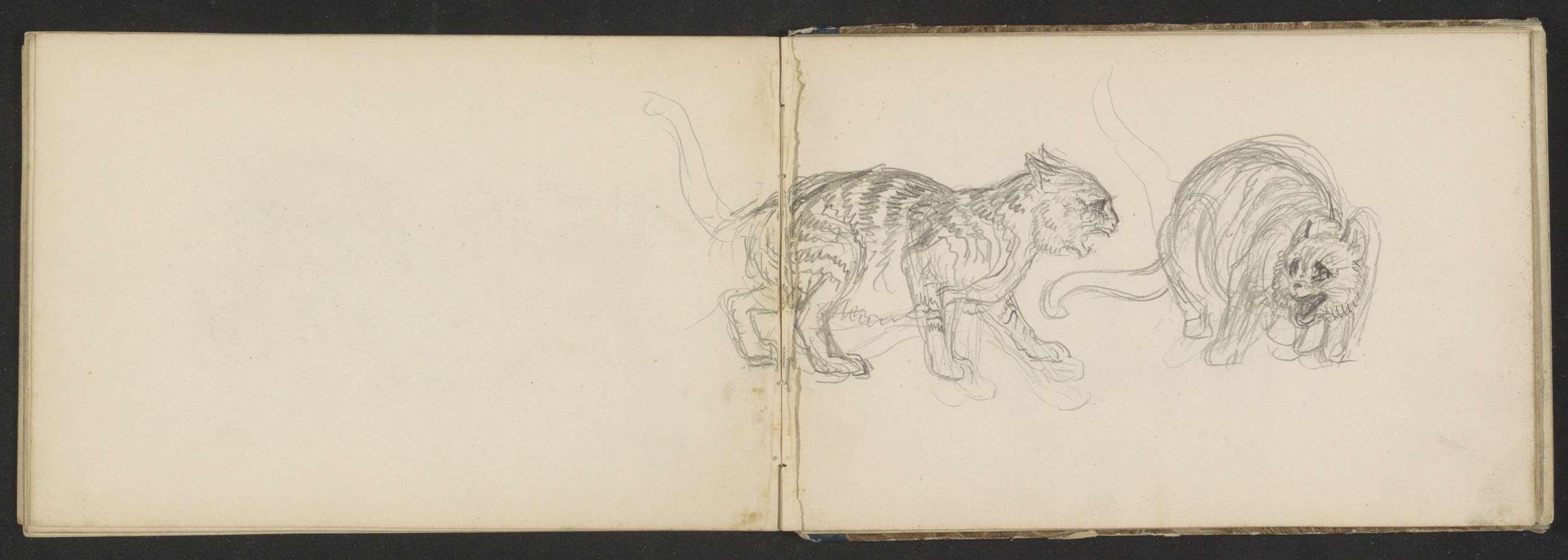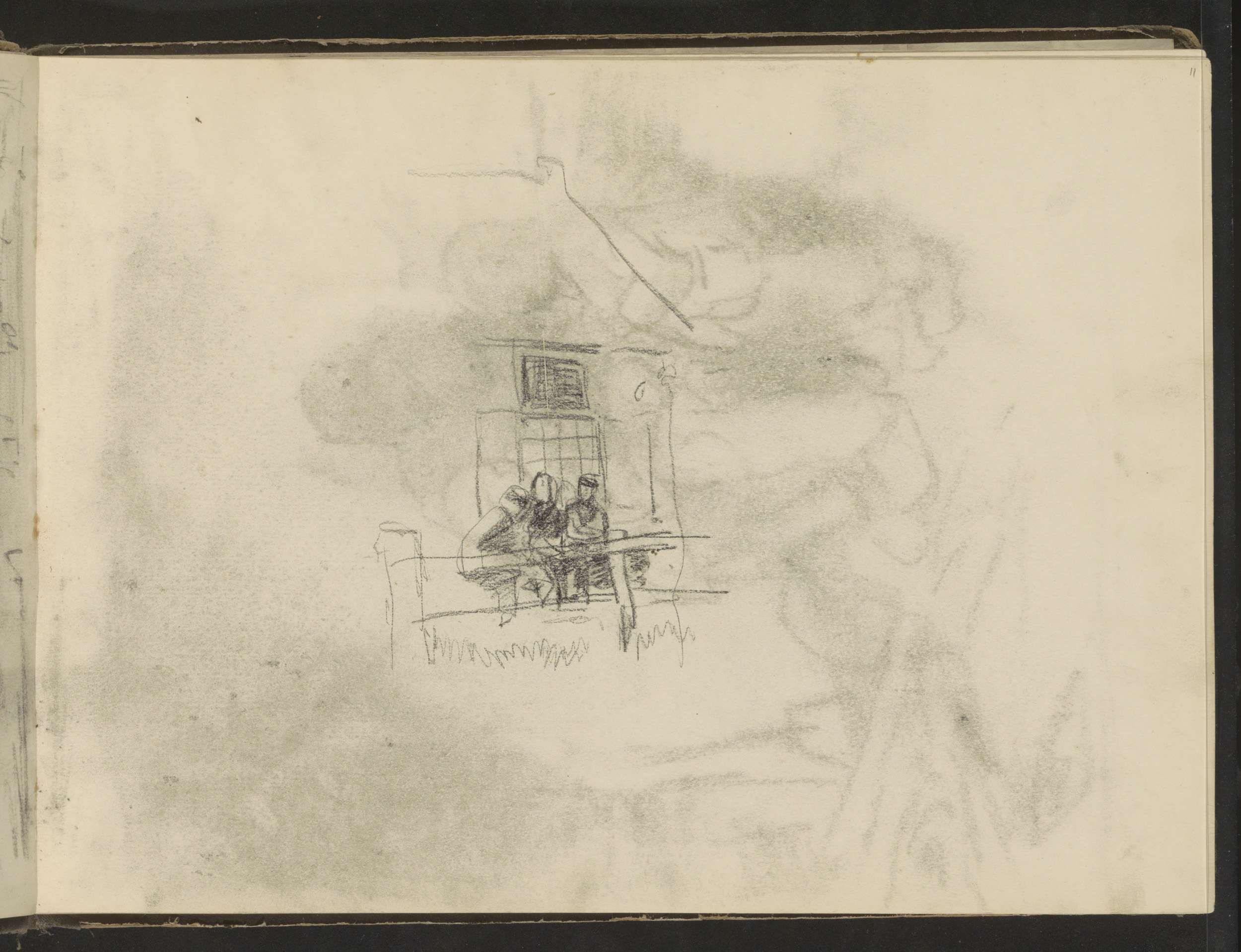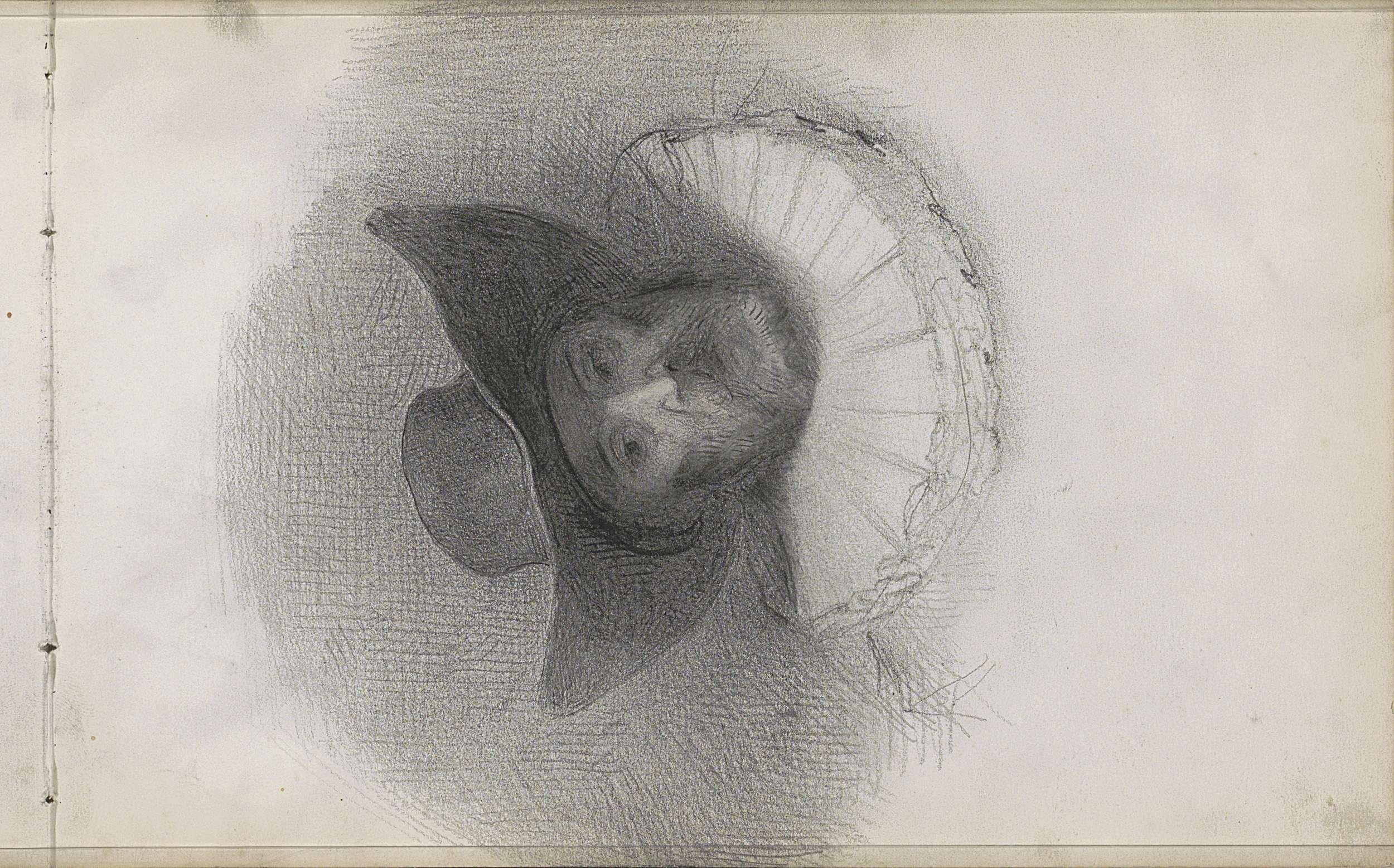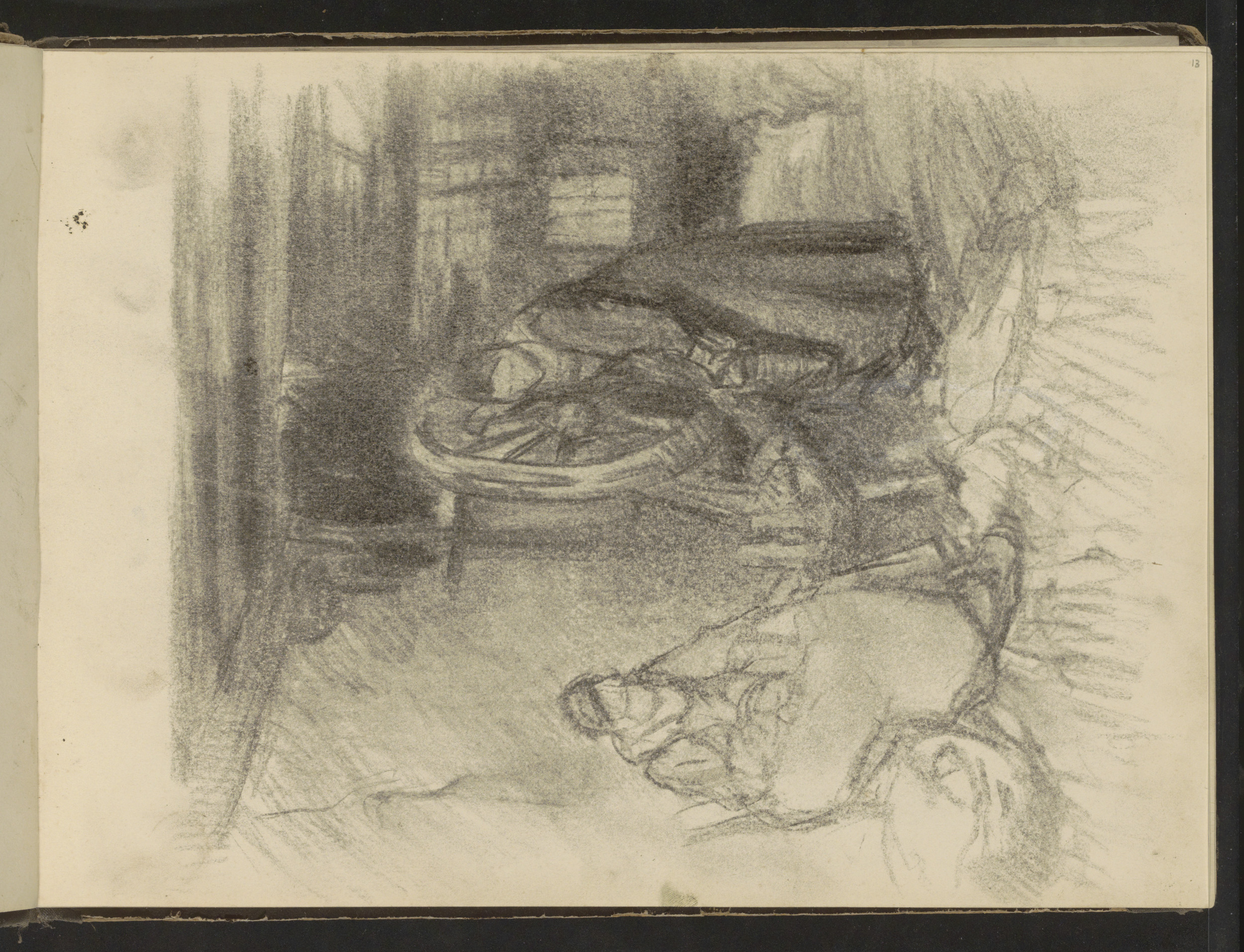 Vrouw, mogelijk een engel, buigend over twee ineenge...
