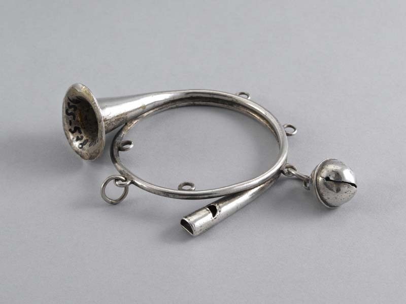 Rinkelbel met fluitje in de vorm van een posthoorn