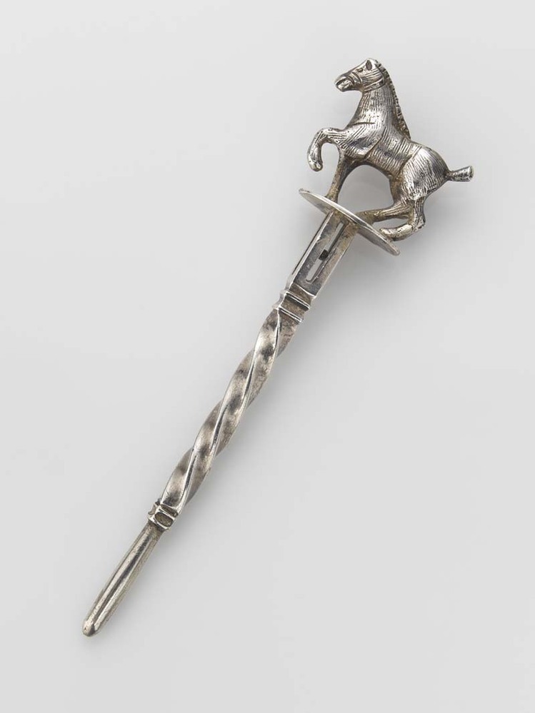 Pijpenpluizer met stappend paard op ovaal plateau, m...