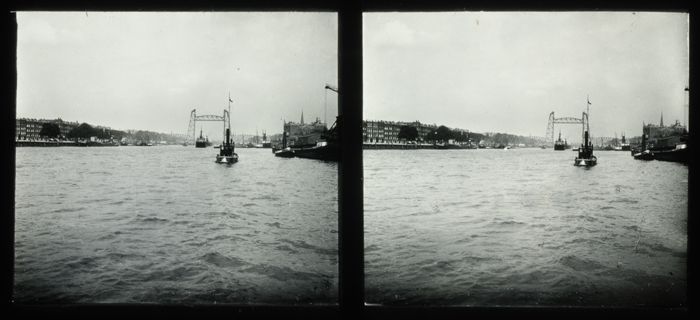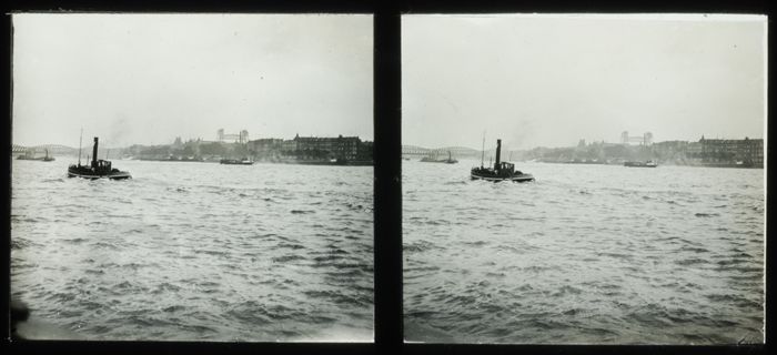 Stereo glasdia van de Maas en het Noordereiland te R...