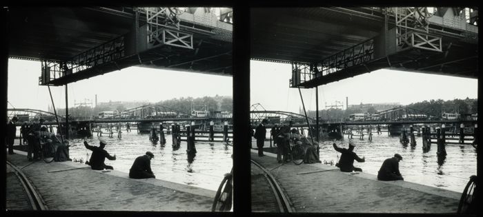 Stereo glasdia van de hulpbrug over de Koningshaven ...