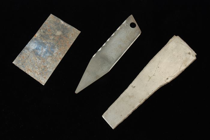 Drie plaatjes metaal om schrapers van te maken