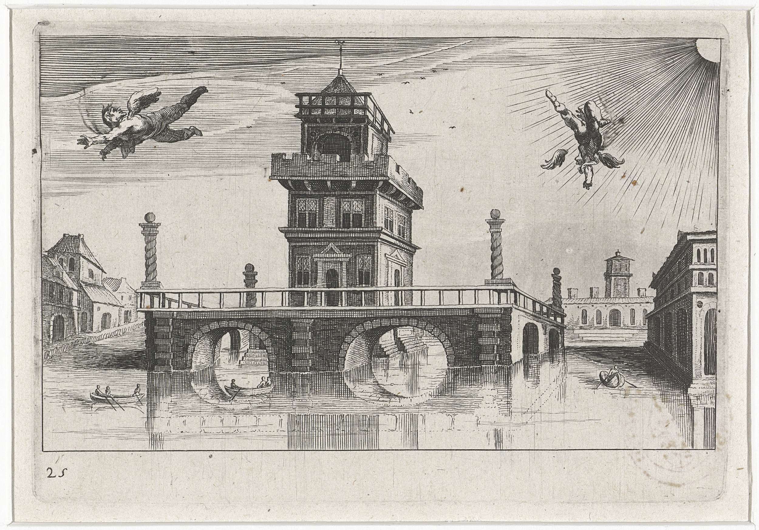 Stadsgezicht met Icarus en Daedalus