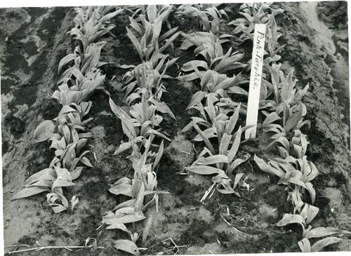 Foto in zwart-wit van rijen tulpen ras Pink Trophie ...
