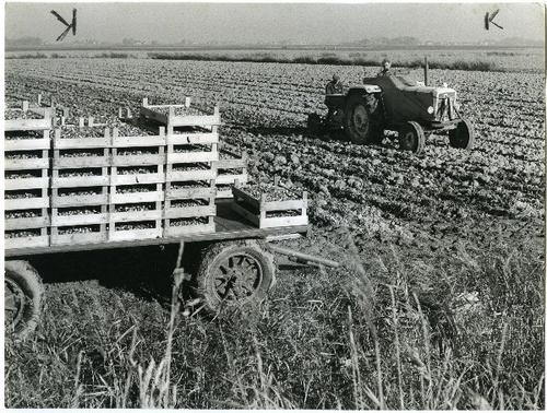 Foto in zwart-wit van het z.g. jeepmelken door Han d...