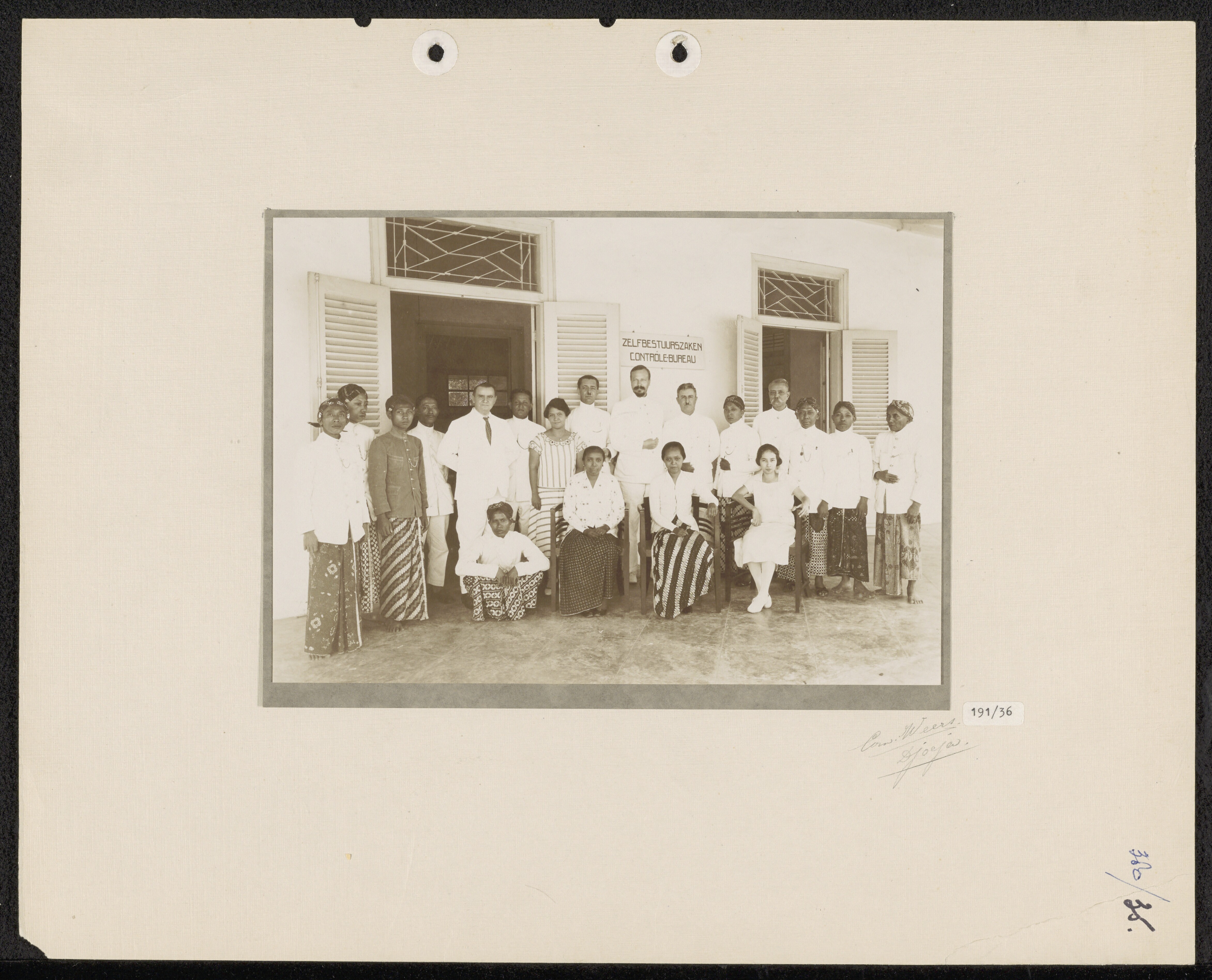 Group portrait in front of the 'Zelfbestuurszaken Co...