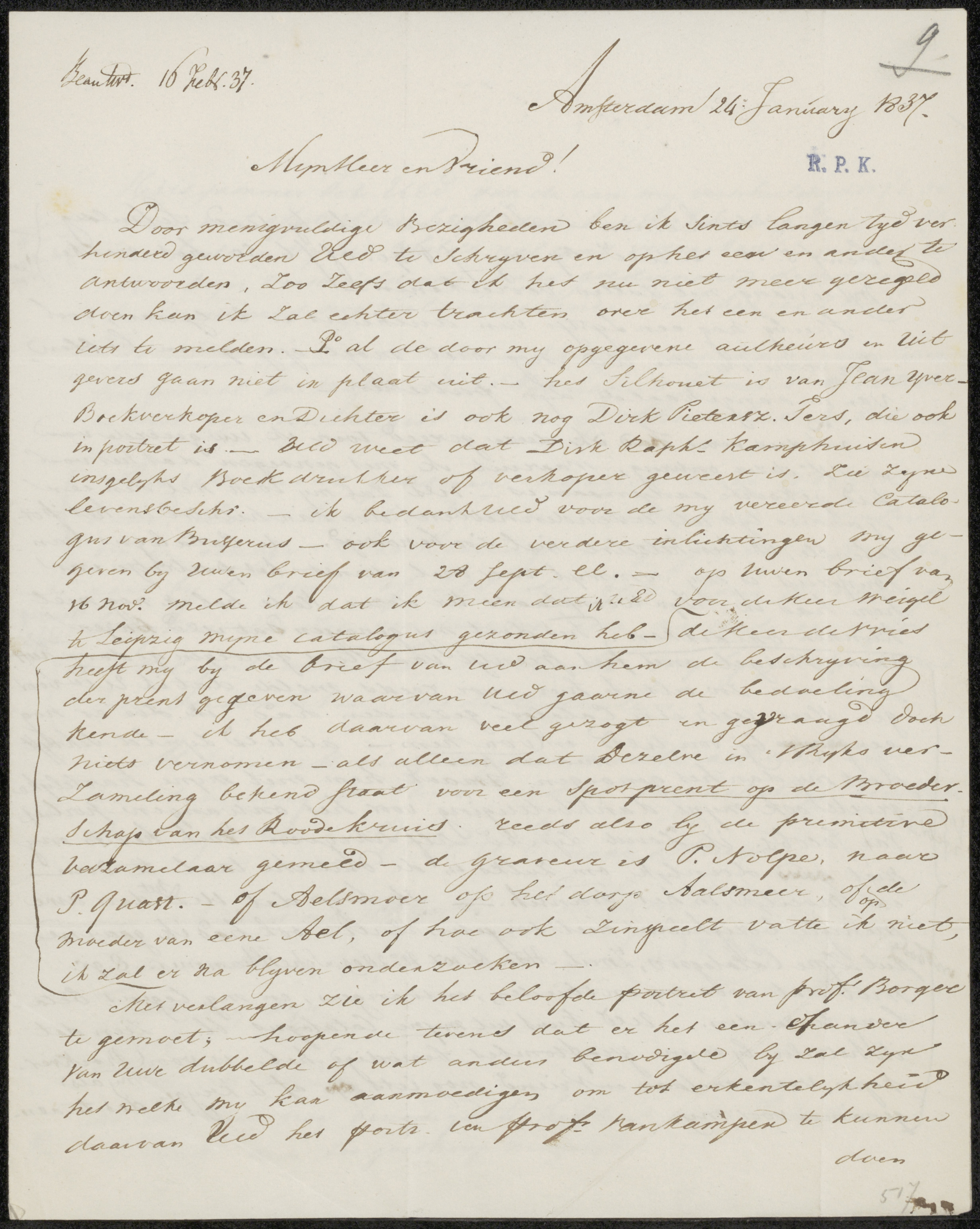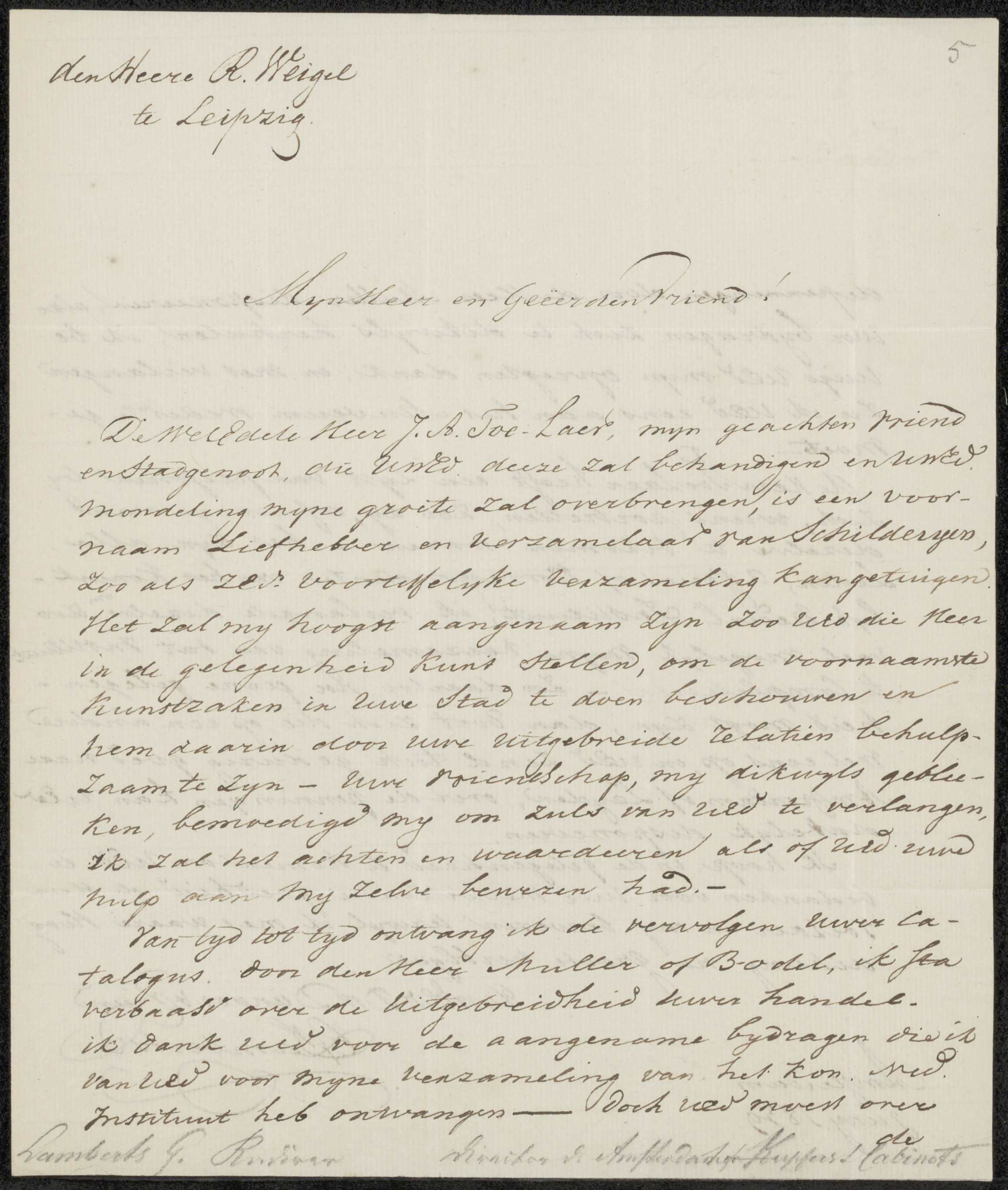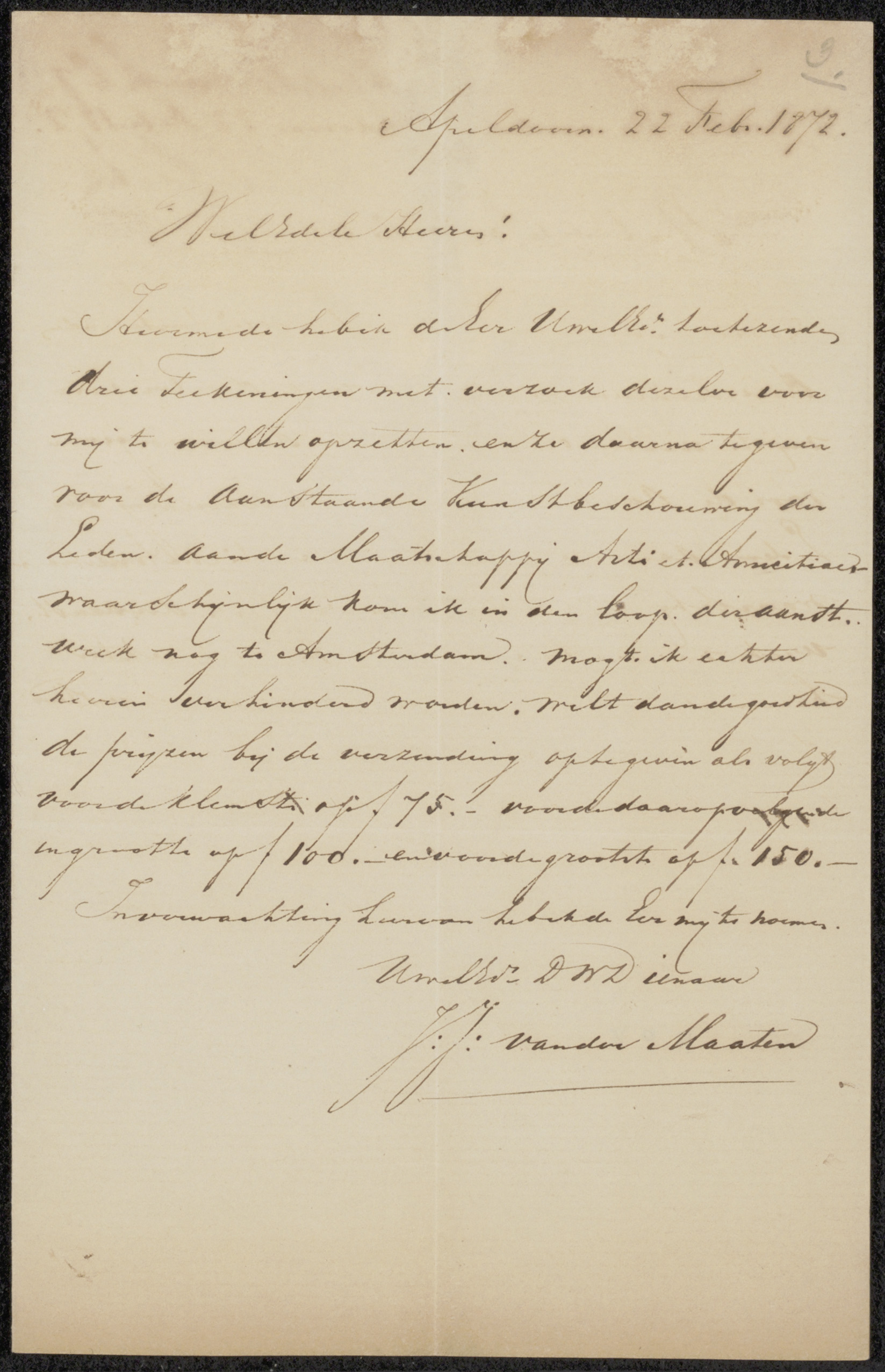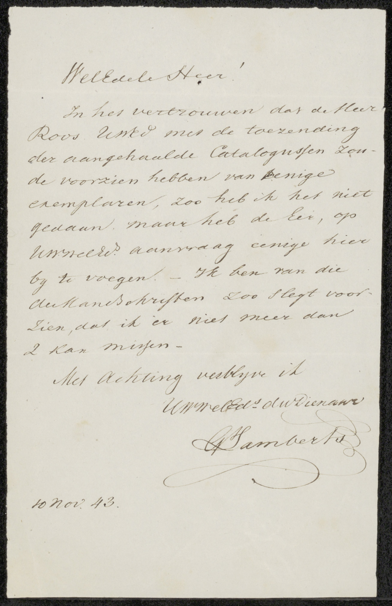 Brief aan Johannes Tiberius Bodel Nijenhuis