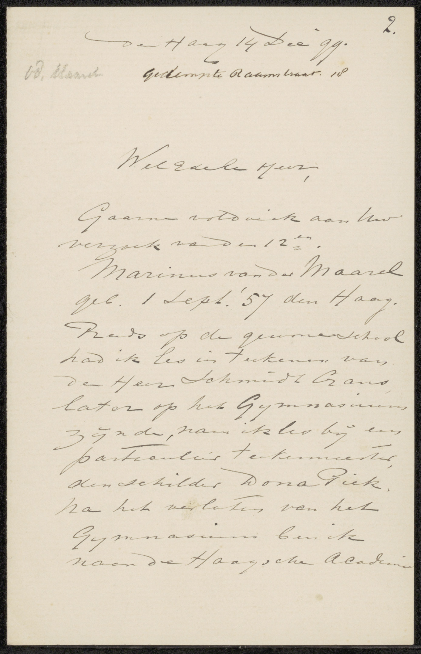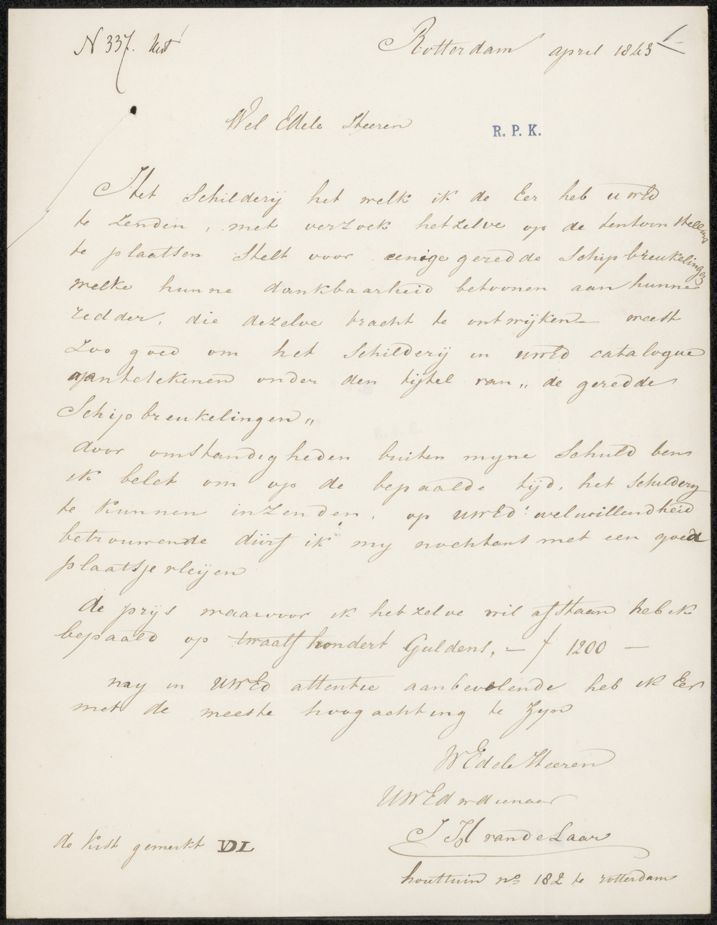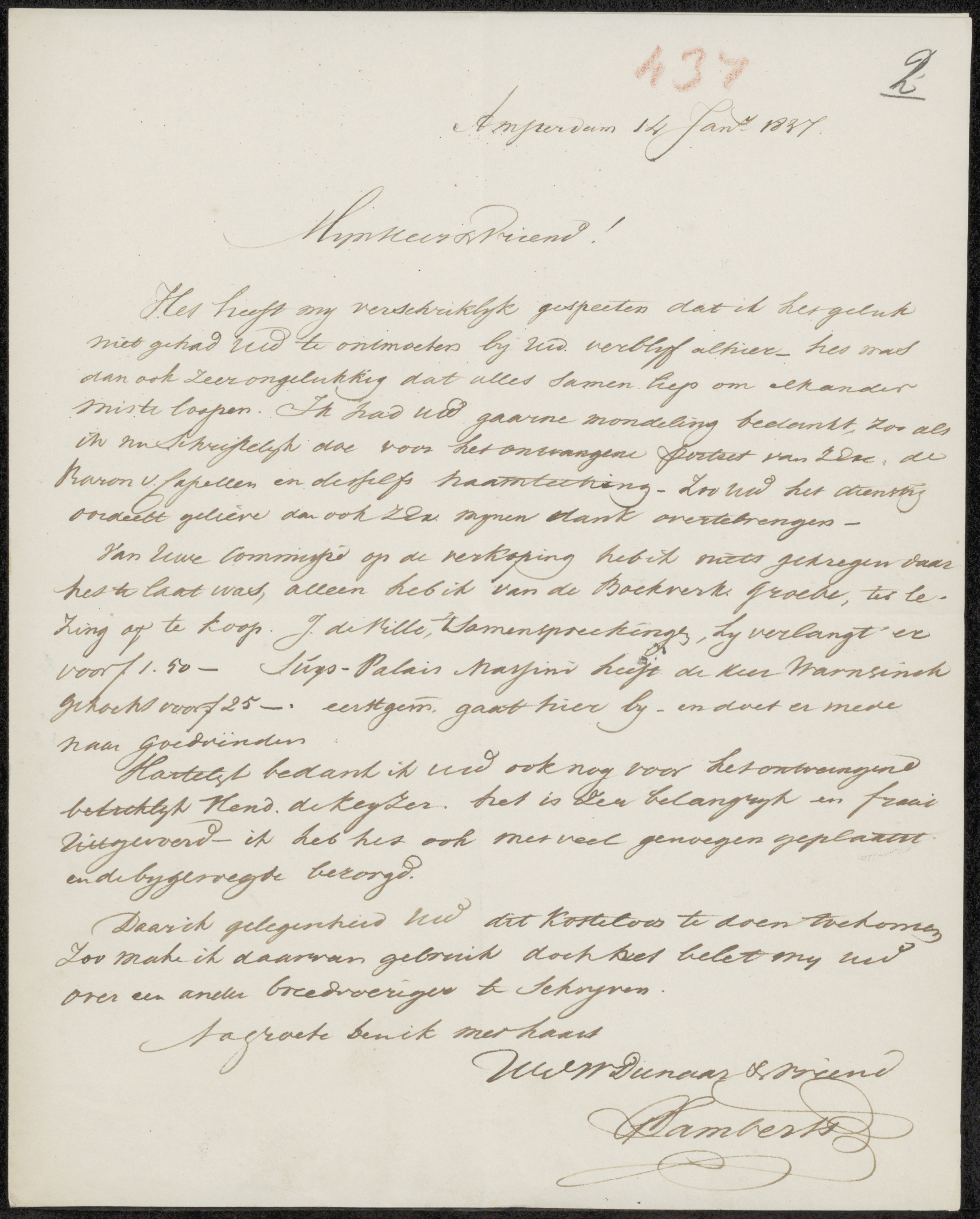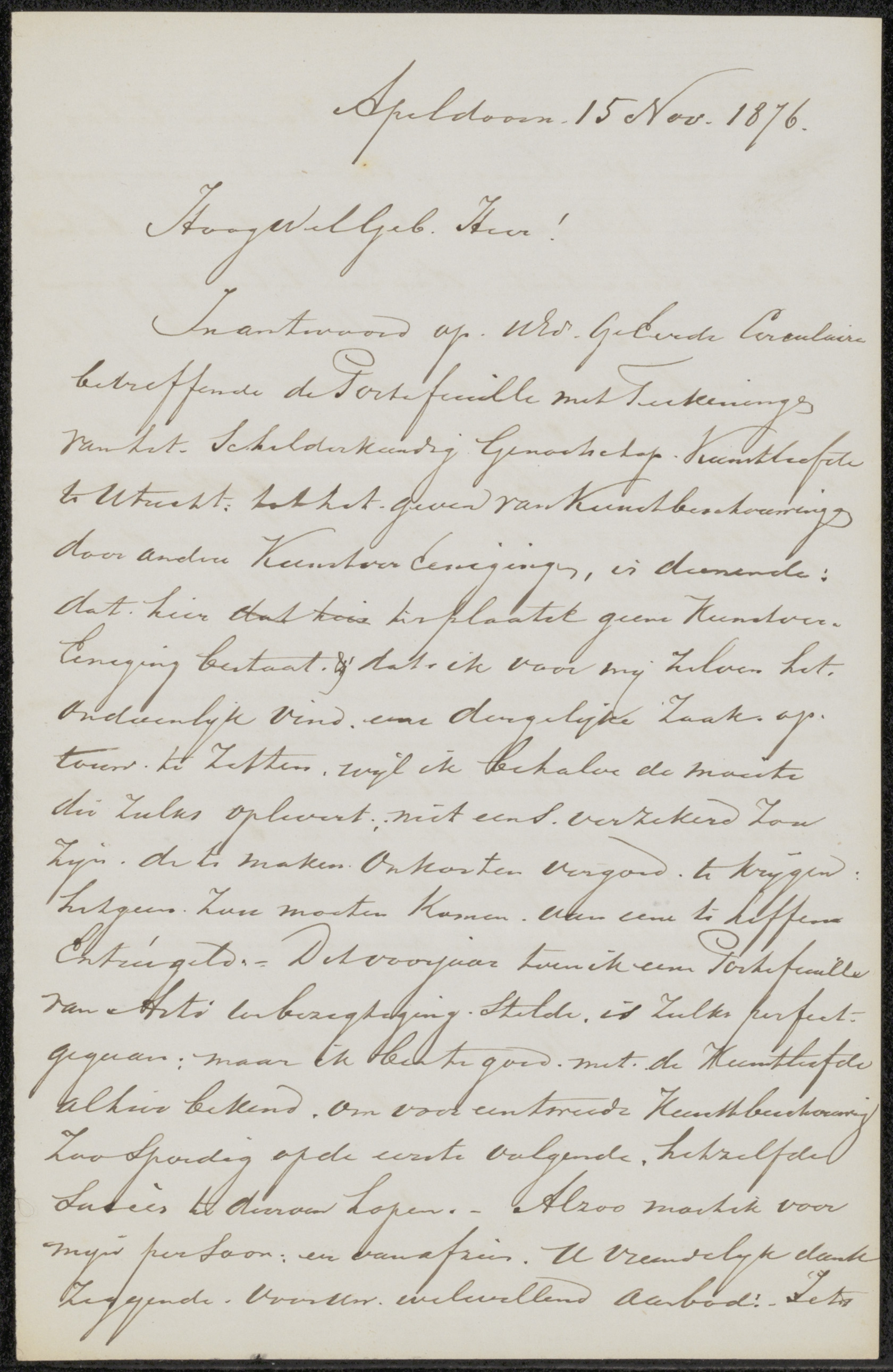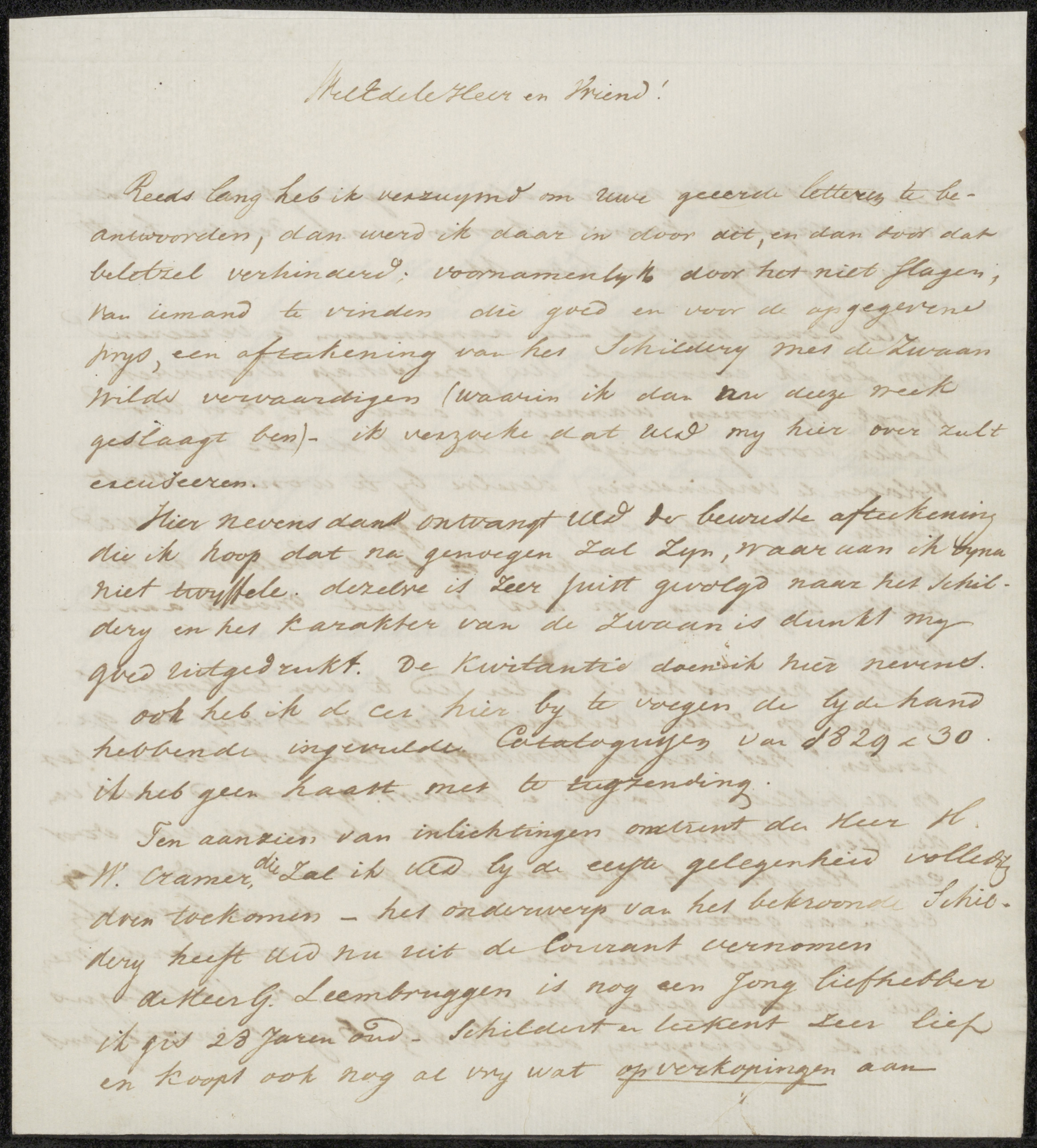 Brief aan Johannes Tiberius Bodel Nijenhuis