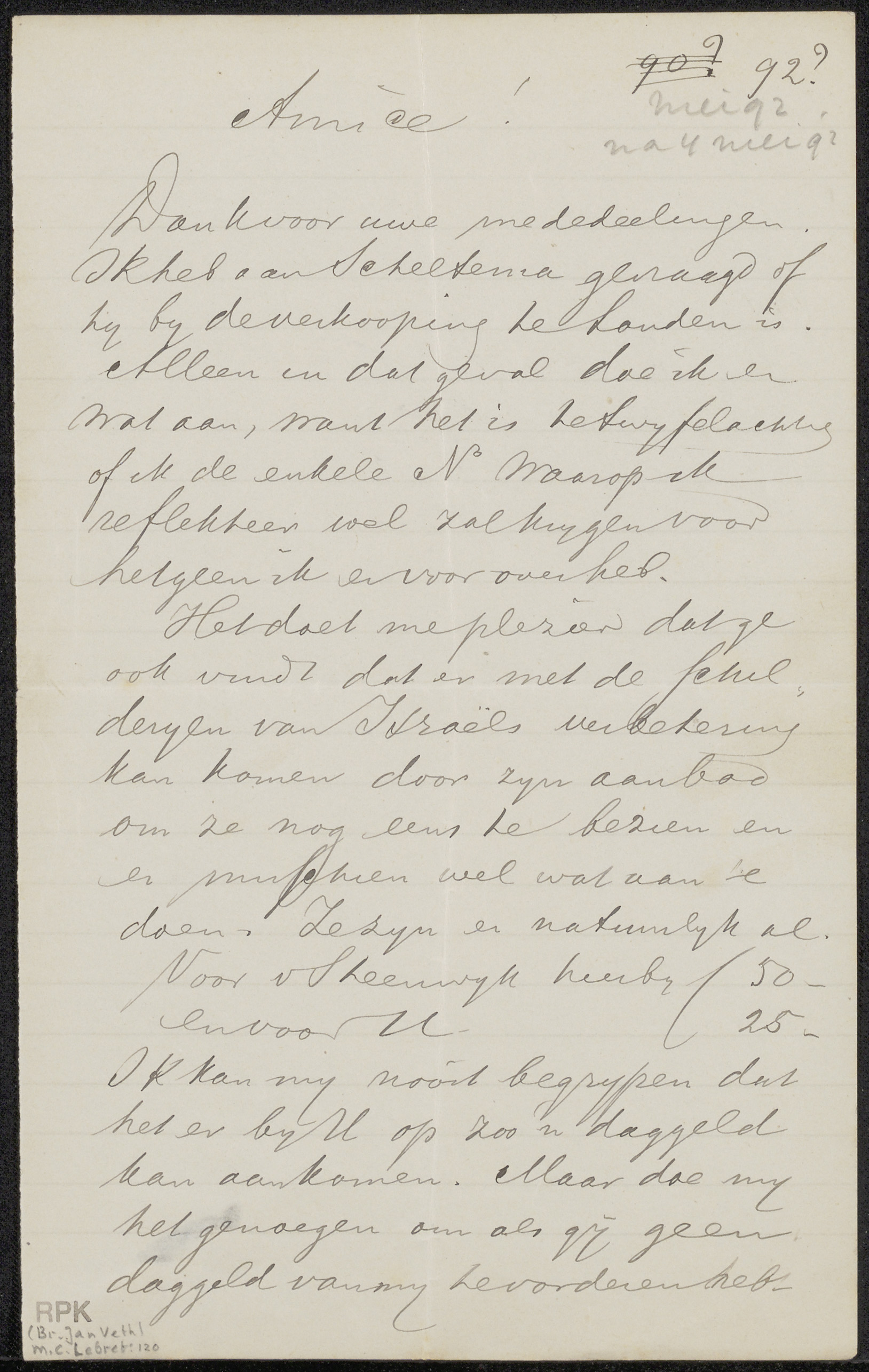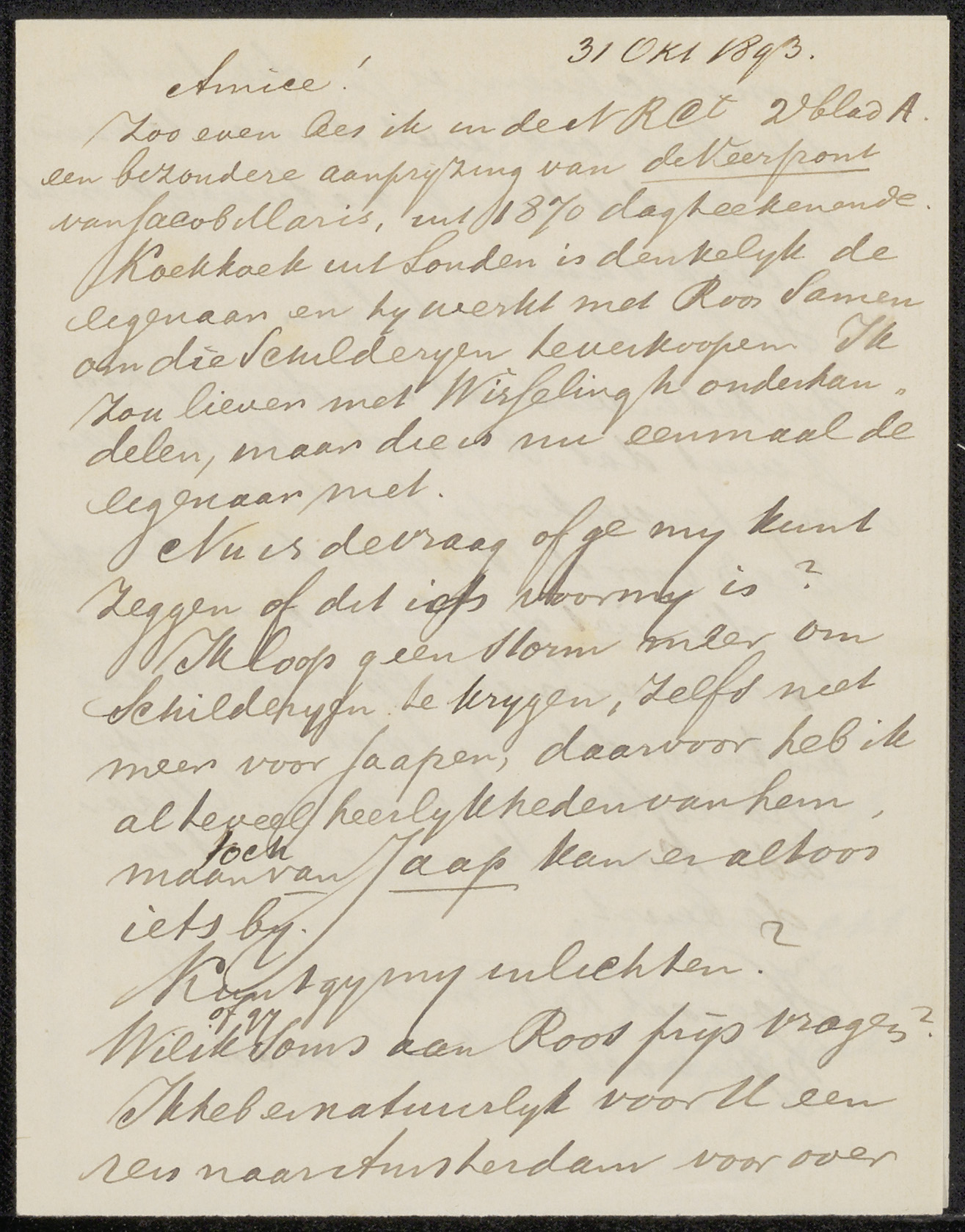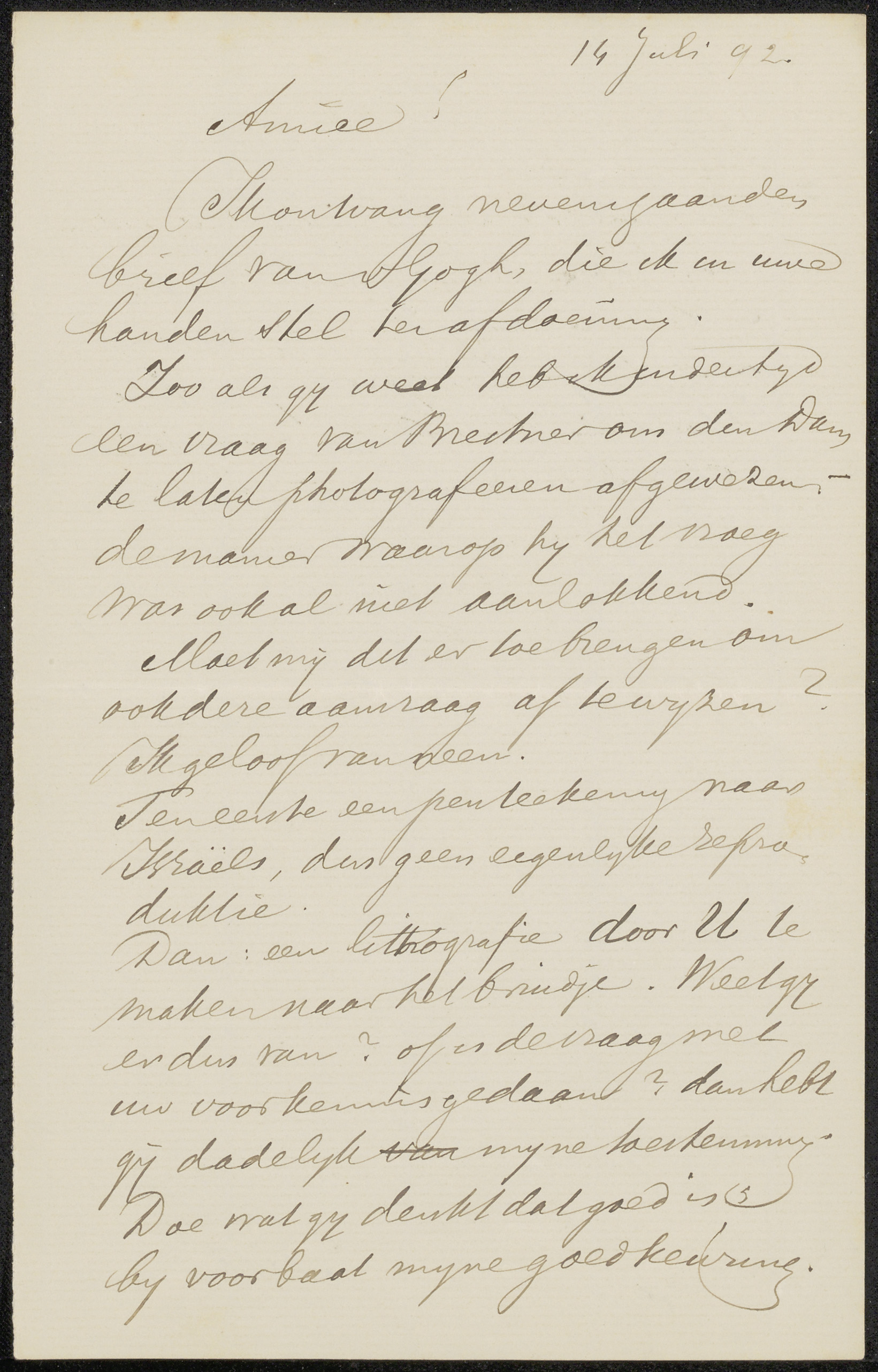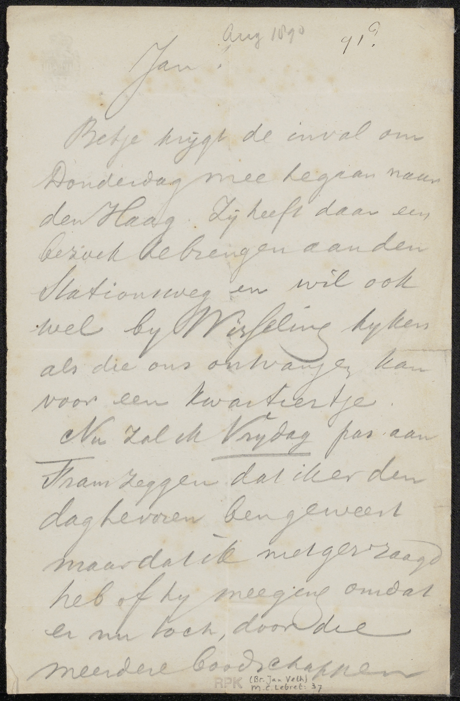 Brief aan Jan Veth