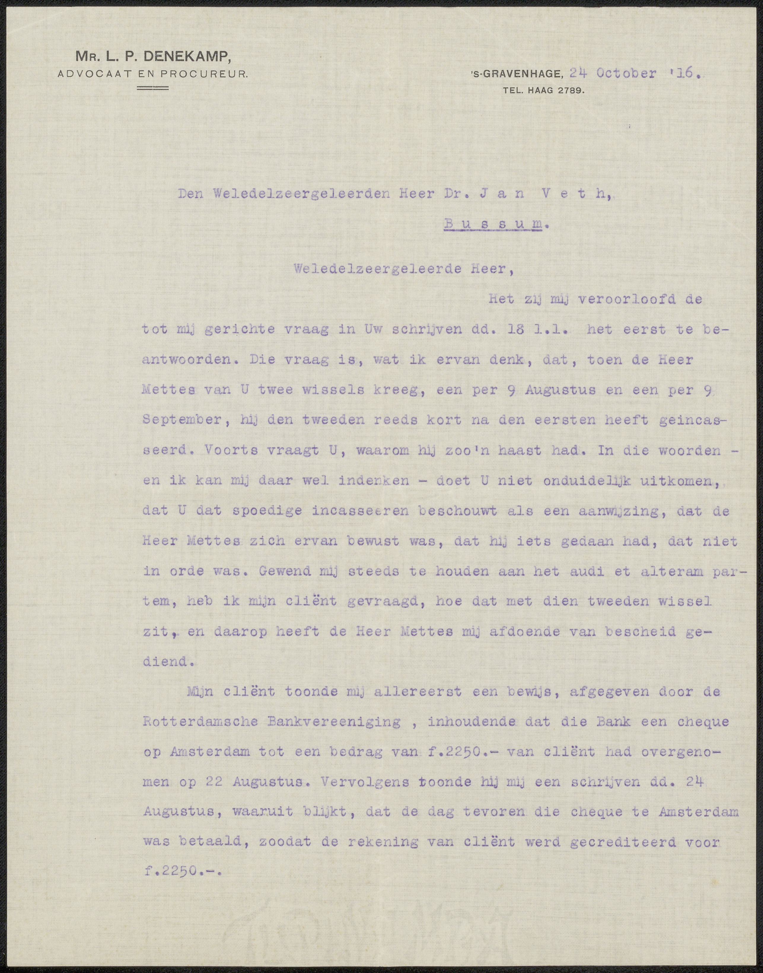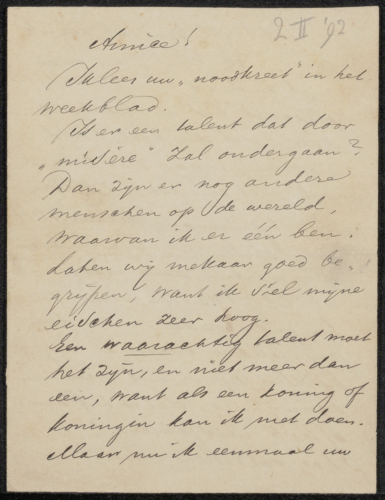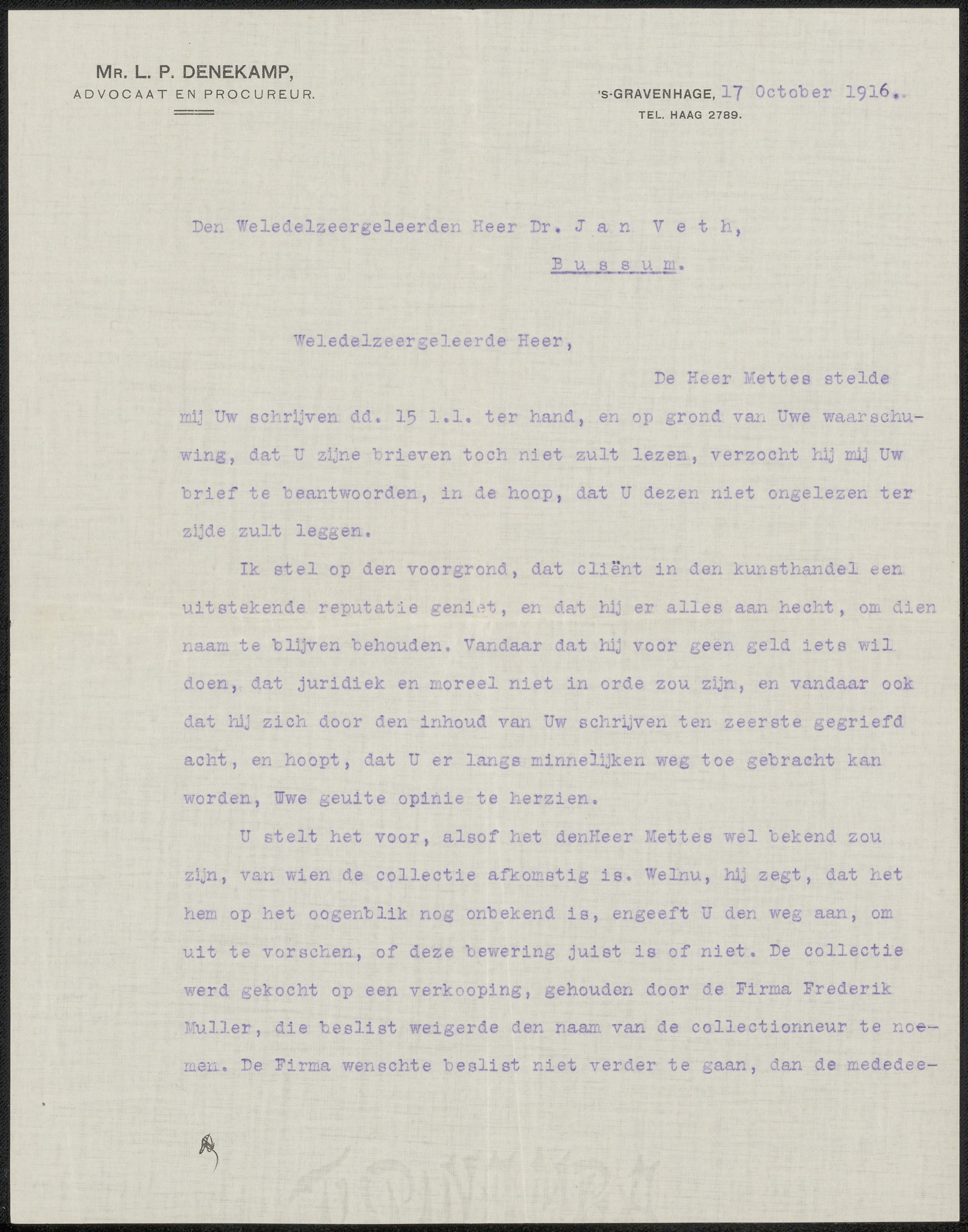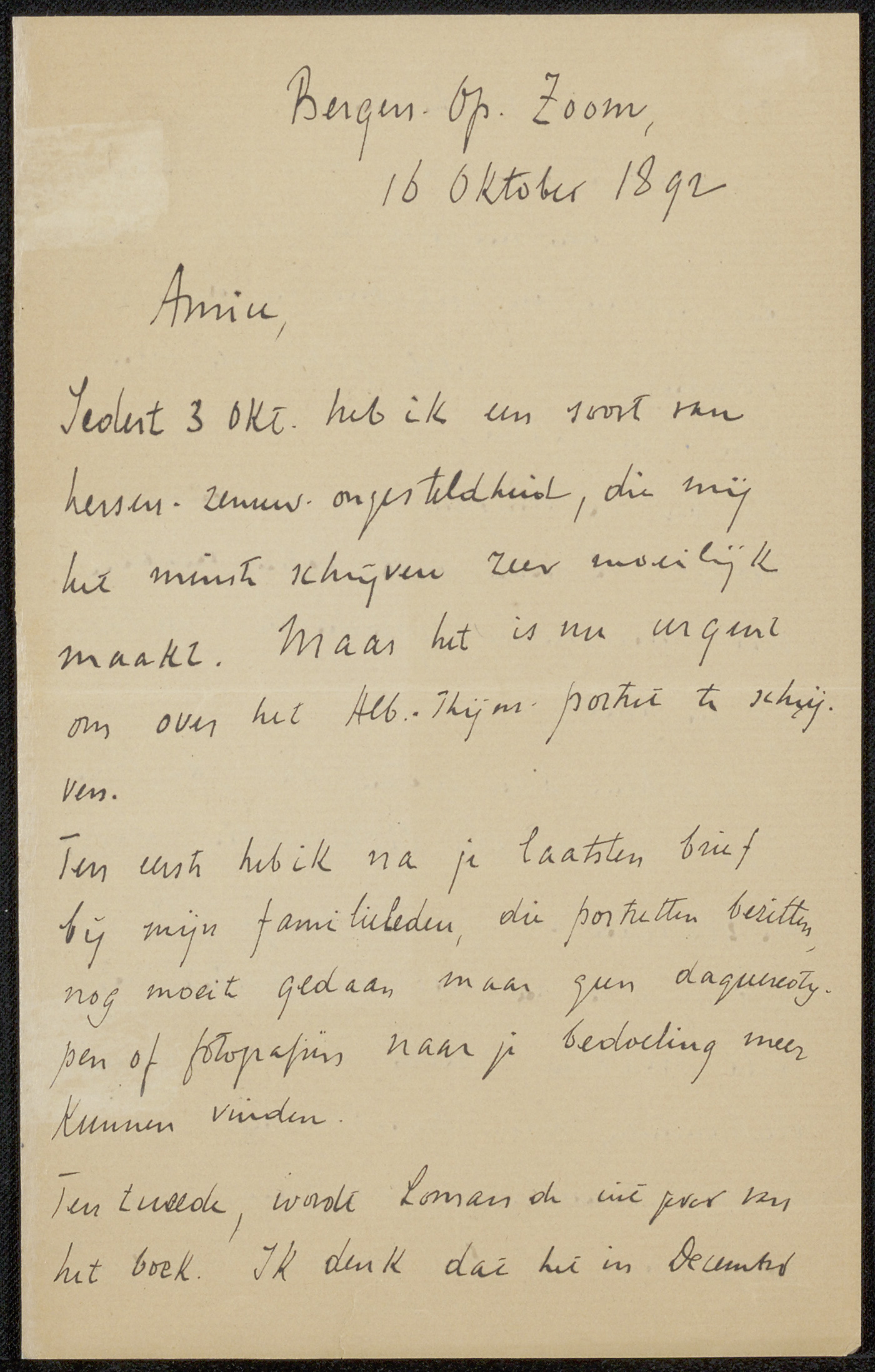 Brief aan Jan Veth