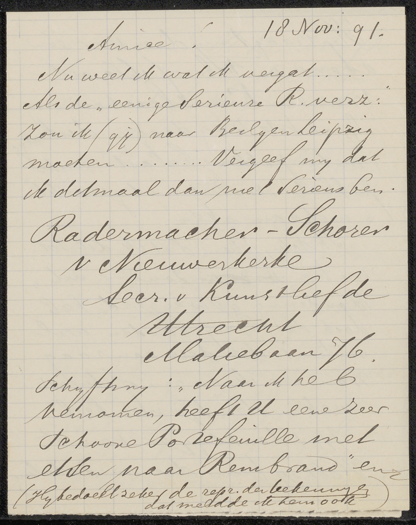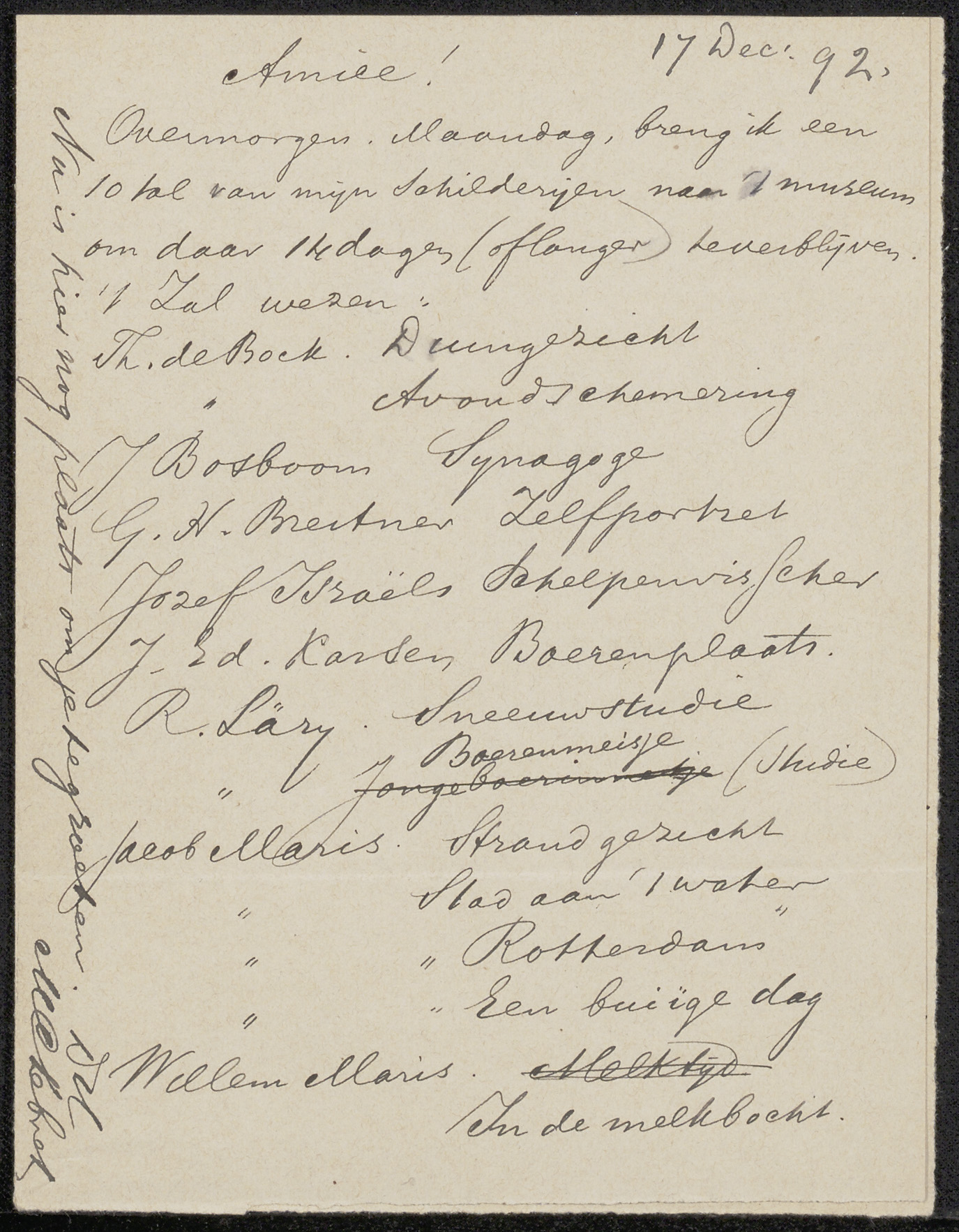 Briefkaart aan Jan Veth