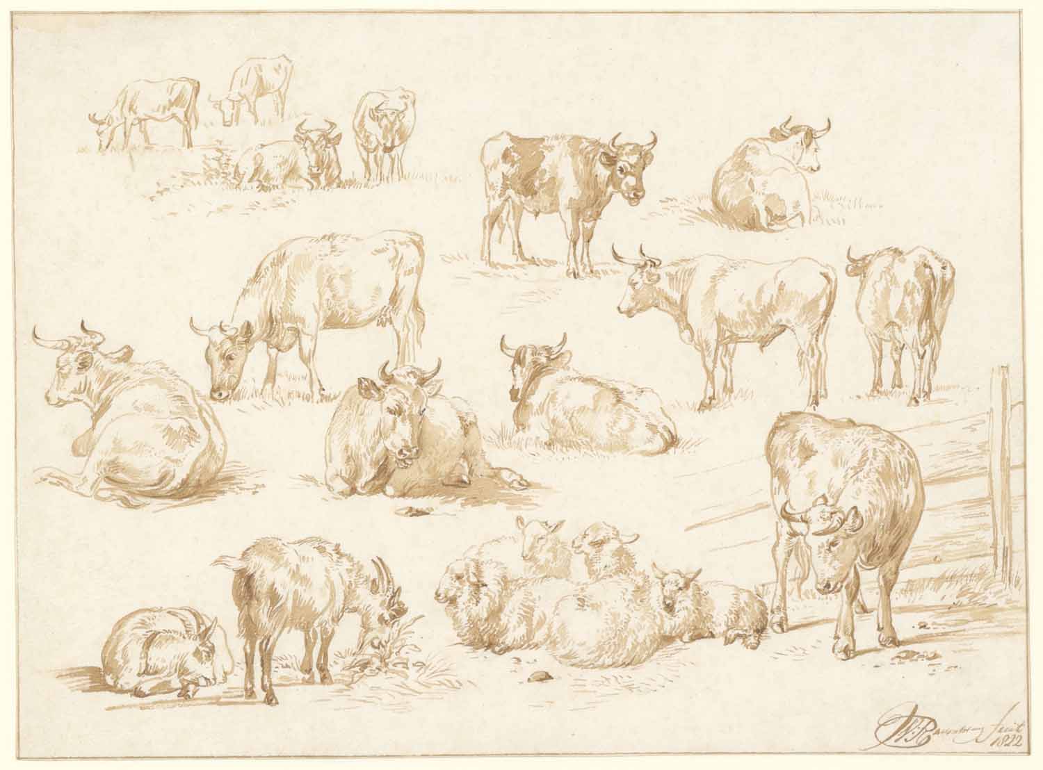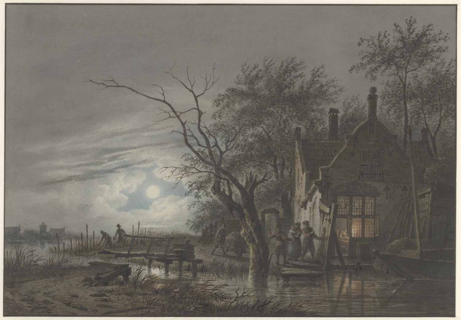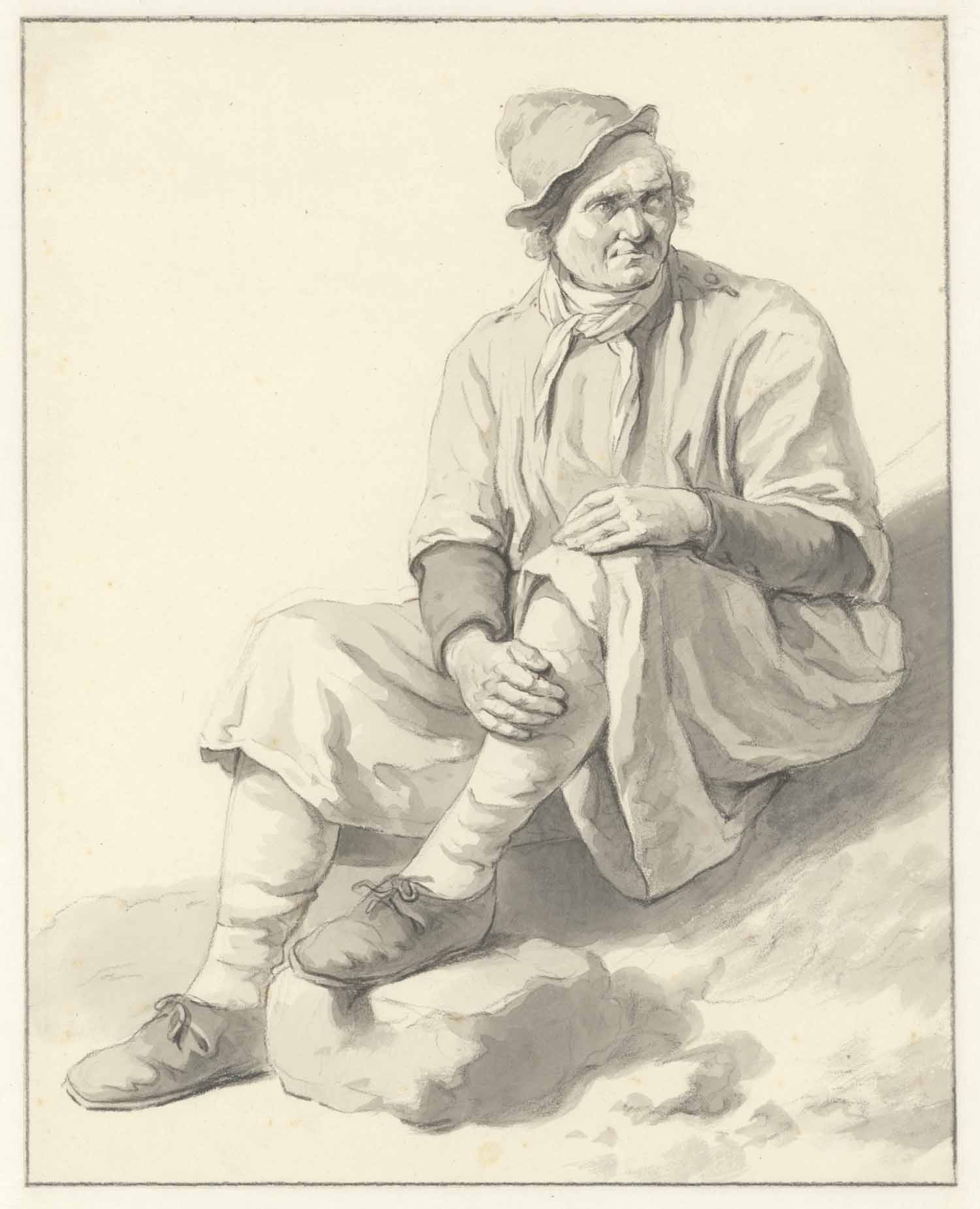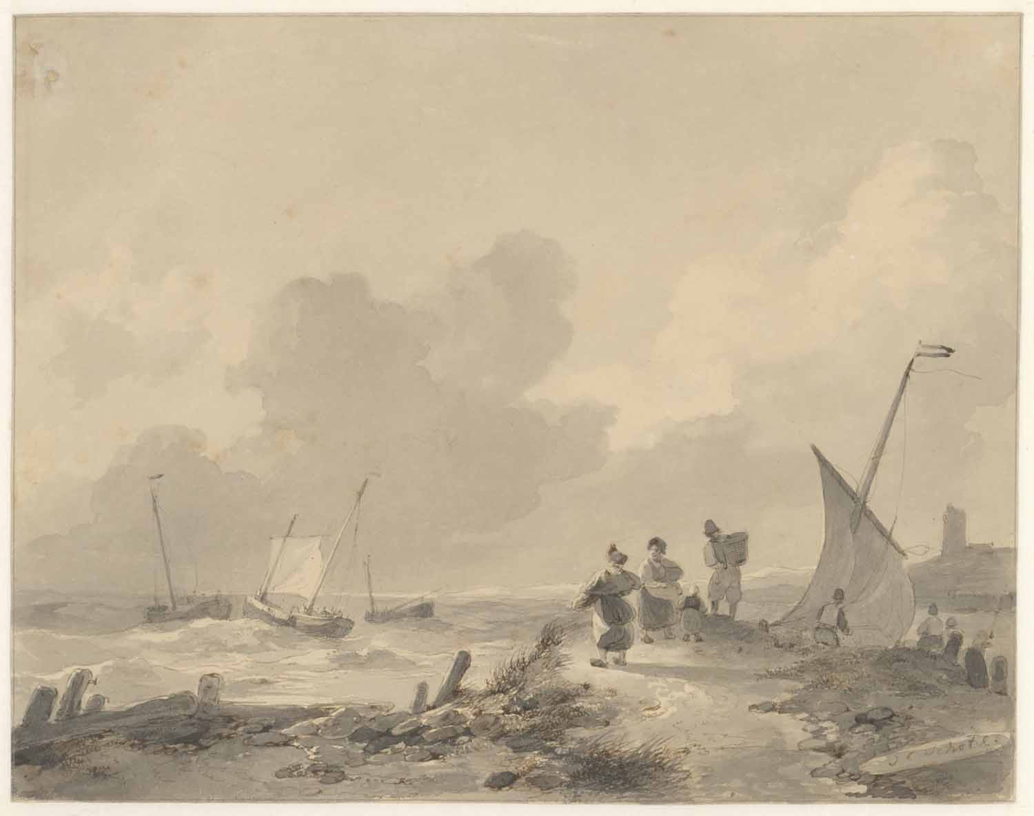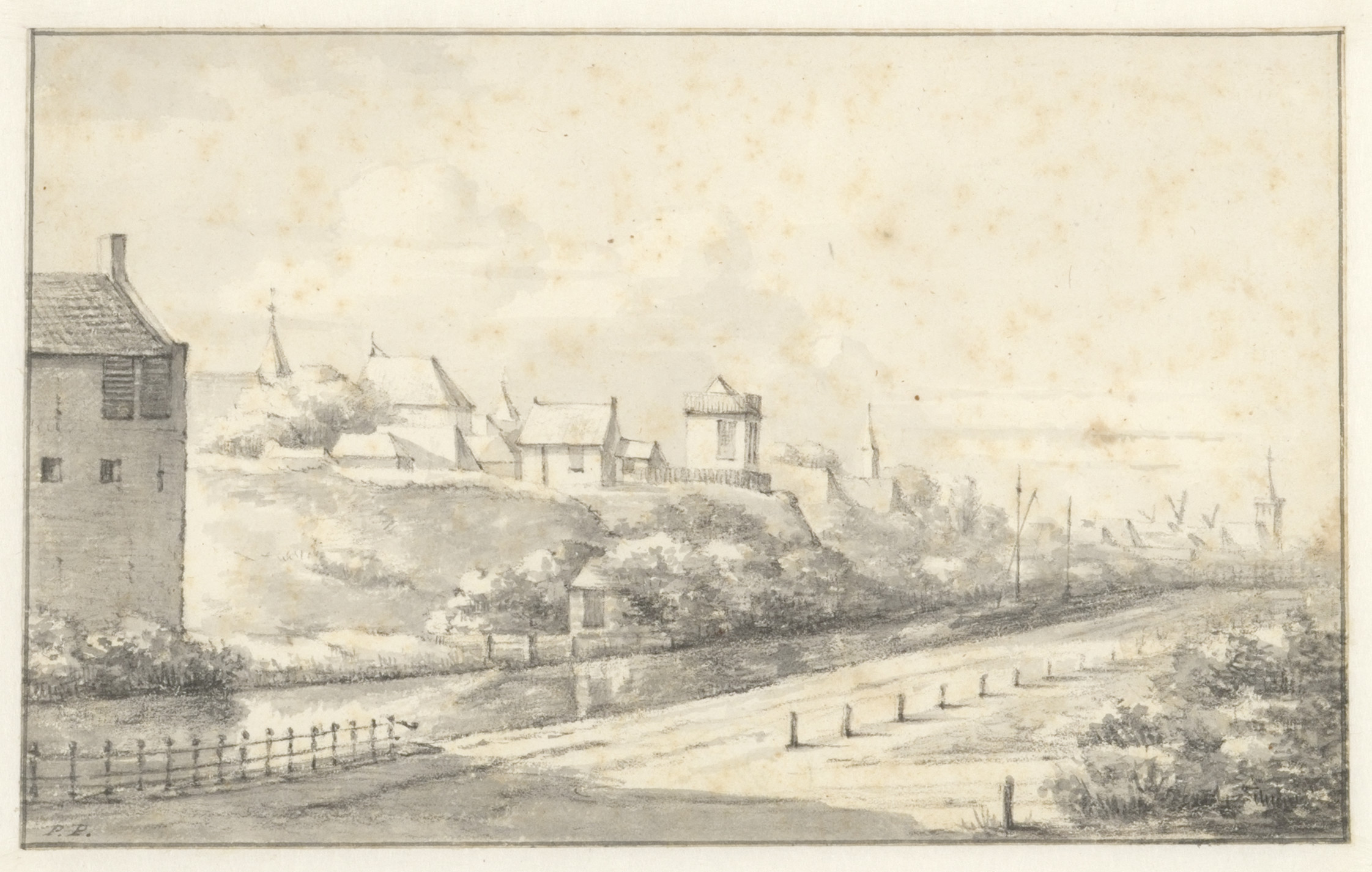 Eene vrouw bij eenen ezel in een duinachtig landschap