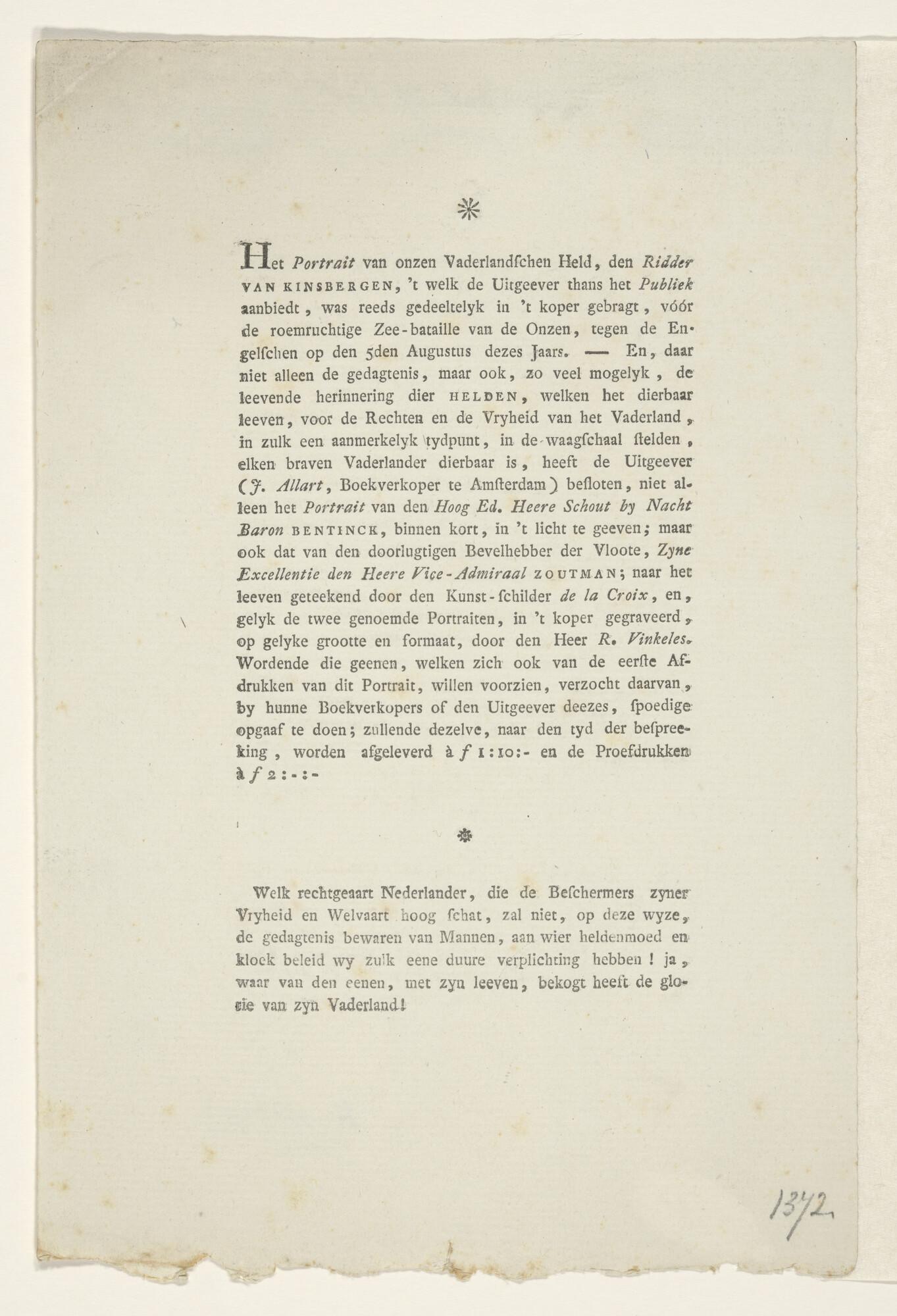 Portret van Admiraal van Kinsbergen