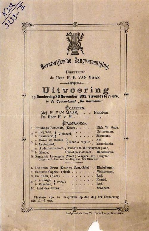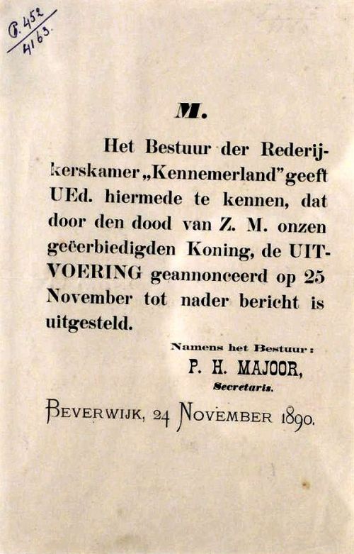 Uitnodiging Rederijkerskamer Kennemerland 1889