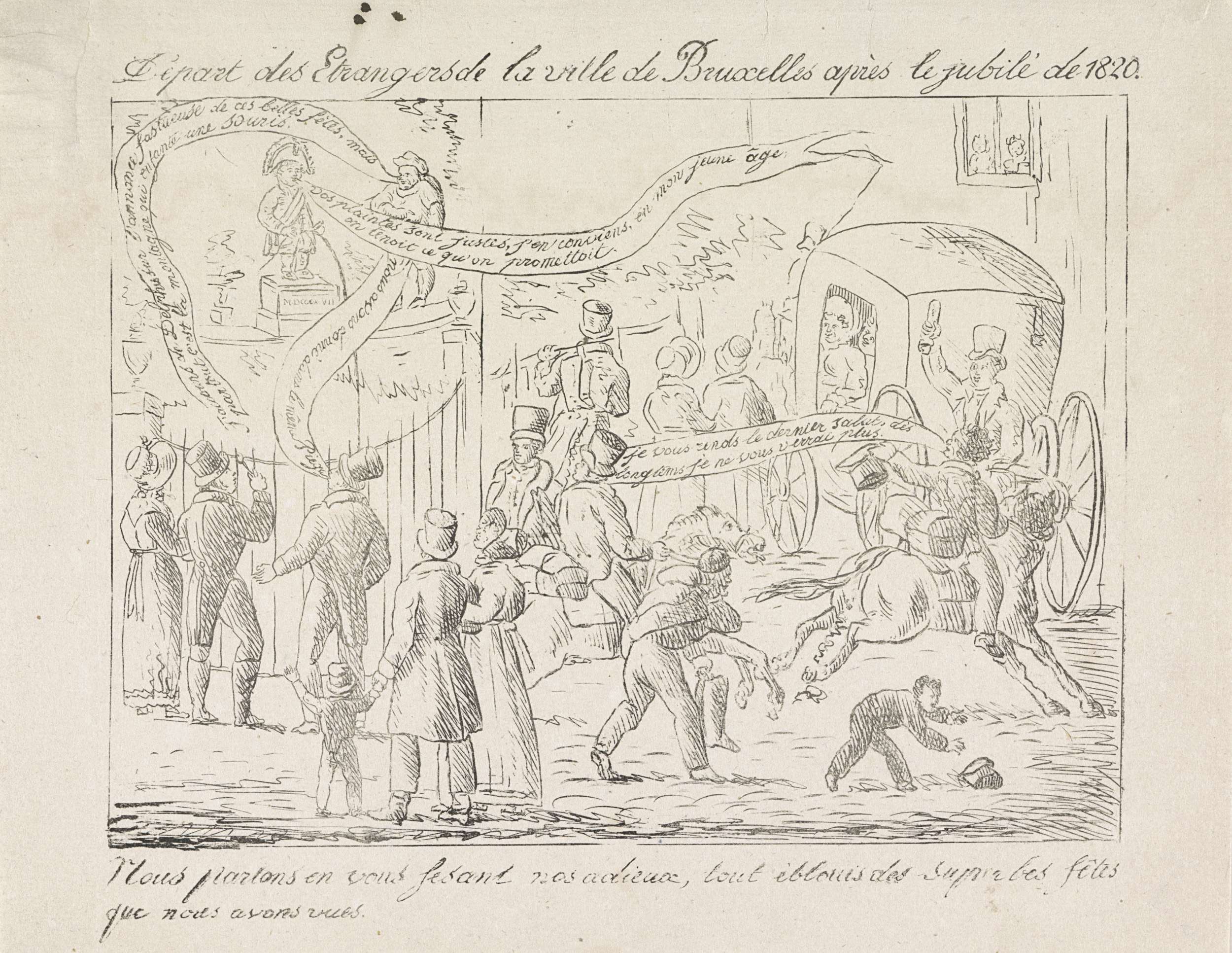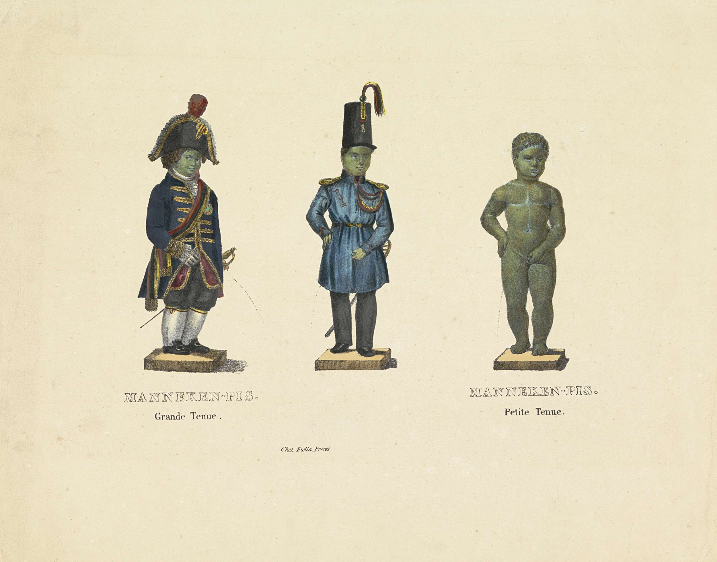 Manneken Pis in verschillende uitdossingen, 1817