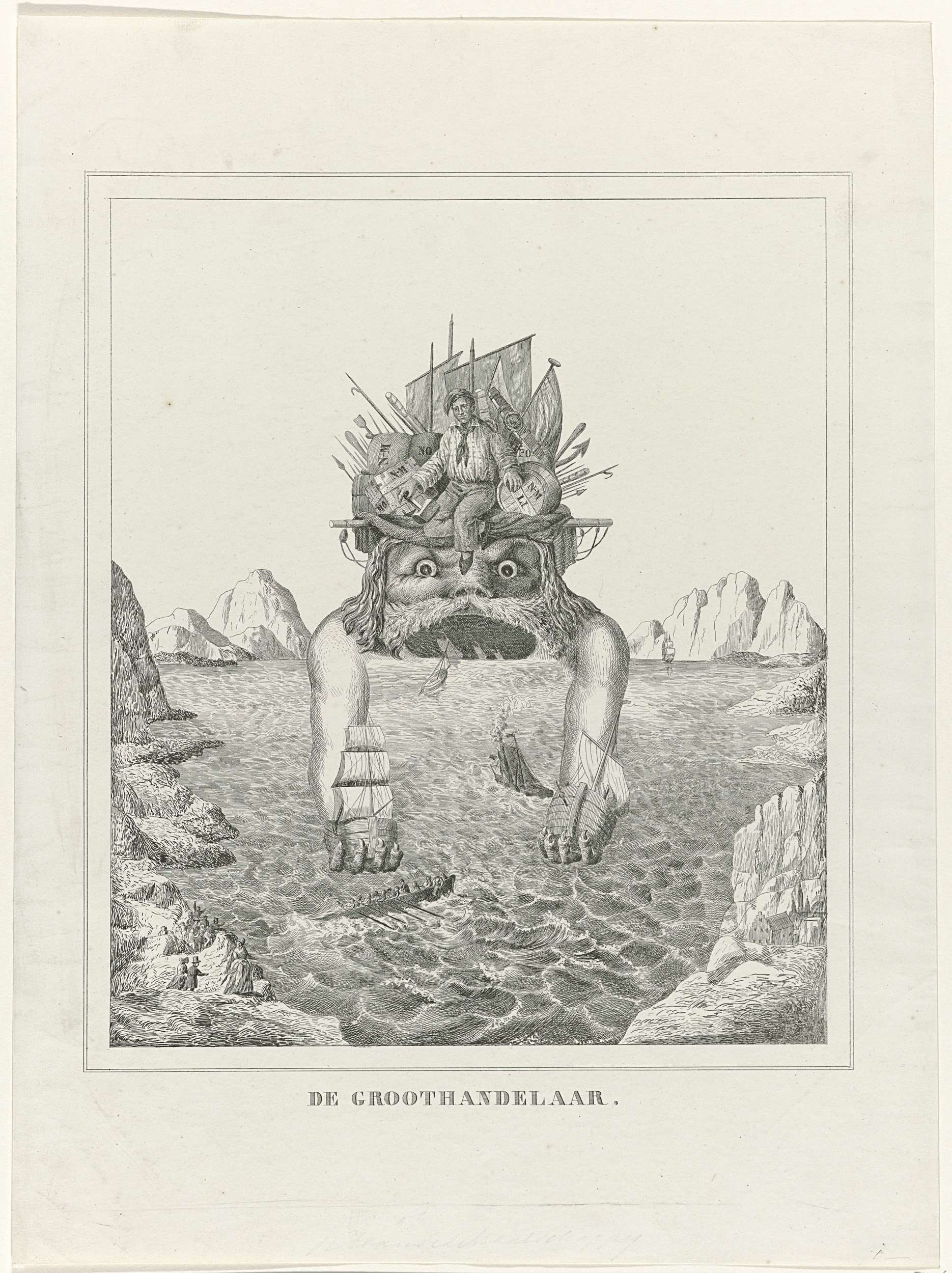 Spotprent op de oprichting van de Nederlandse Handel...