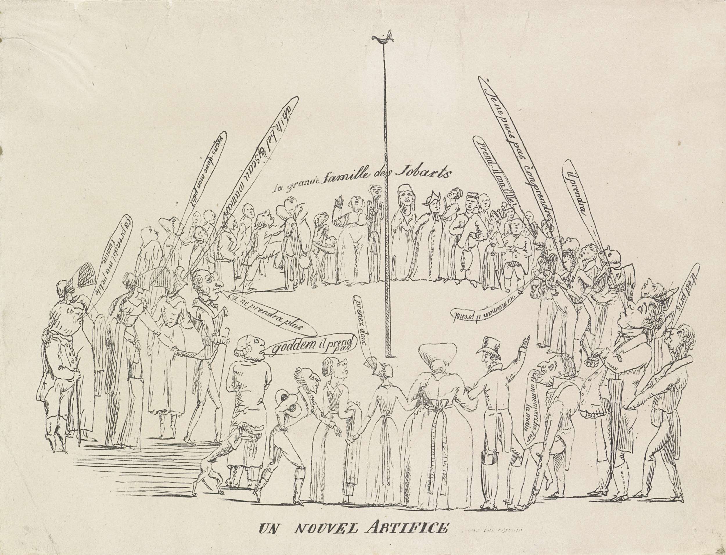 Spotprent op het mislukken van het vuurwerk bij de v...