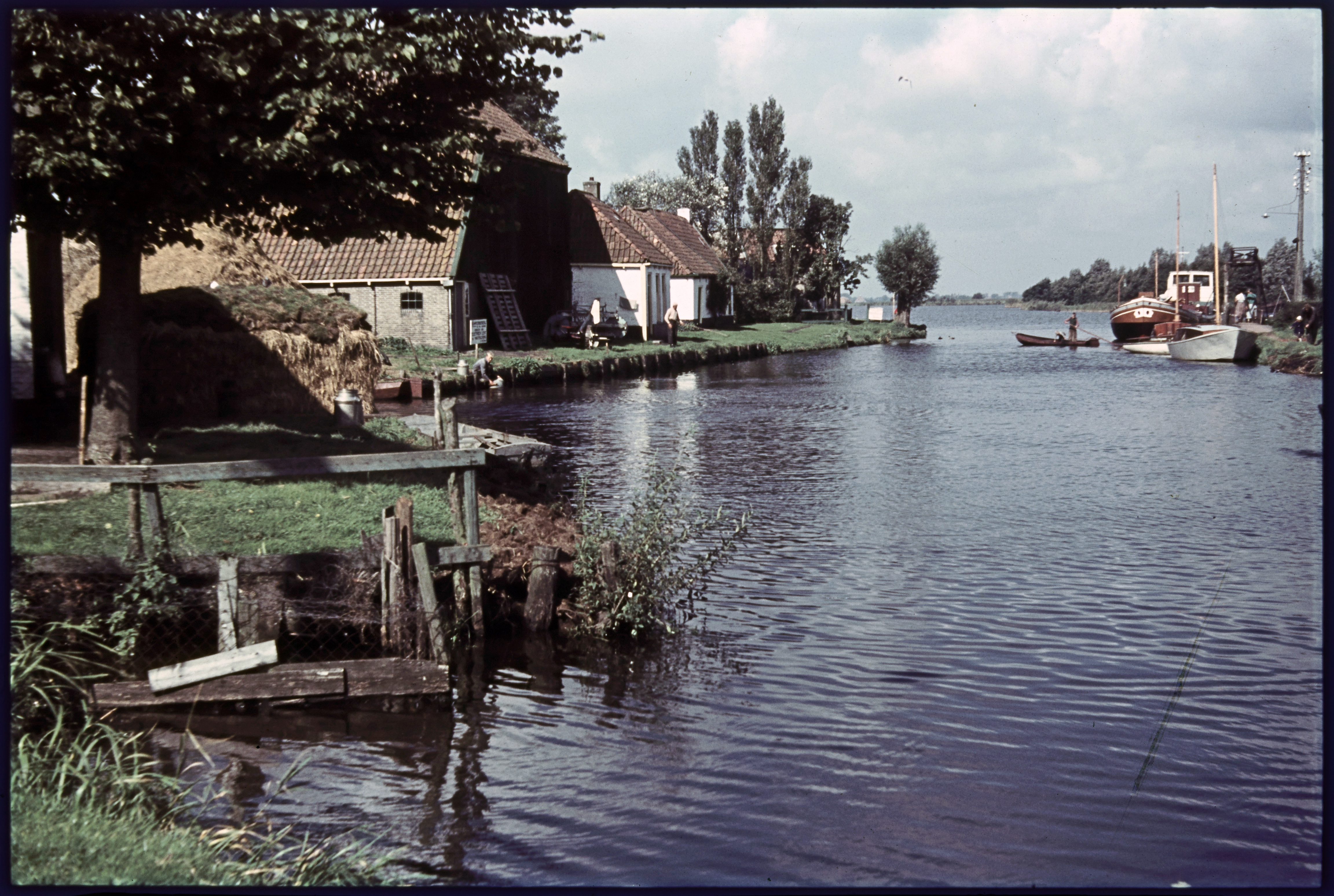 Lege vaart met huizen en boerderijen aan weerszijden...