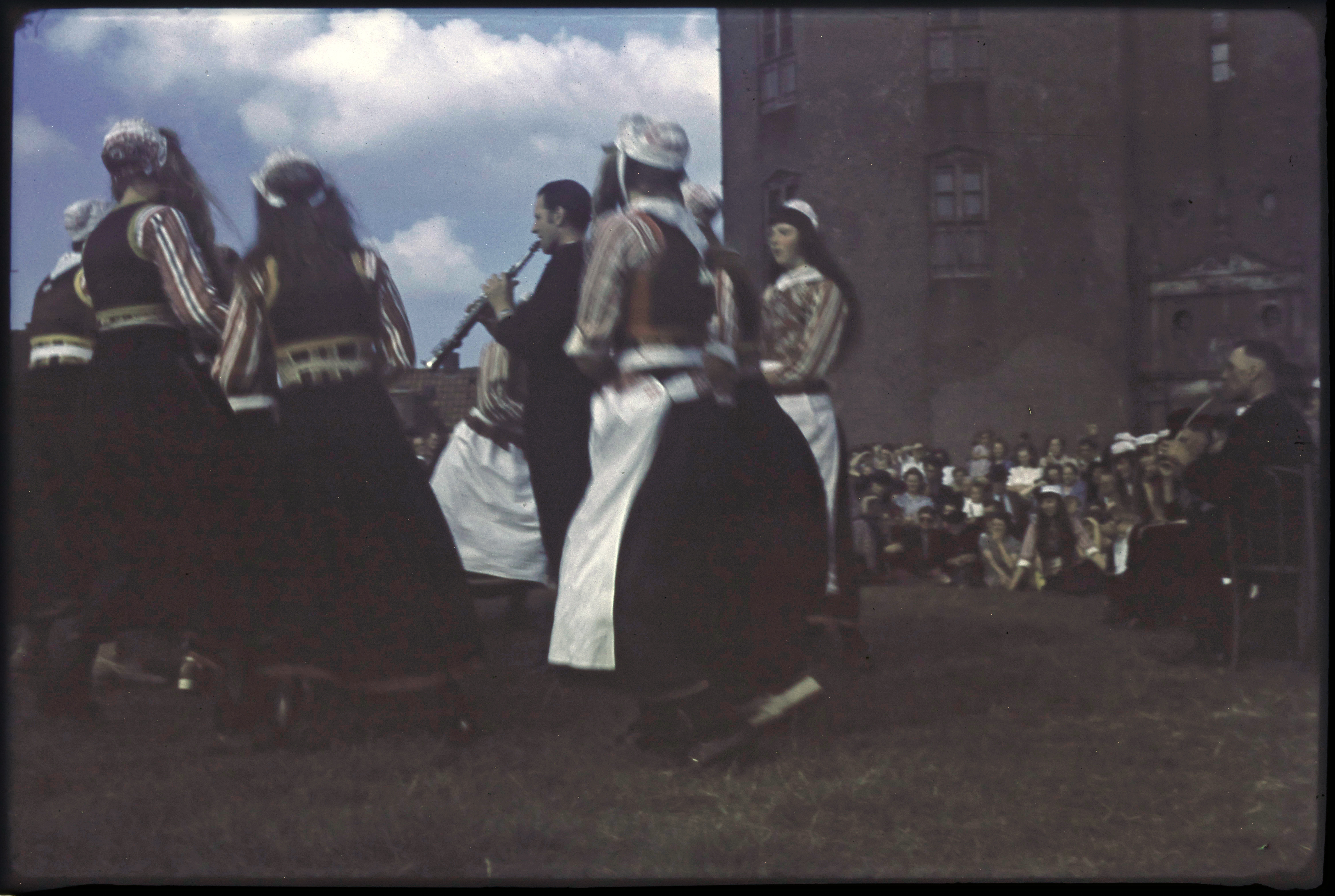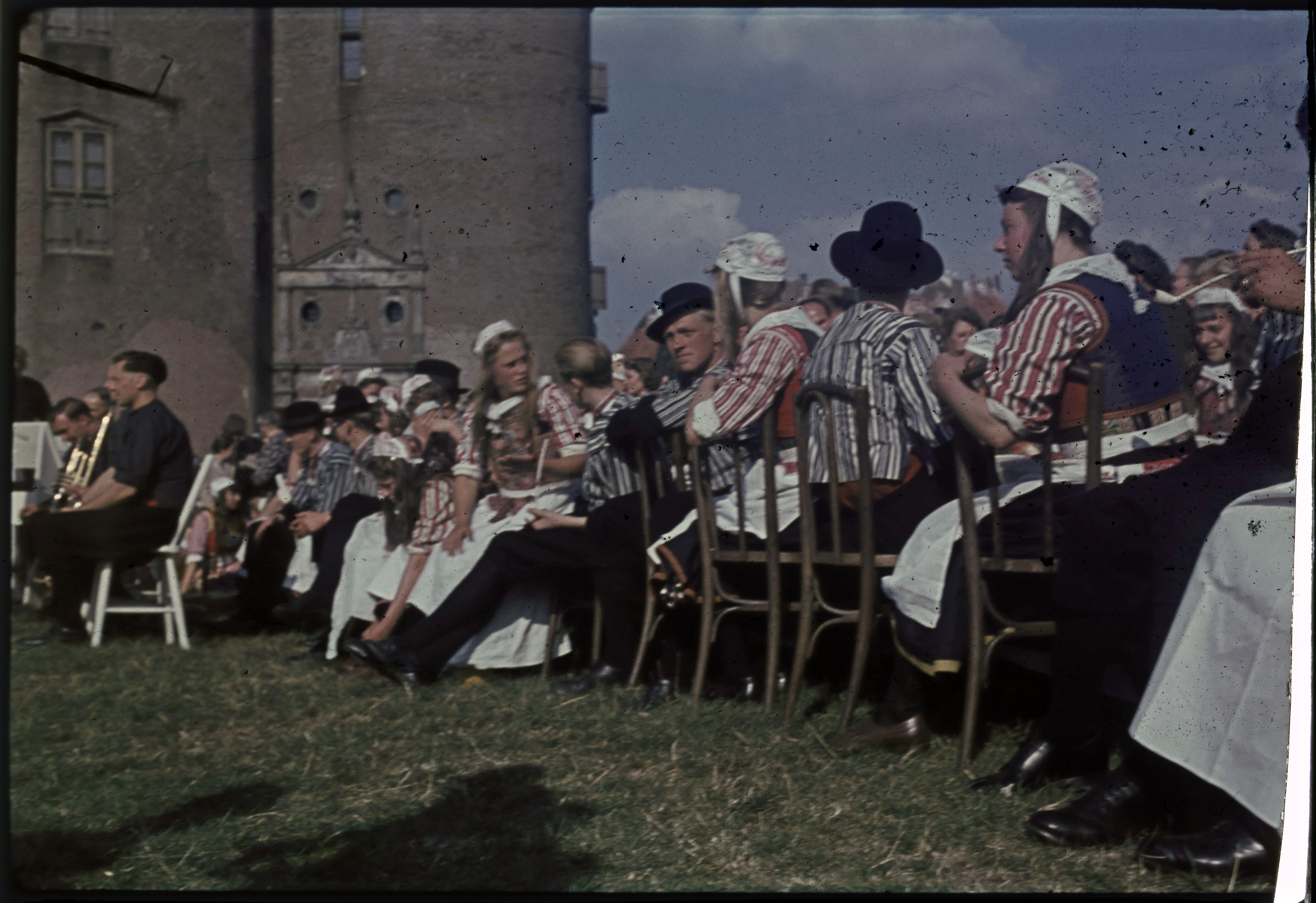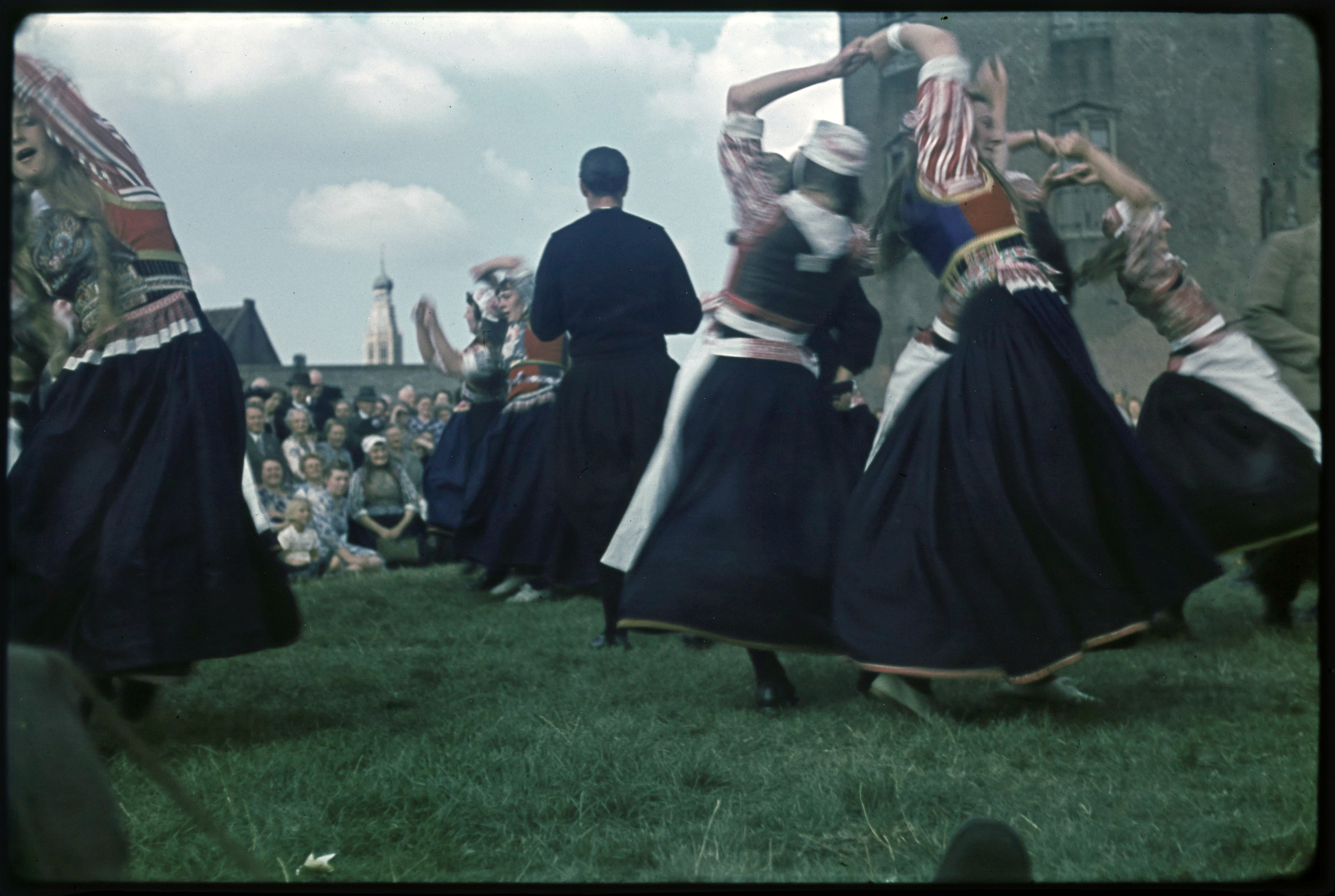 Menigte in klederdracht op een boot tijdens de Spake...