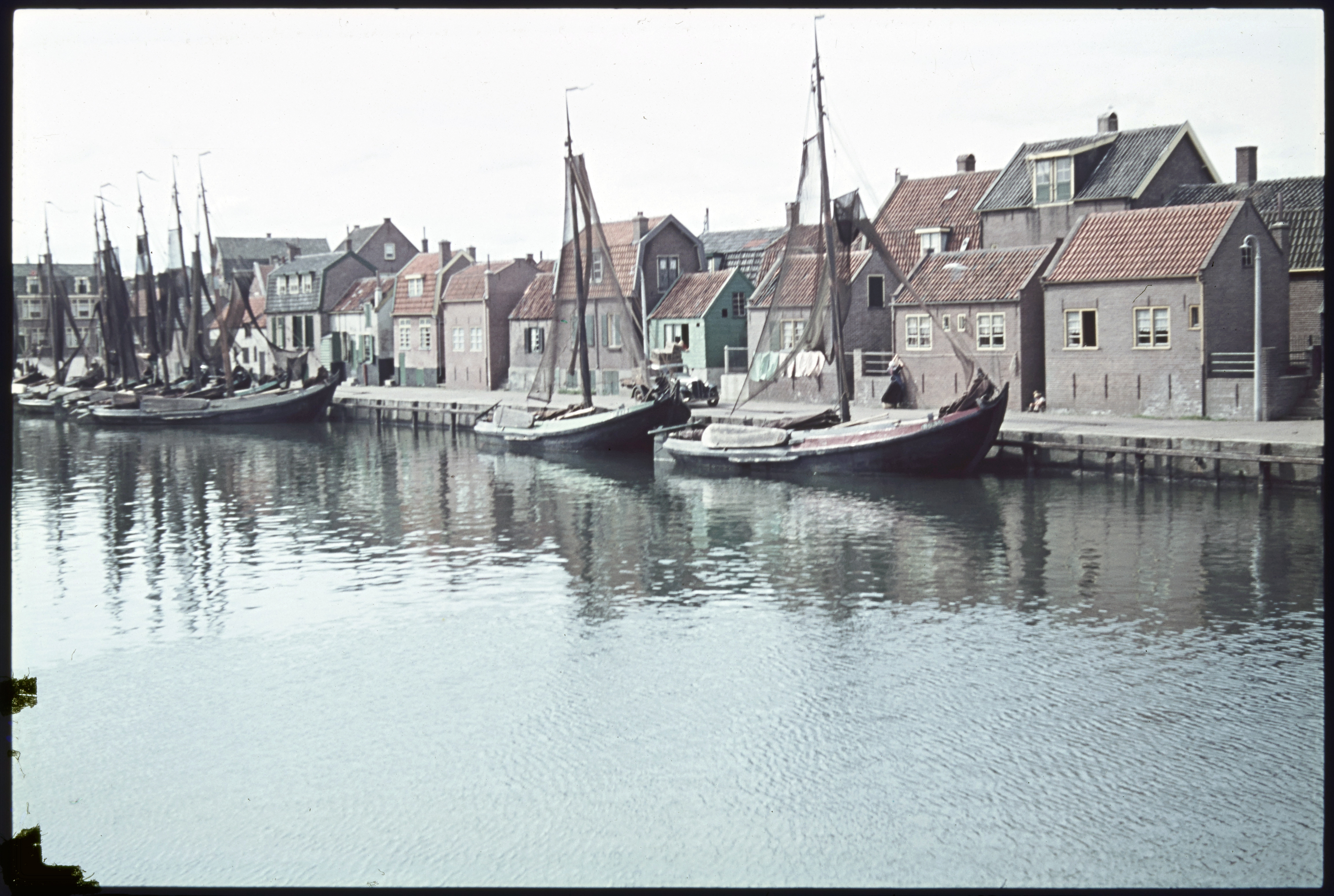 Haven met botters en dwarskuil in de mast