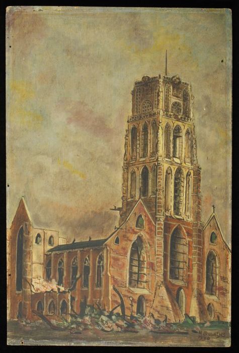 Stadsgezicht Rotterdam: St. Laurenskerk na het bomba...
