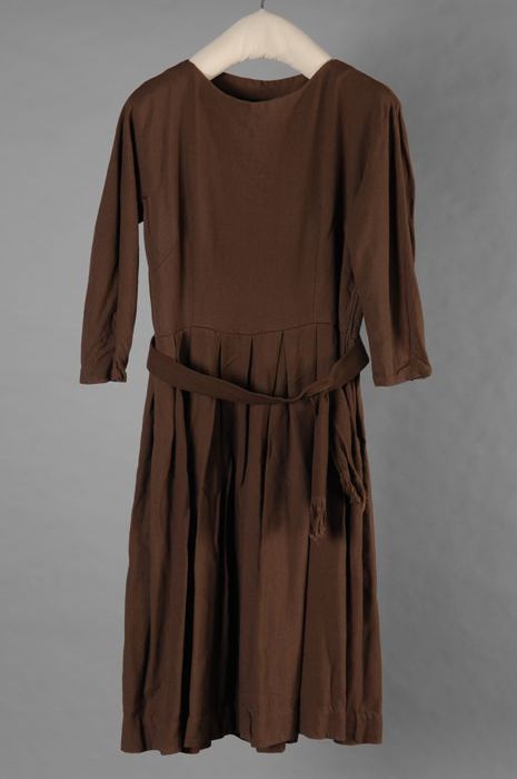 Damesjapon van bruine keperstof, getailleerd lijfje,...