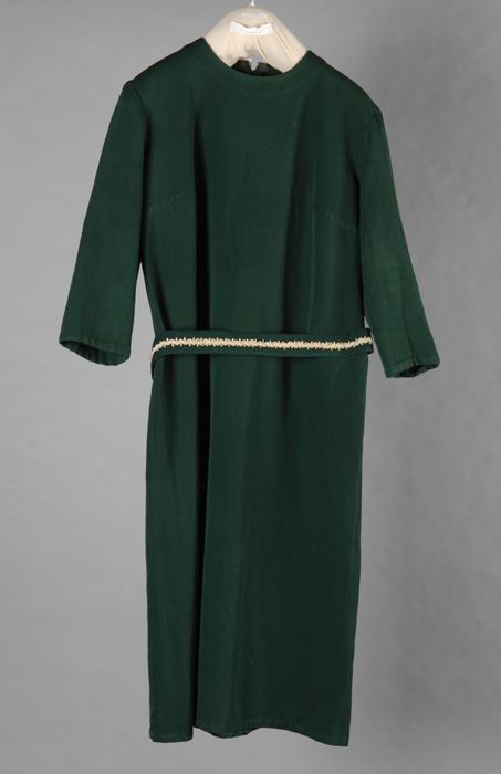 Rechte damesjapon van donkergroene stof, driekwartmo...