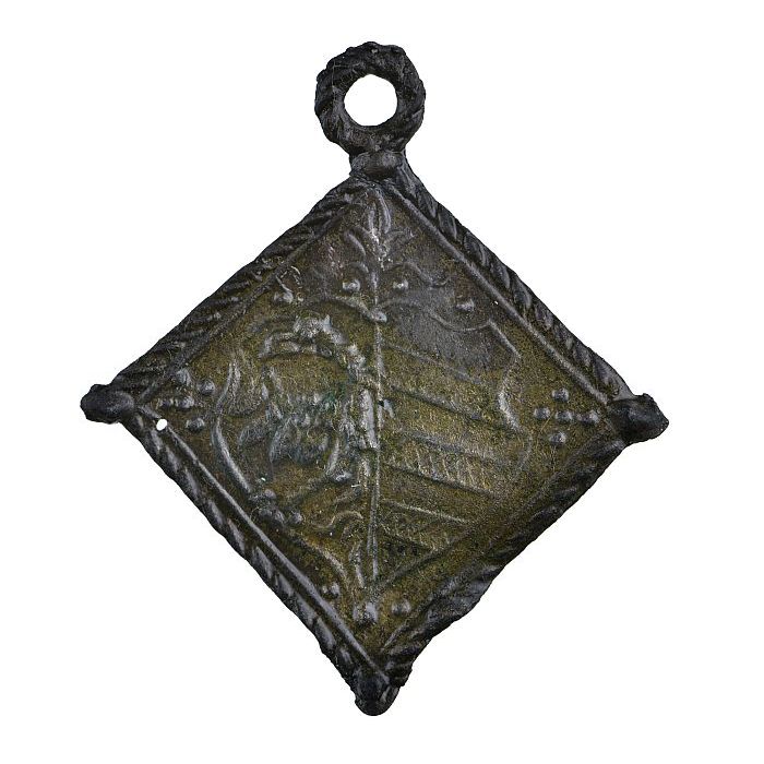 Scapuliermedaille met afbeelding Lam Gods en tekst
