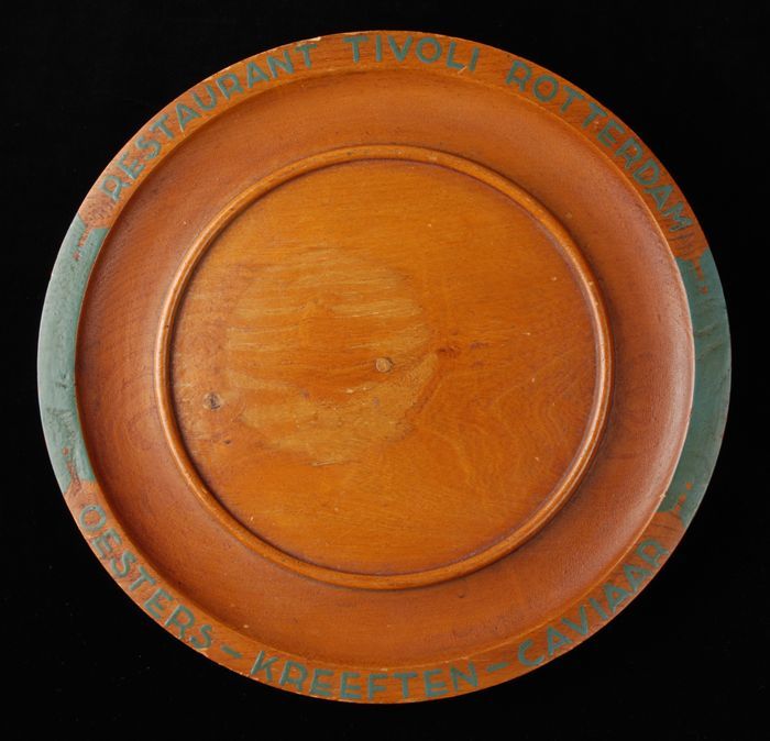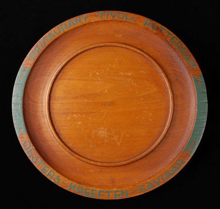 Houten bord met in groene verf "RESTAURANT TIVOLI RO...