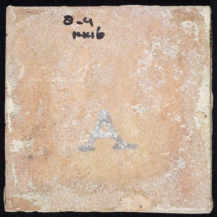 Figuurtegel, fluitspelende man, hoekmotief ossenkop