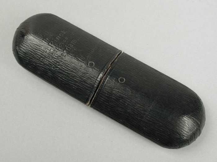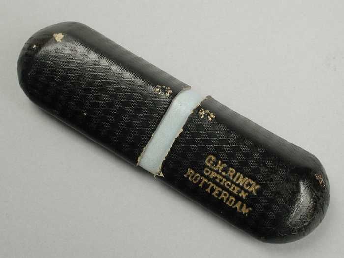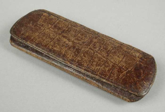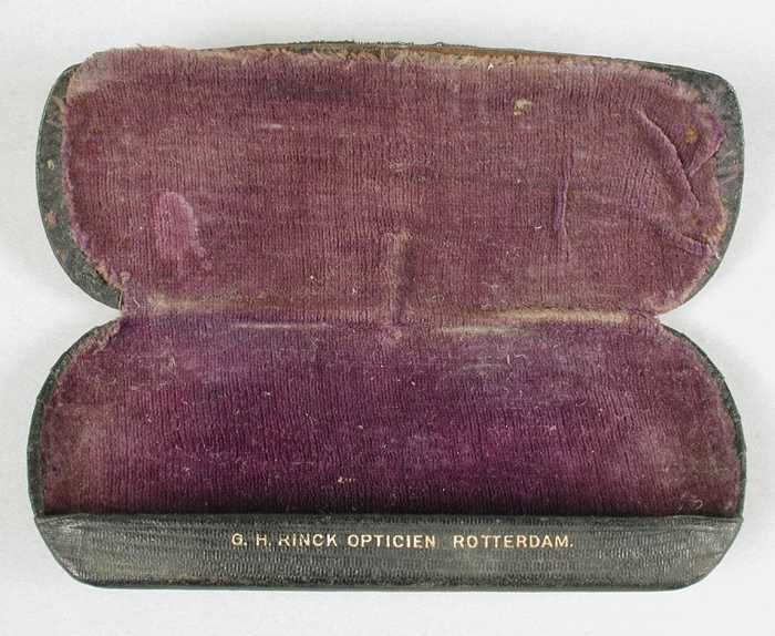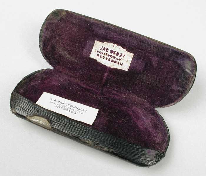 Brillenkoker van metaal met zwart wasdoek (?) beklee...