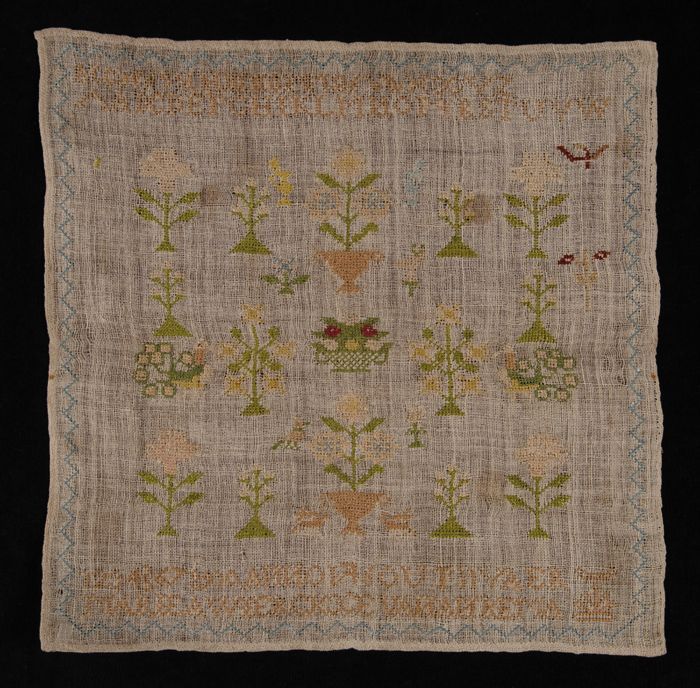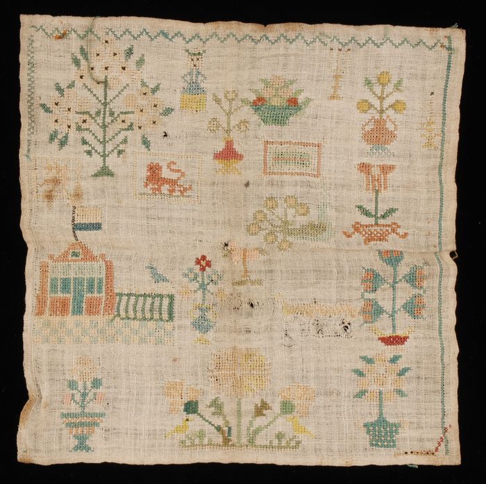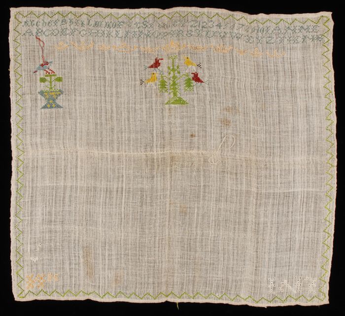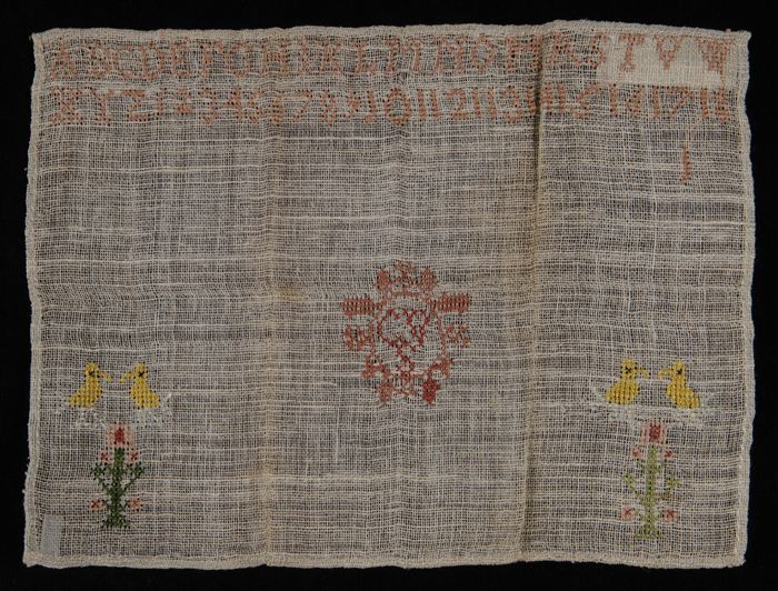 Kleine onvoltooide merklap gewerkt in kruissteek in ...