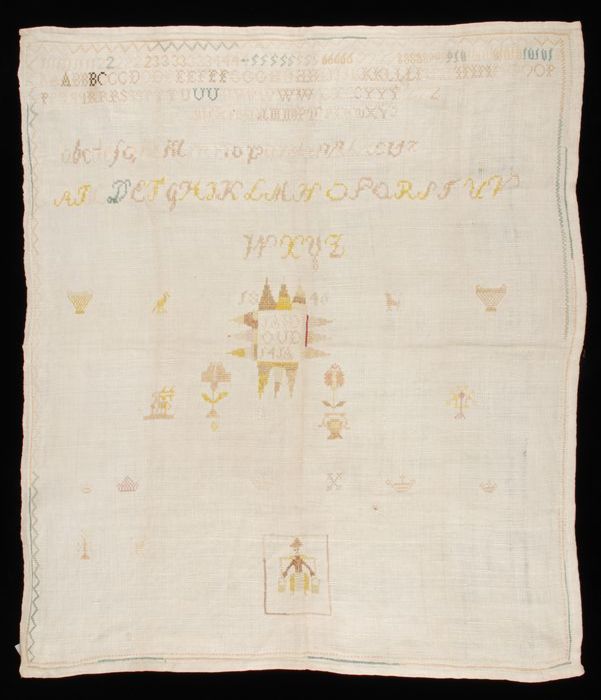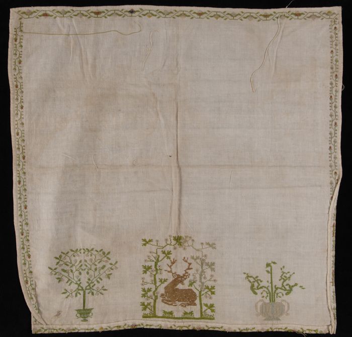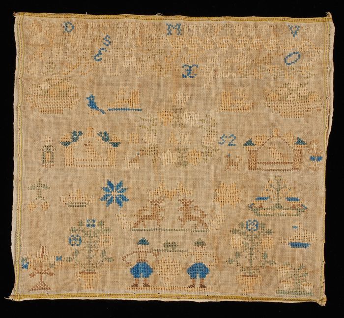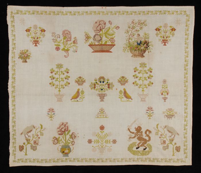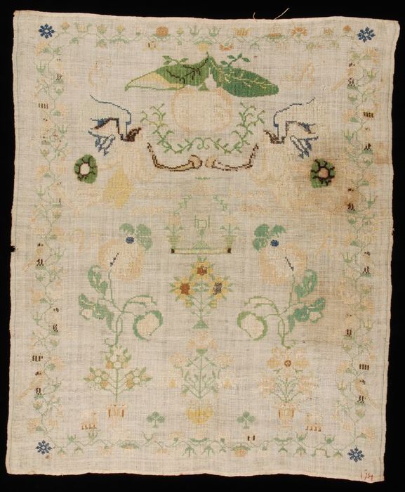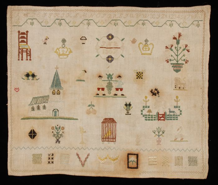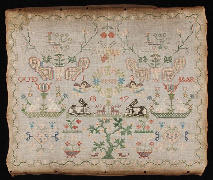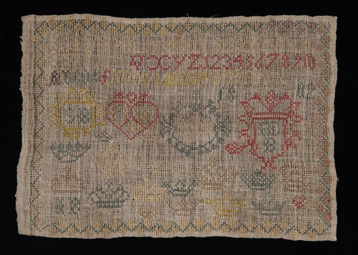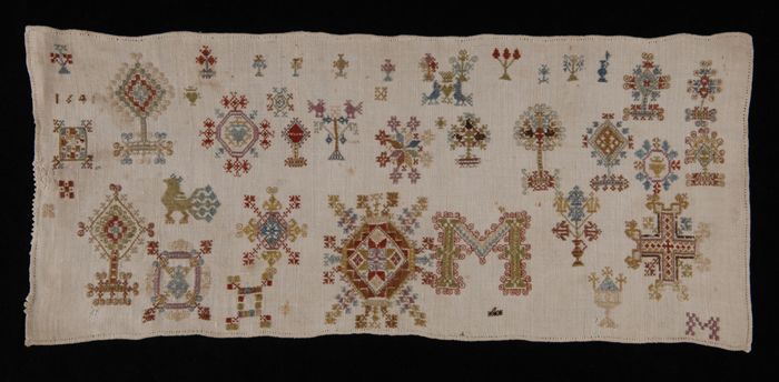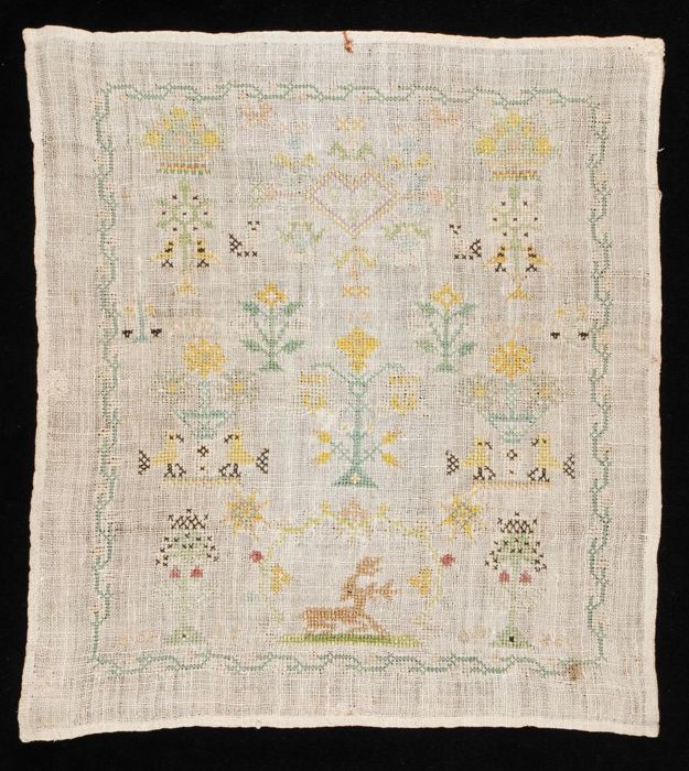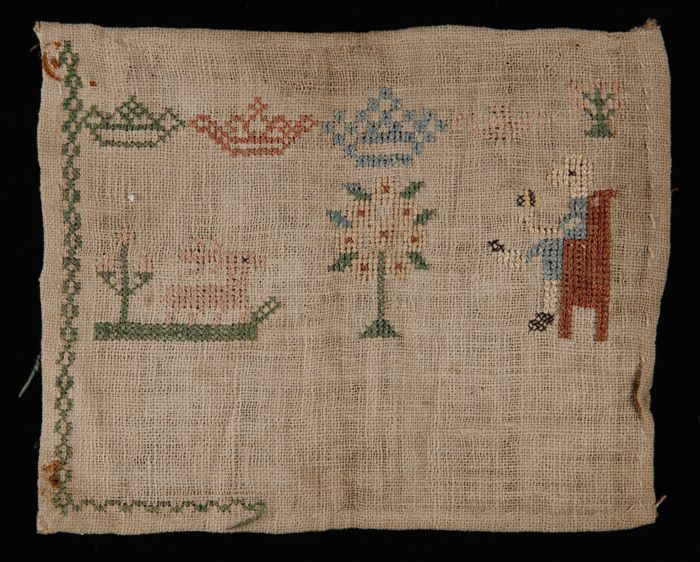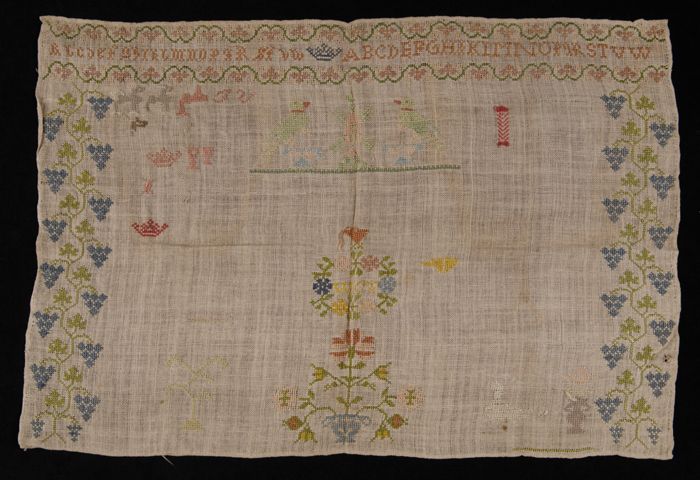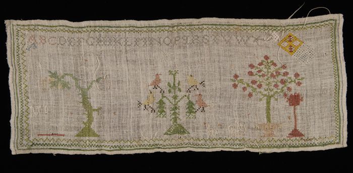 Onvoltooide lange merklap gewerkt in kruissteek en k...