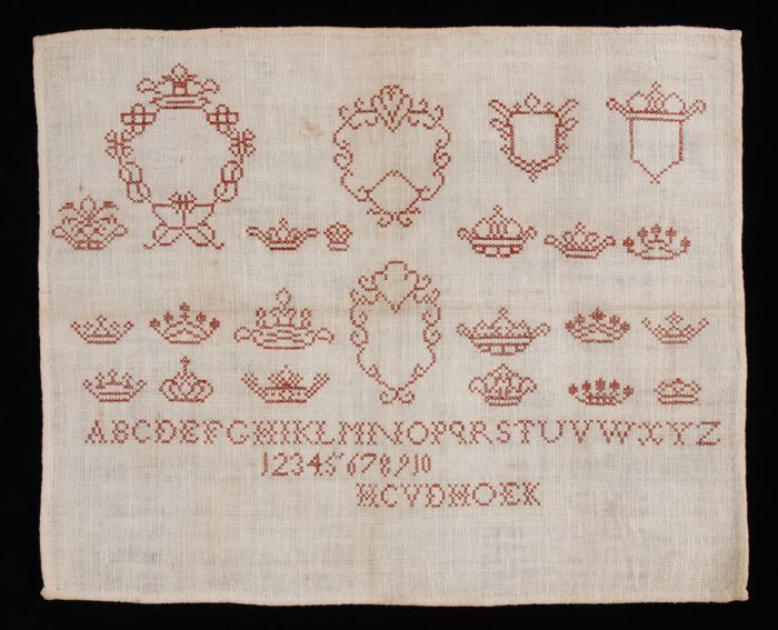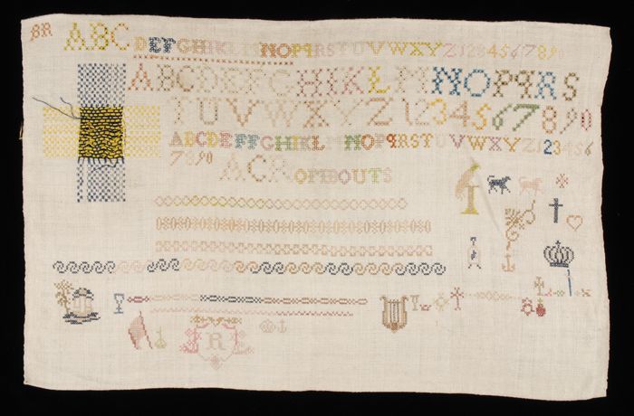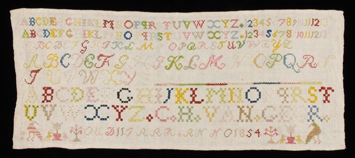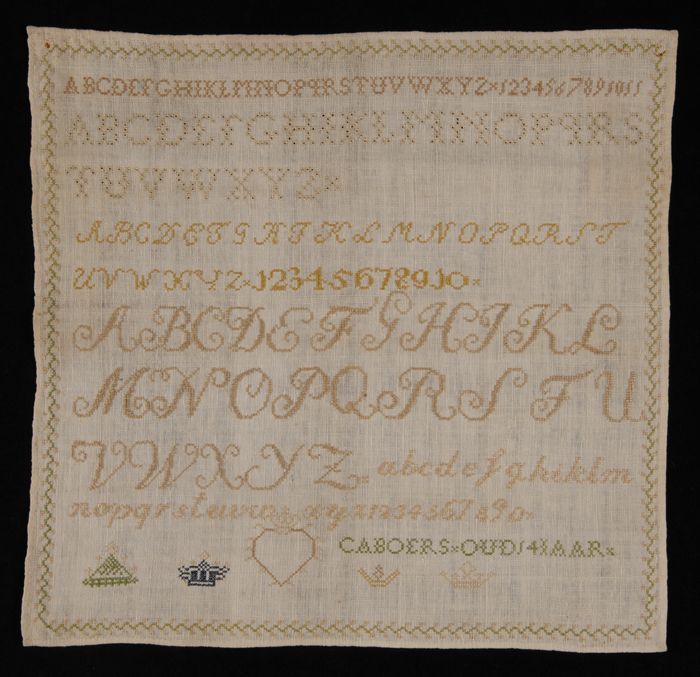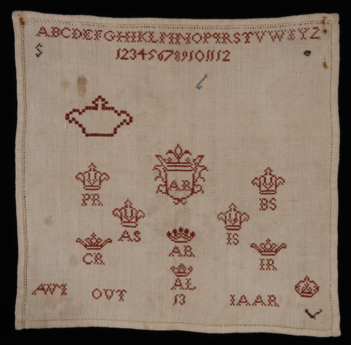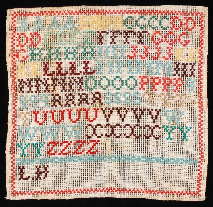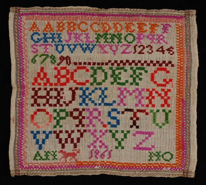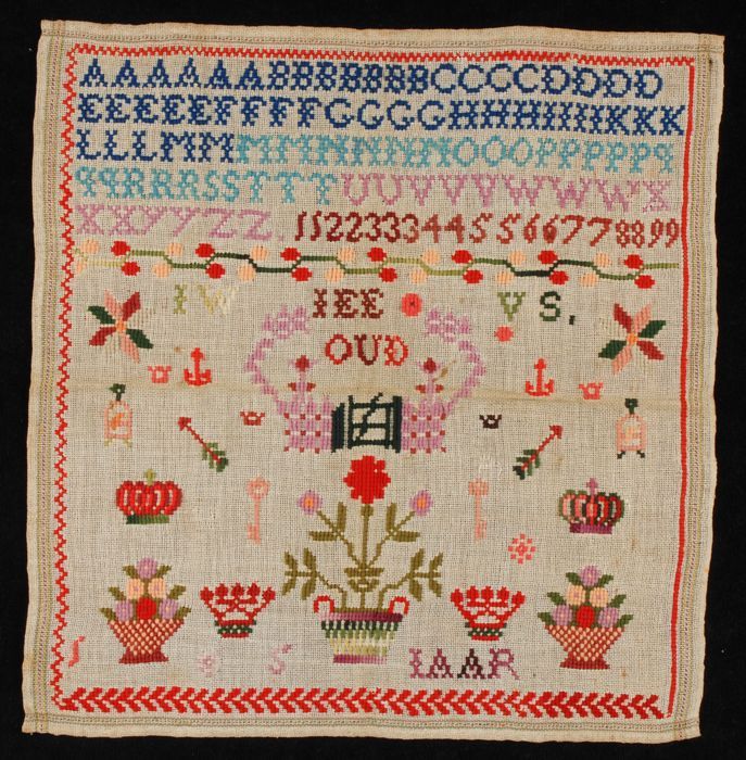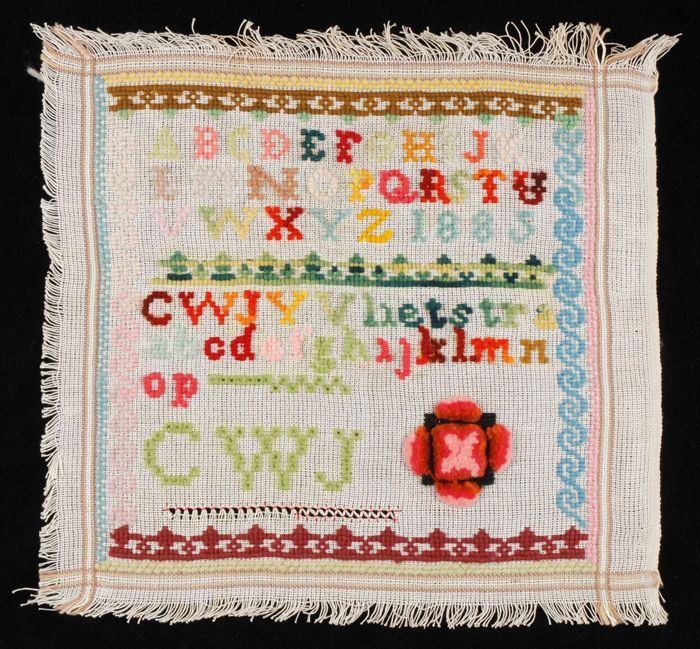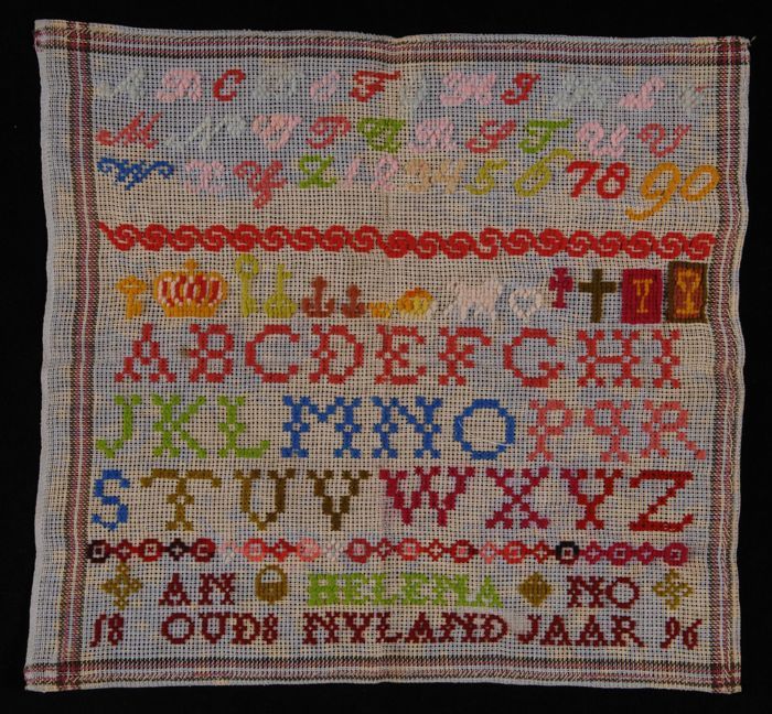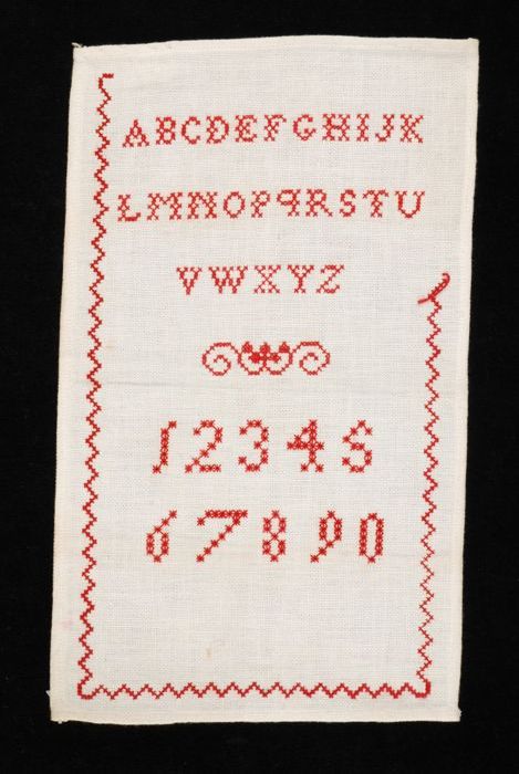 Brede merklap of letterlap gewerkt in kruissteek in ...