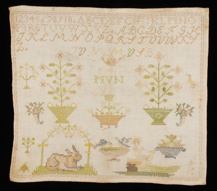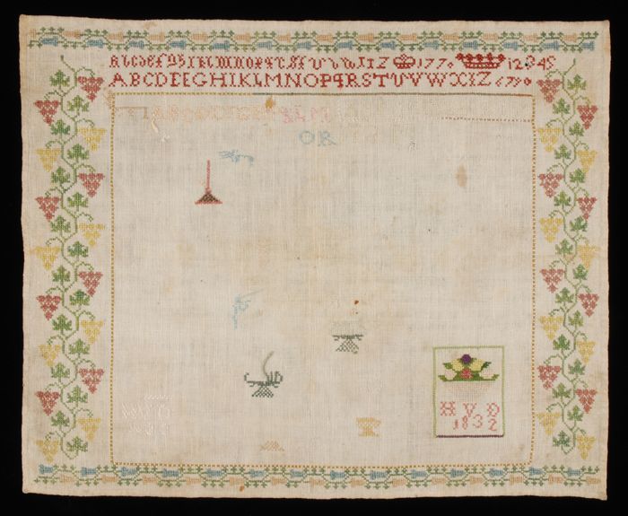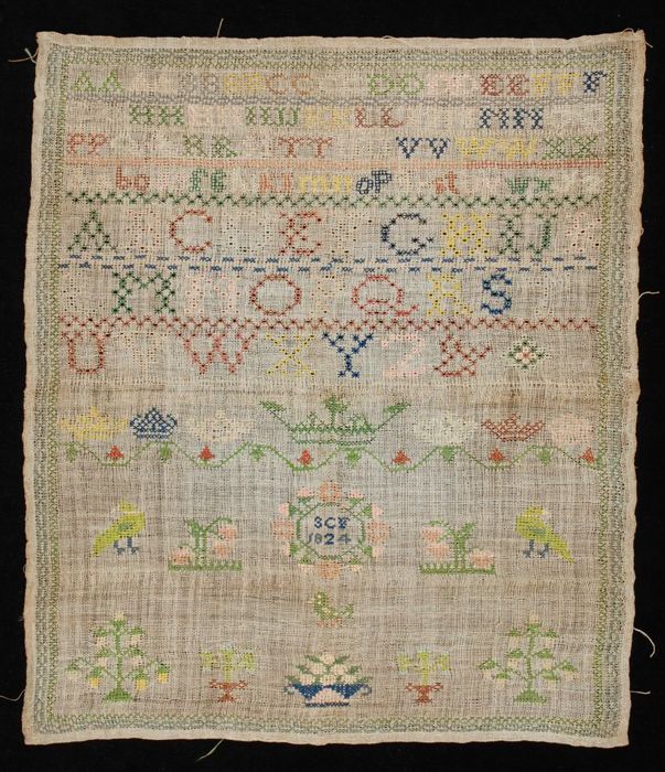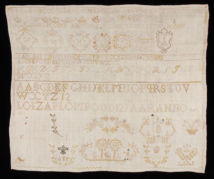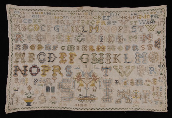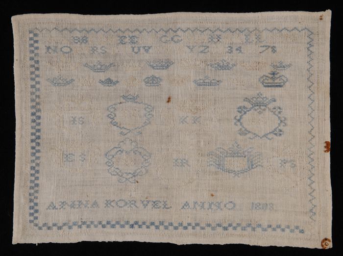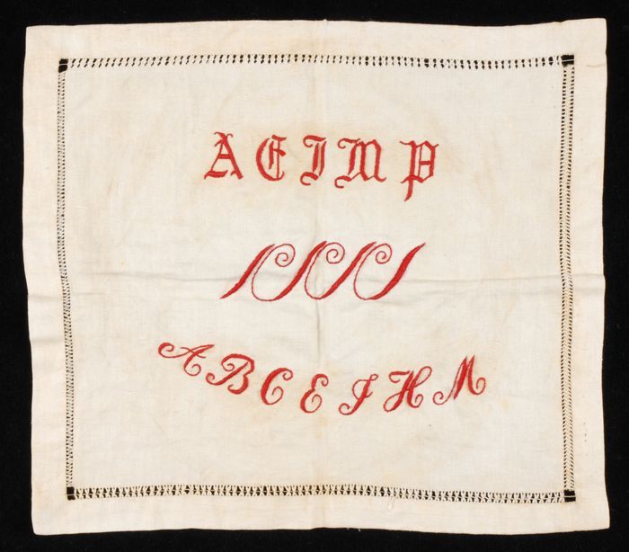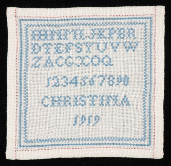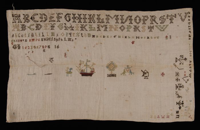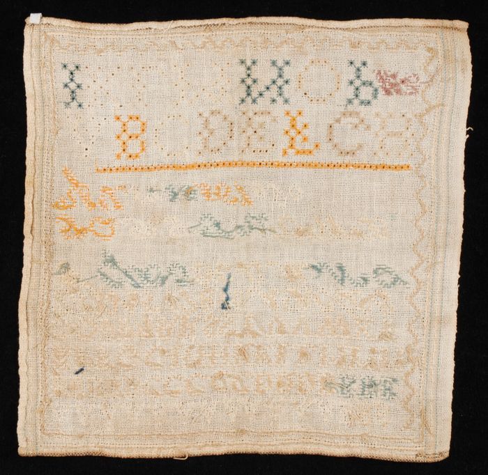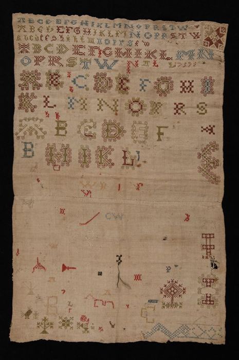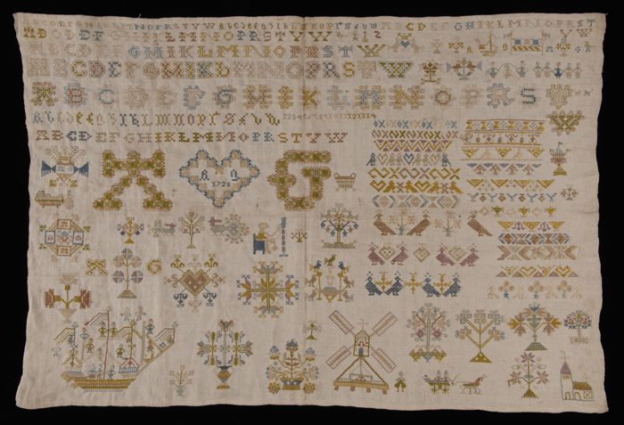Brede merklap of letterlap gewerkt in kruissteek in ...