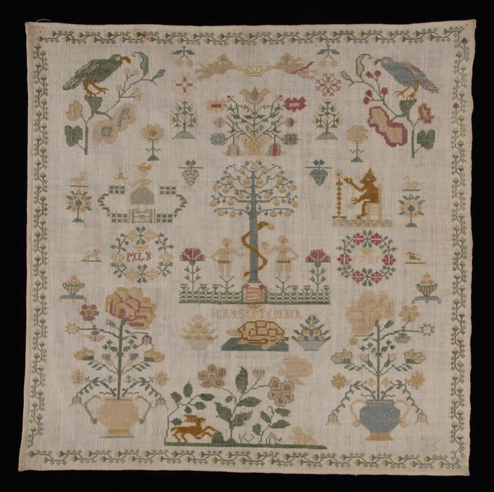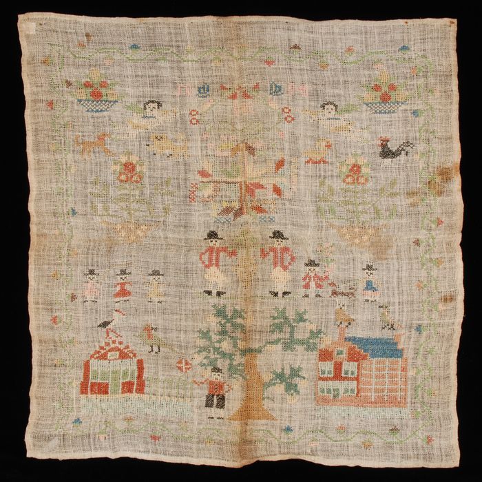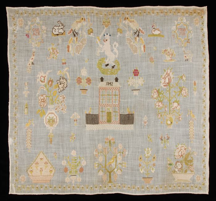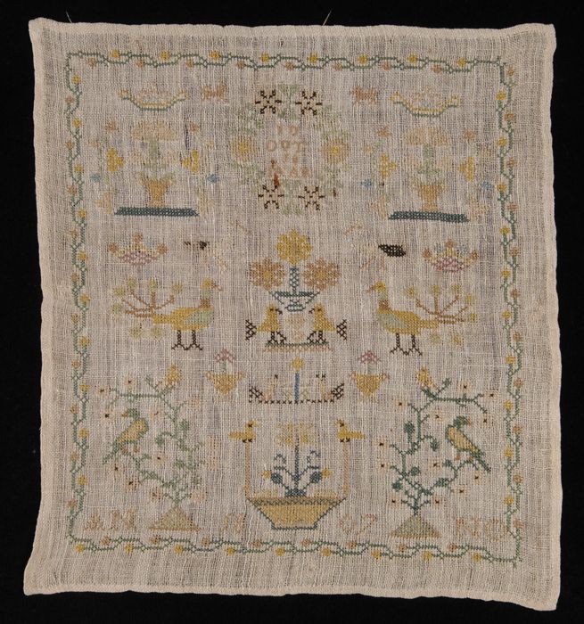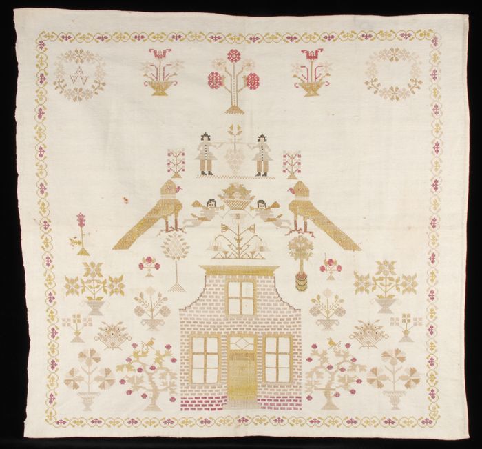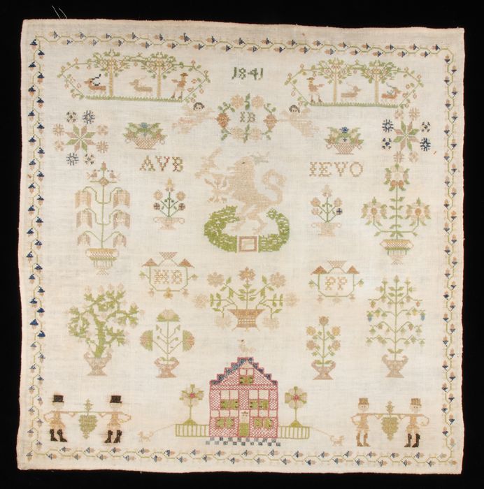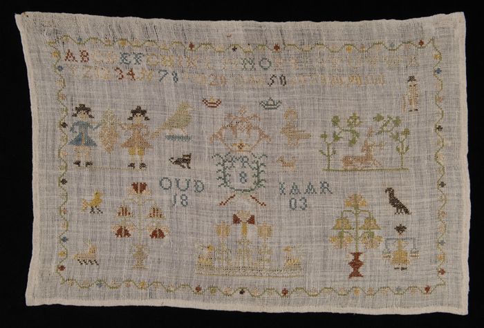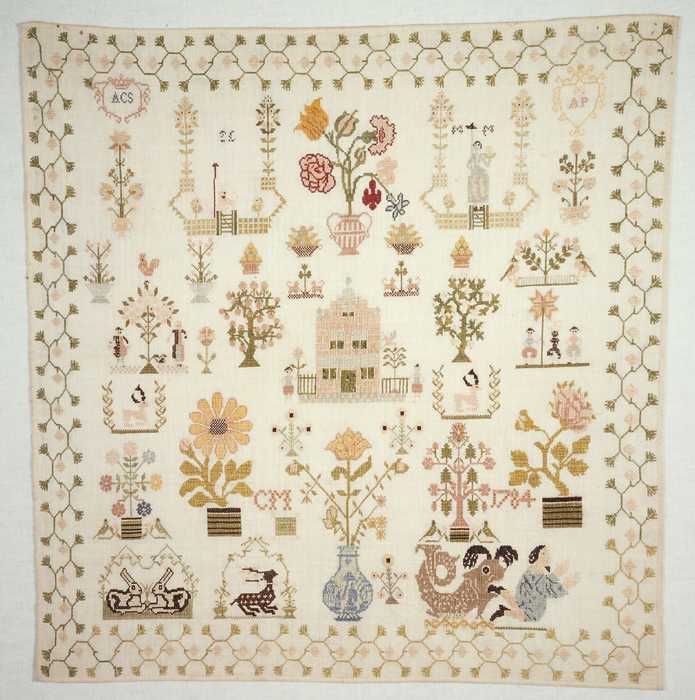 Merklap gewerkt in kruissteek en stersteek in gekleu...