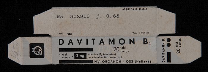 Lichtblauw doosje voor Davitamon B1