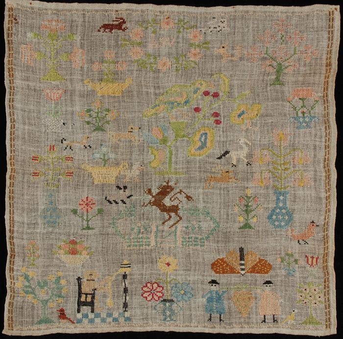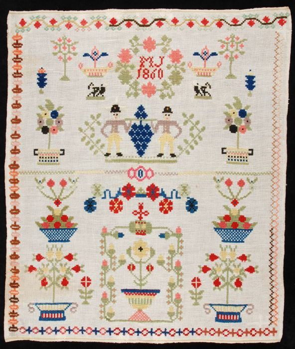 Merklap gewerkt in kruissteek in gekleurd zijde op c...