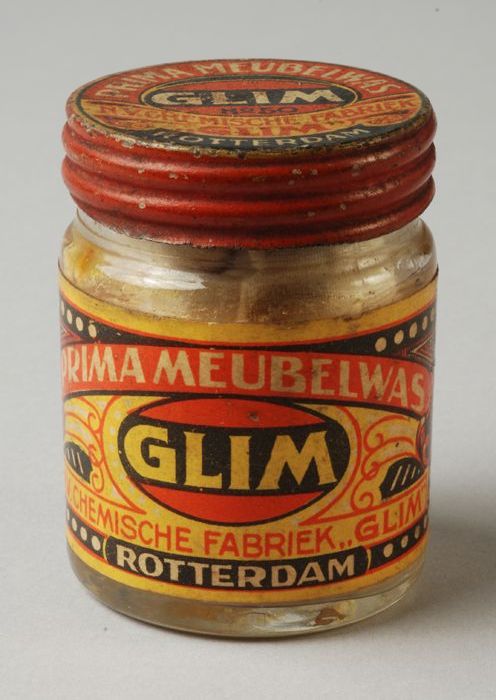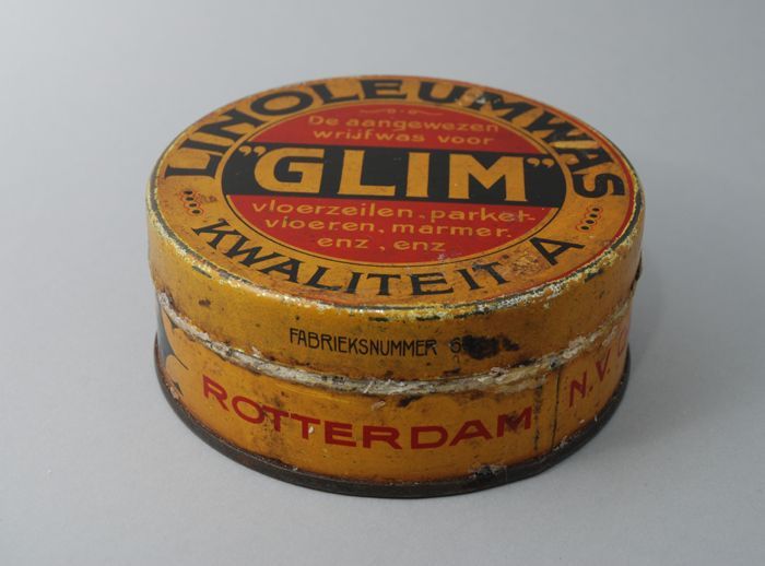 Uit de boedel van Marie en Nel: blik Glim linoleumwa...