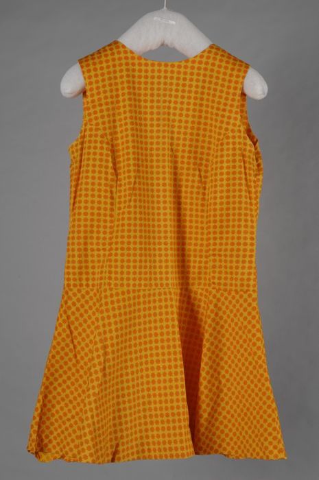 Mouwloze kinderjurk van geel katoen met oranje bloem...