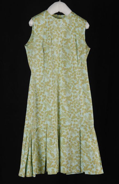 Mouwloze damesjurk, lichtblauw katoen met groen blad...