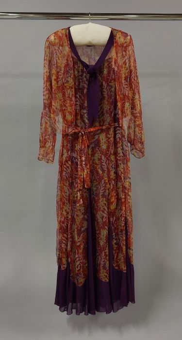 Wijde mouwloze japon van transparant gebloemd zijde ...